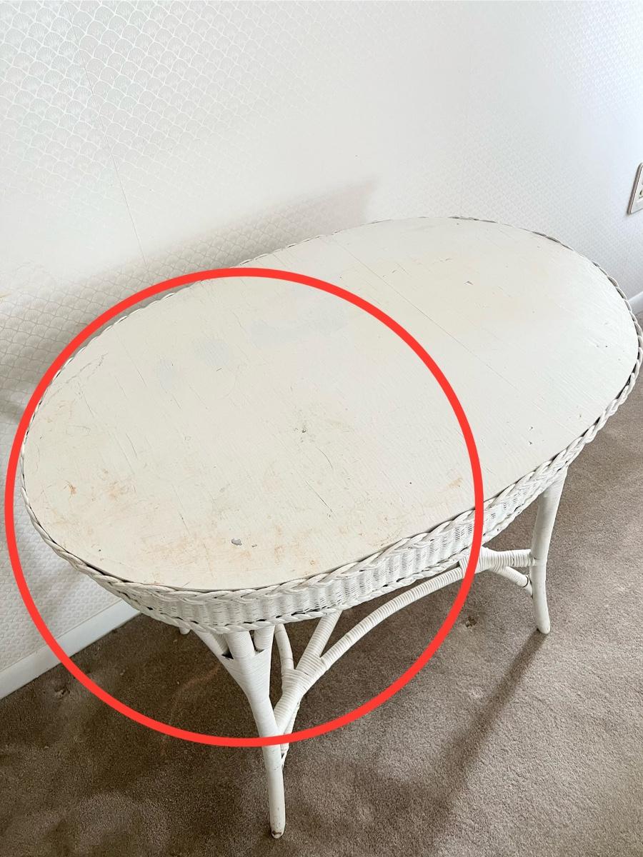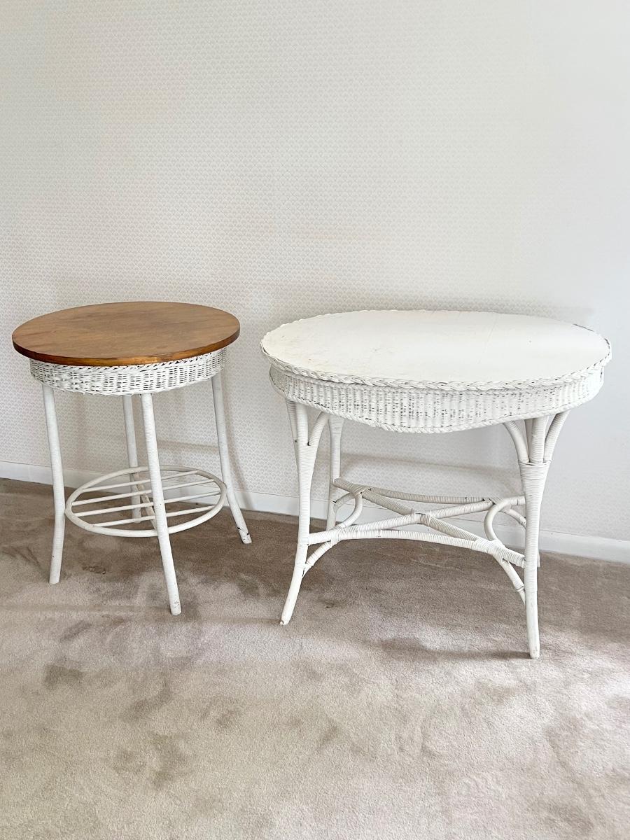 Oval table possibly needs to be repainted and top need slight tightening down, it is a sturdy table ~ Circle table = 29.5” H x 24” Round ~ Oval table = 29.5” H x 34.5” W x 24.5” D