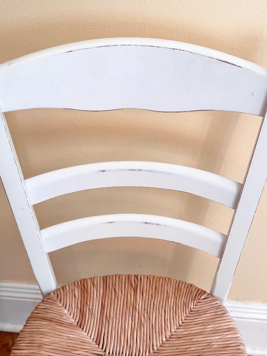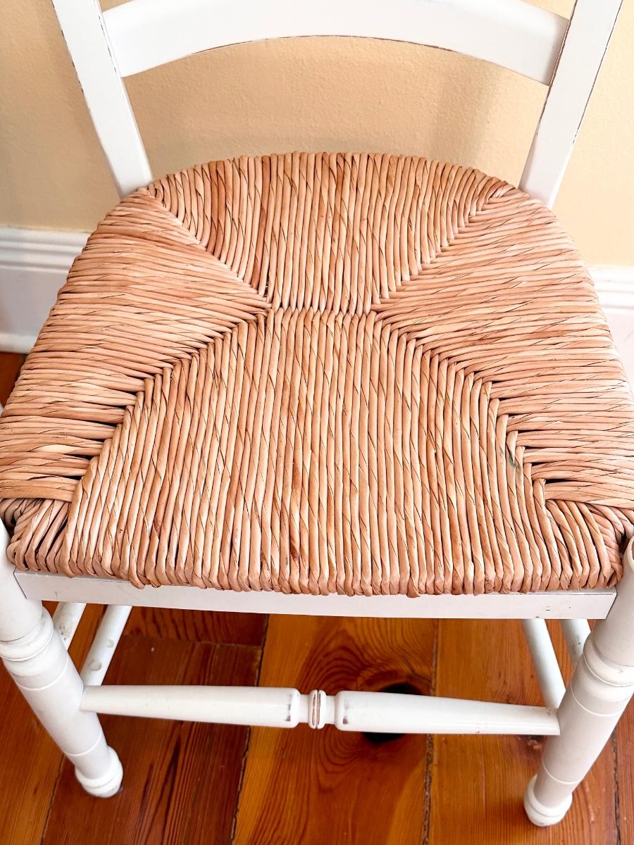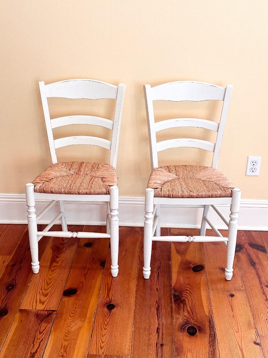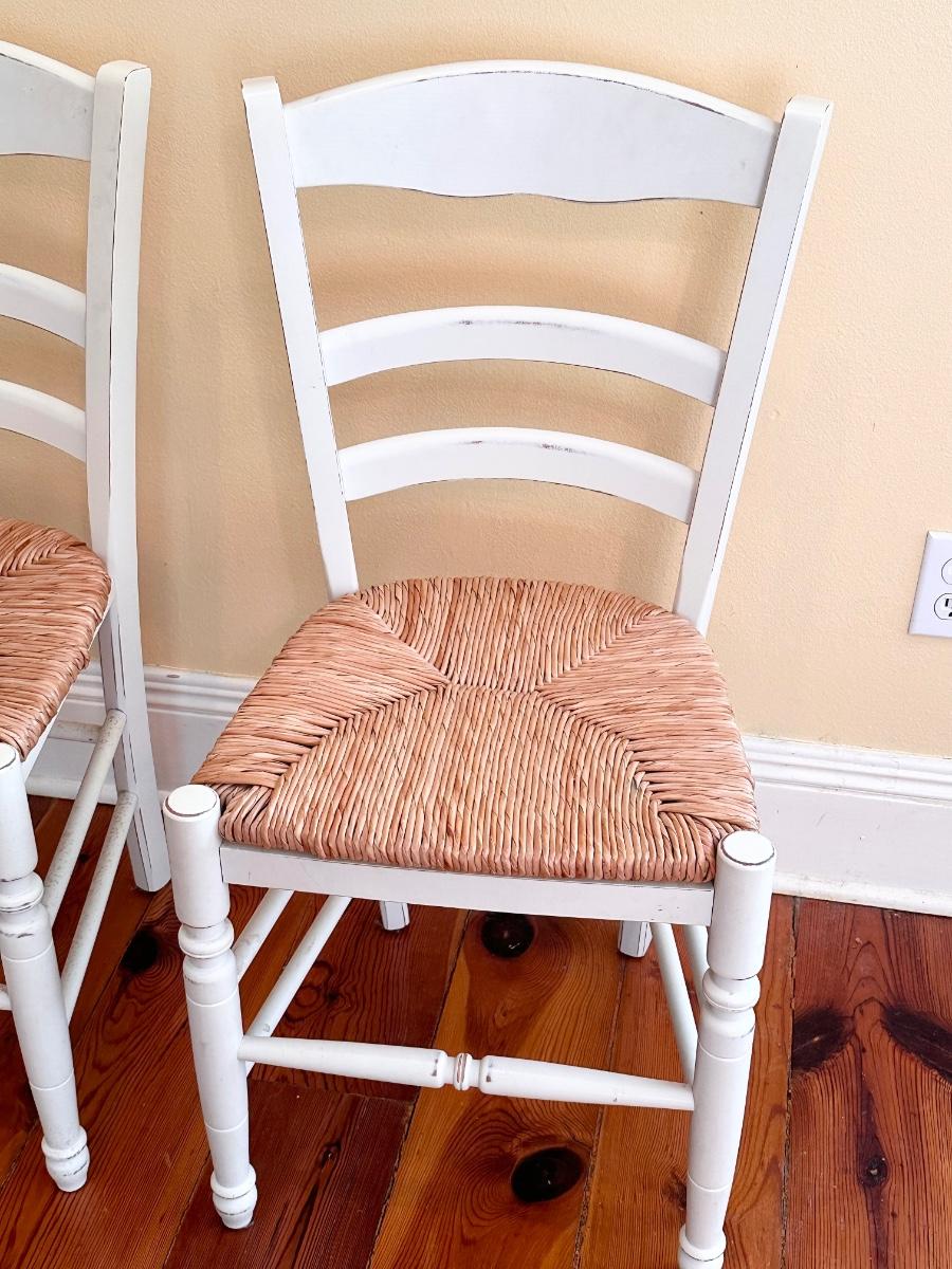 Pair (2) White Distressed Rush Seat Chairs ~ Made In Italy