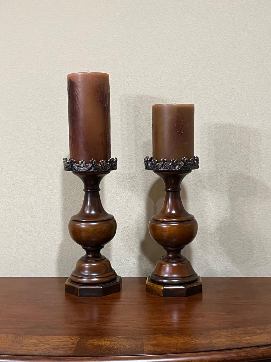 Pair (2) ~ Wood Octagon Shaped Candelabras