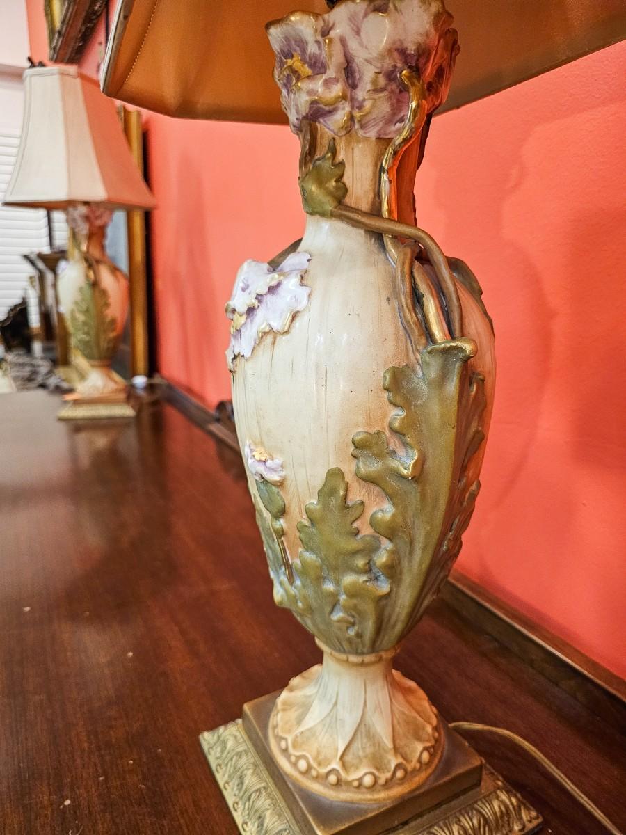 Pair of Amphora lamps, circa 1910, 7"W x 7"D x 23"H
