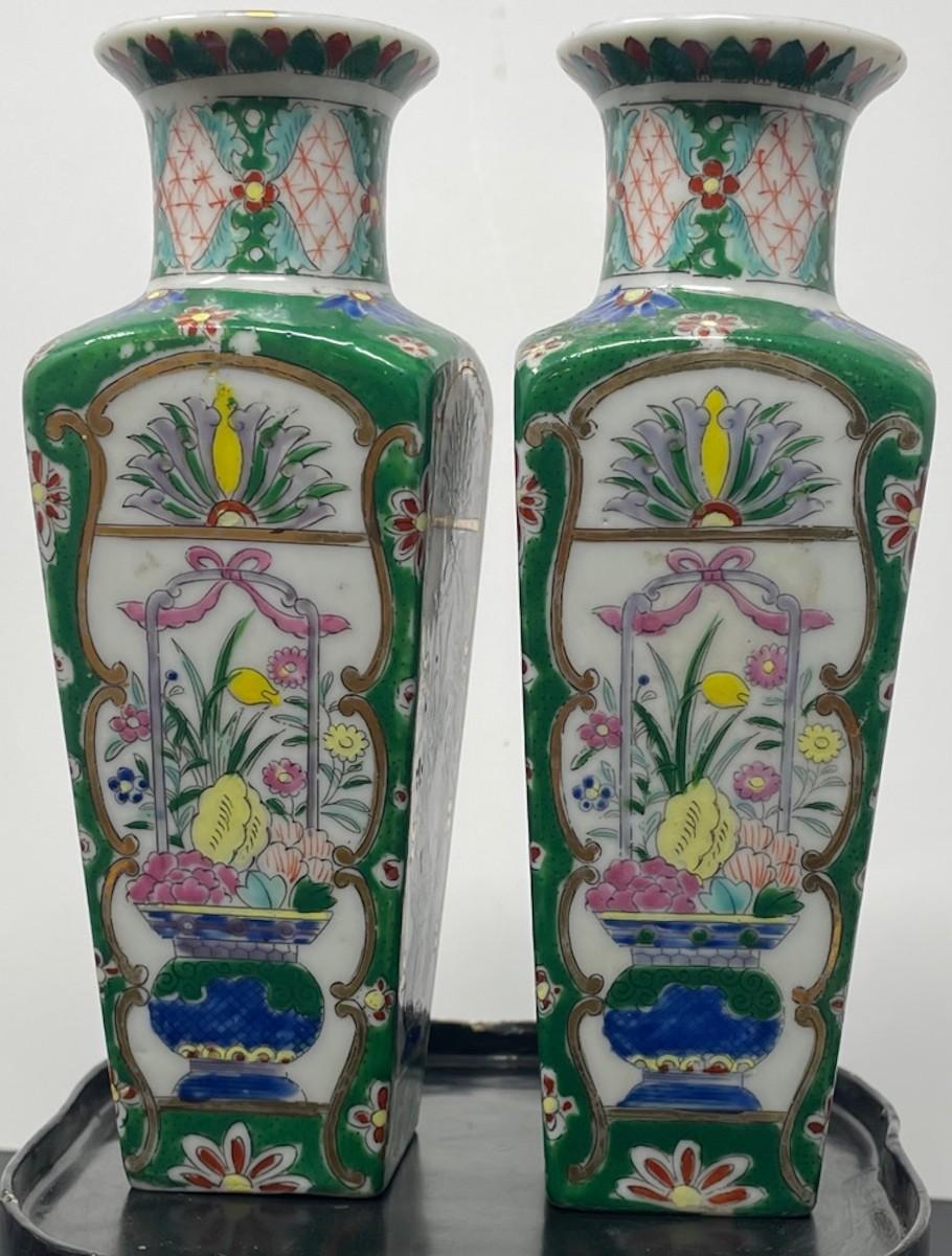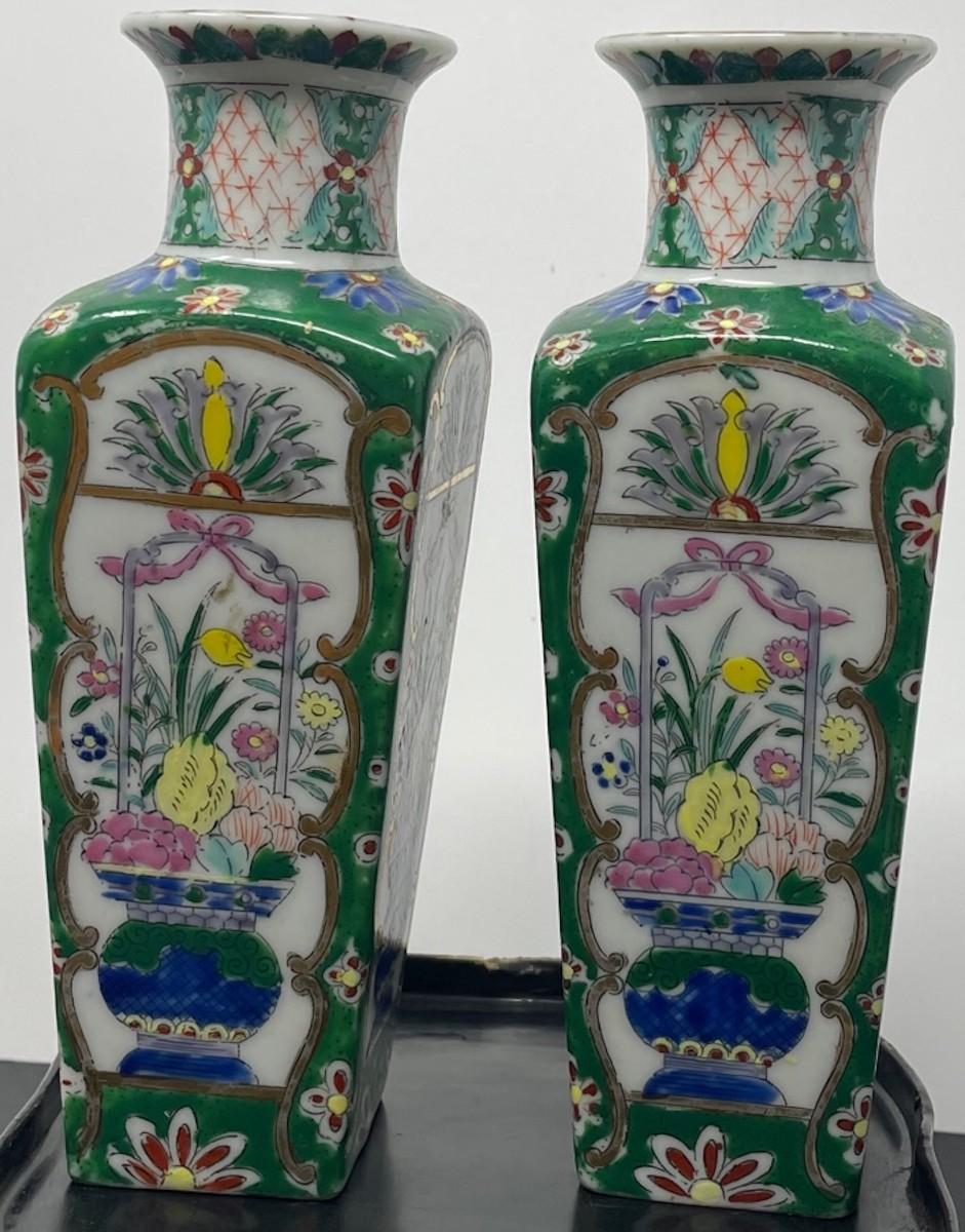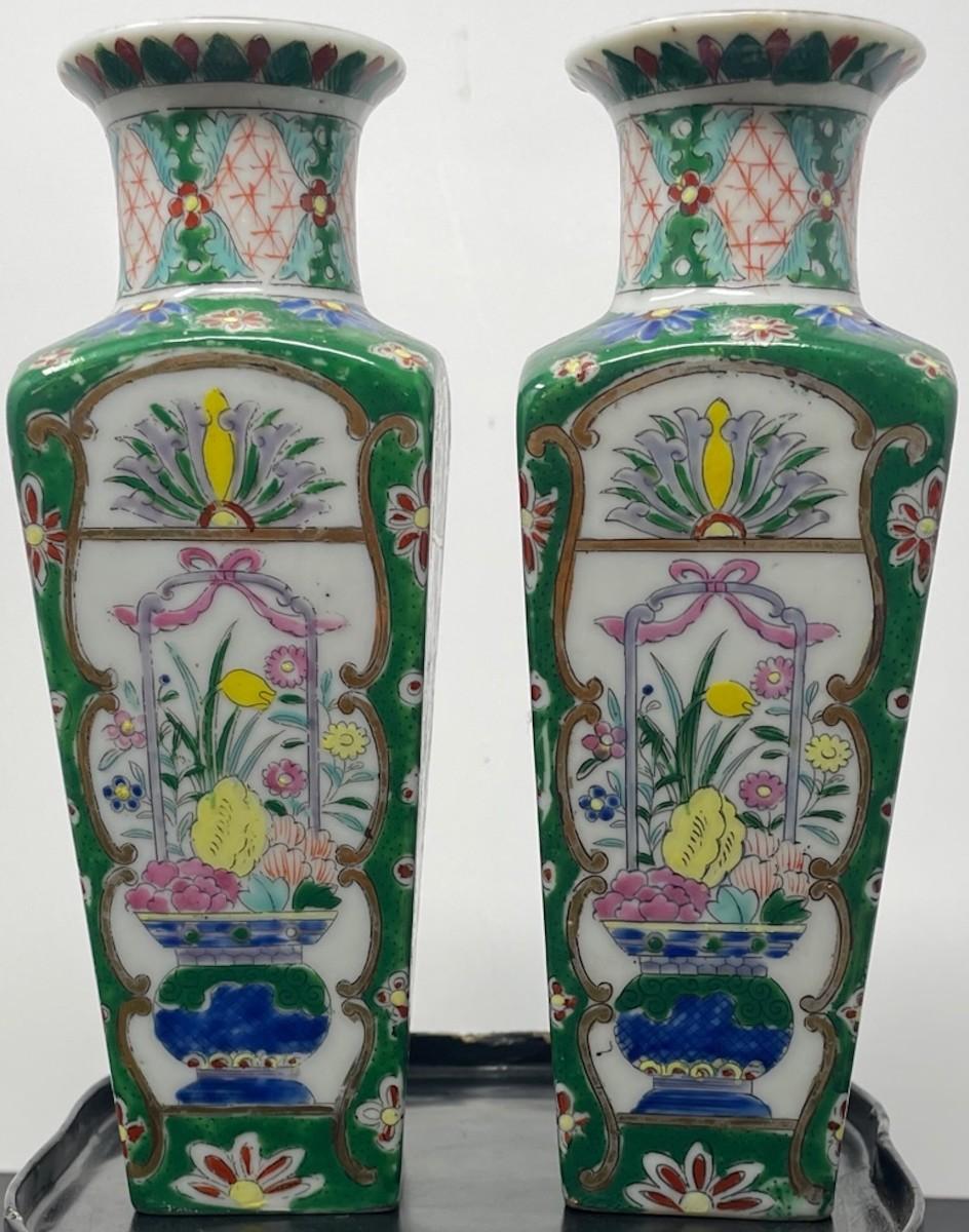 Description: Pair Antique Chinese Porcelain Vases; Measurement approximate: 7.2"h; Material: Porcelain