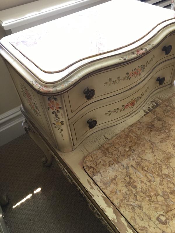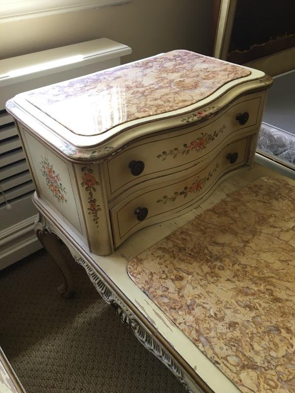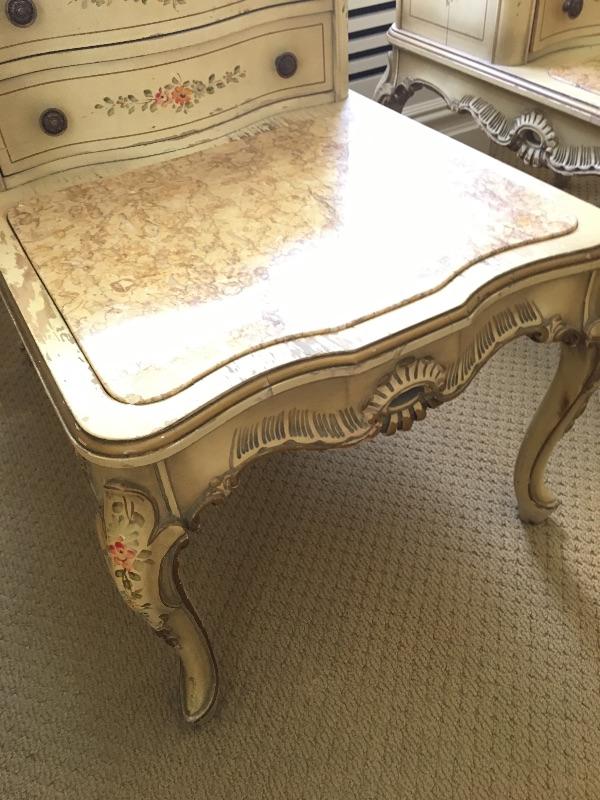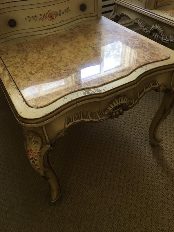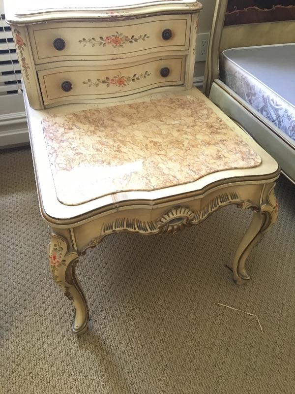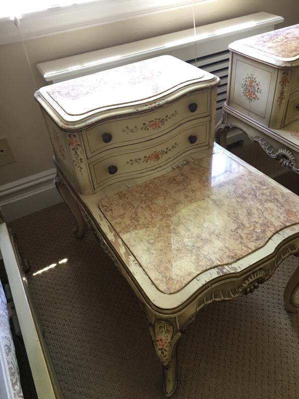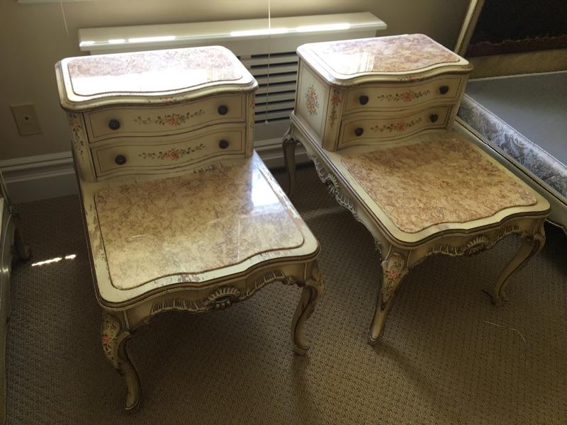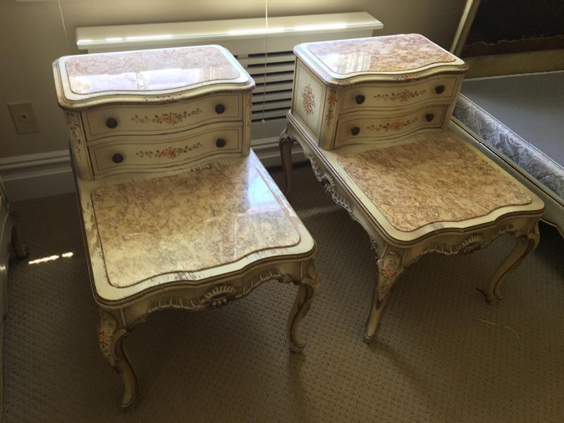 Pair Antique French Provincial Style Nightstands Marble Tops