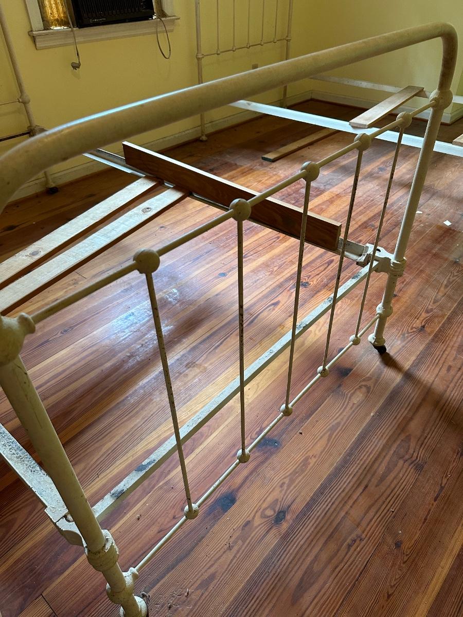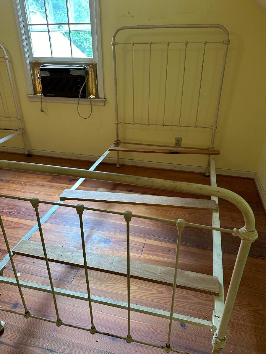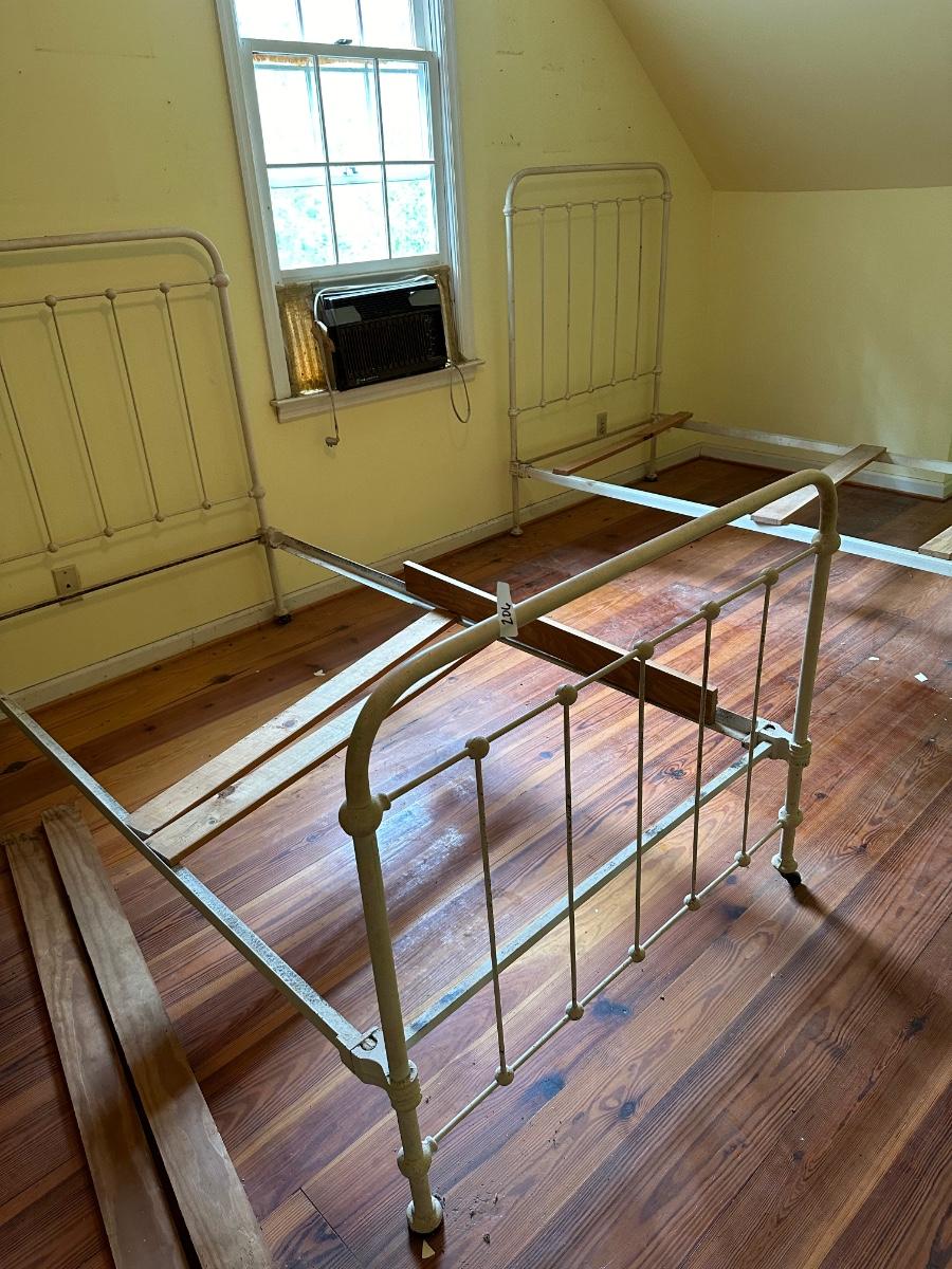 PAIR ANTIQUE TWIN SIZE IRON BEDS AS PICTURED