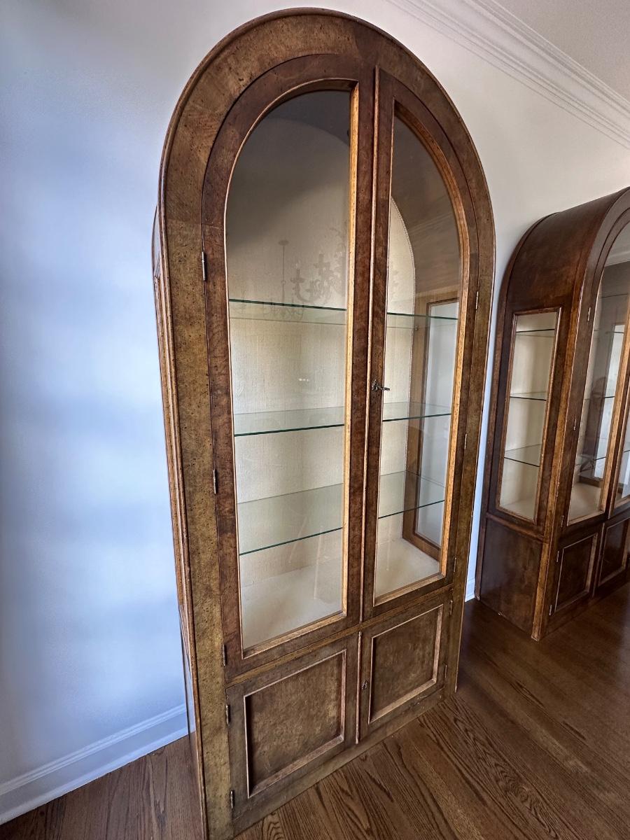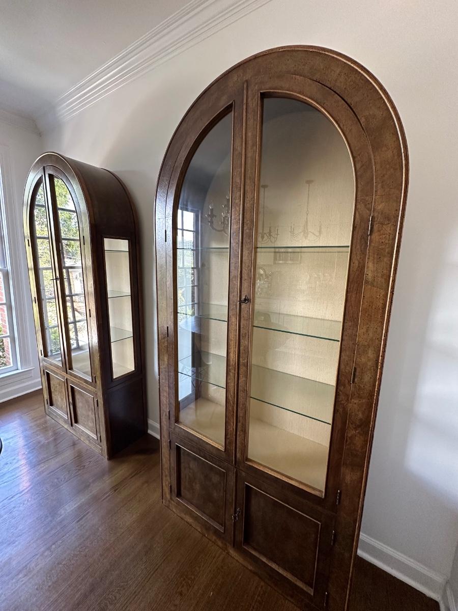 PAIR ARCHED TOP CURIO CABINETS