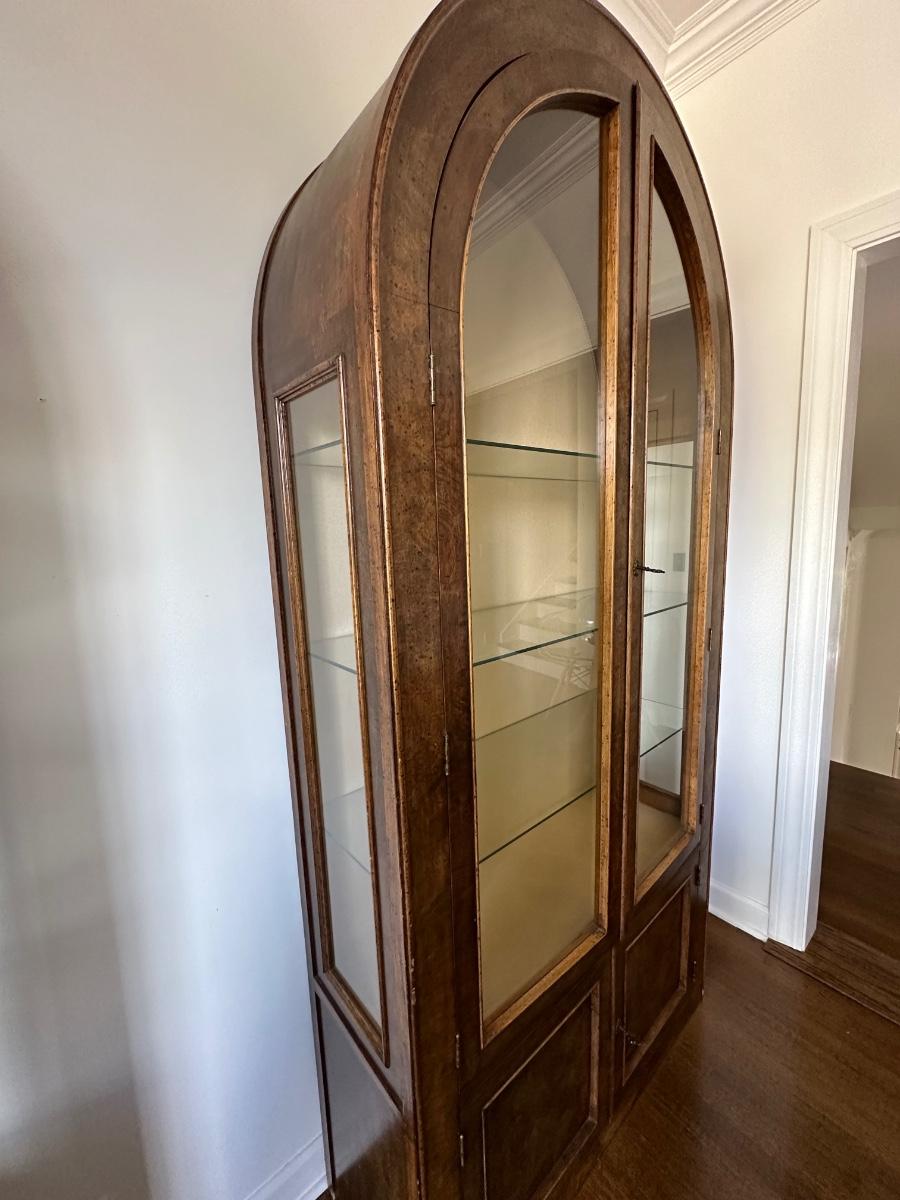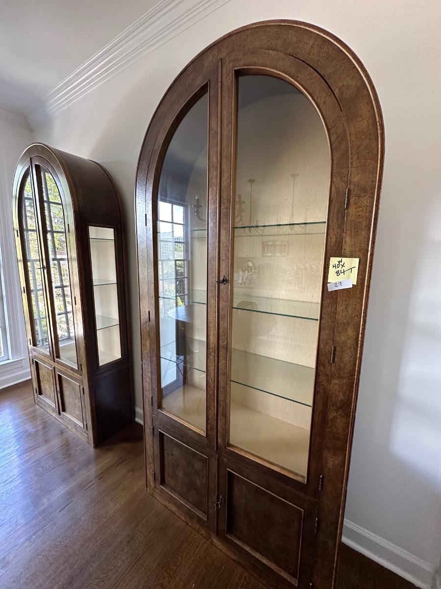 PR ARCHED TOP CURIO CABINETS, 40W X 84T GLASS SHELVES IN GOOD CONDITION