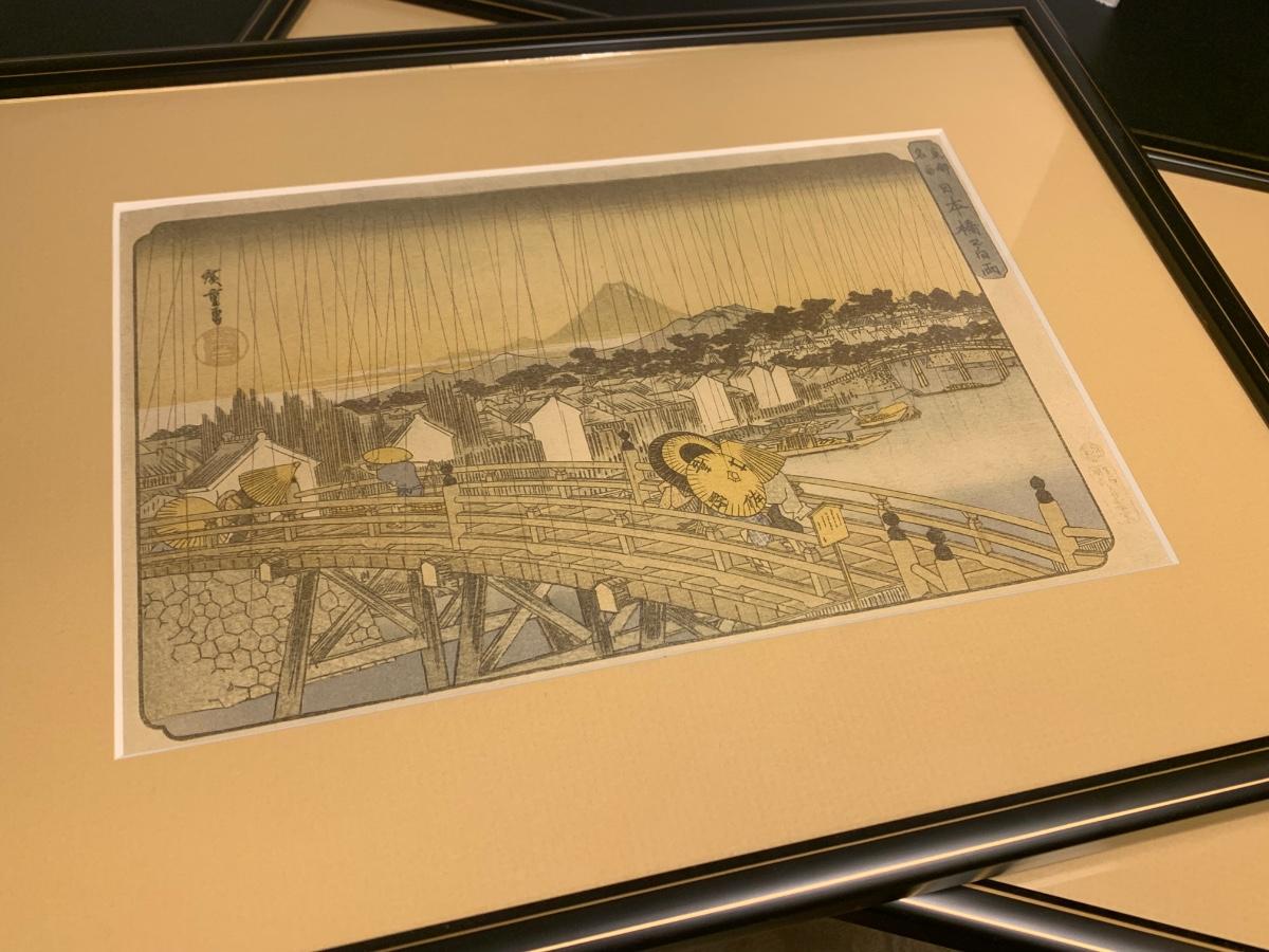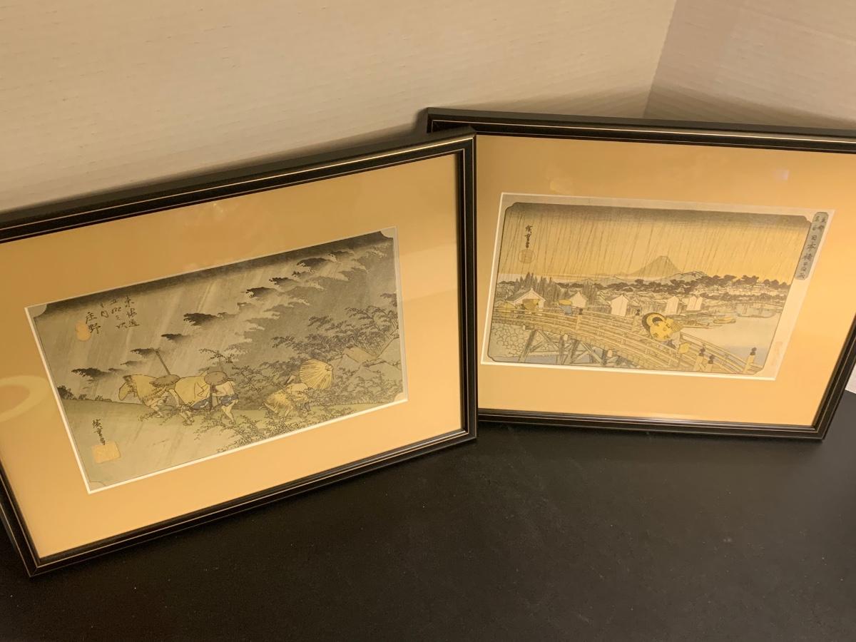 PAIR Signed Asian Framed Sketches / Woodblocks