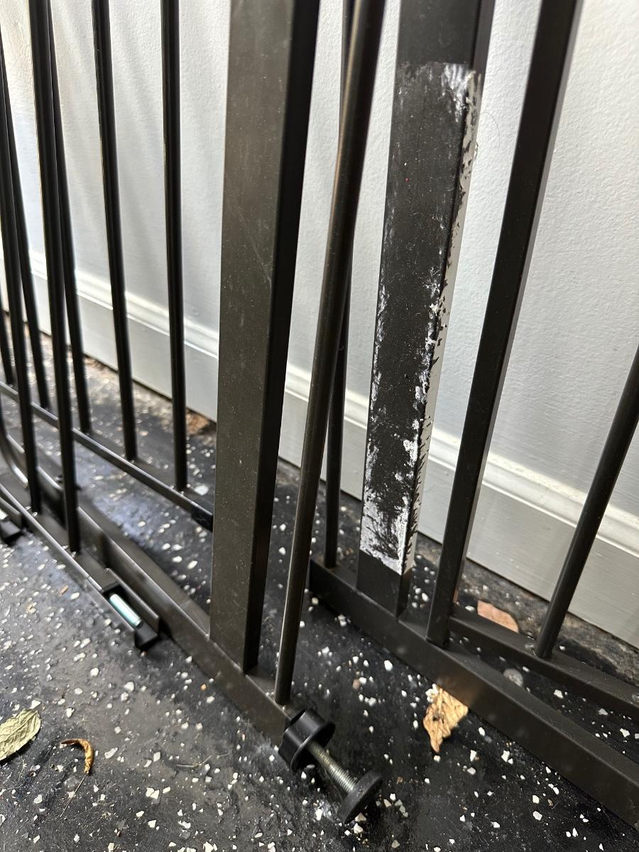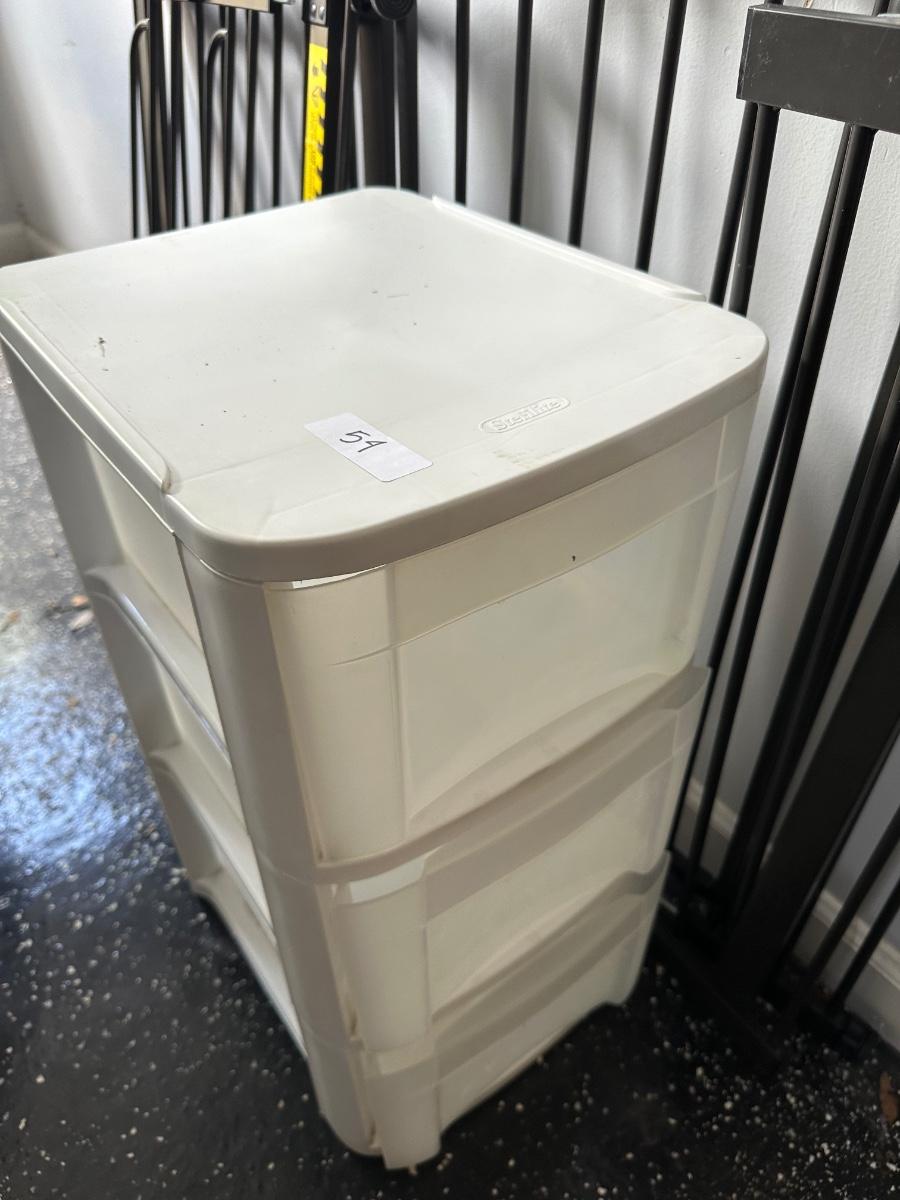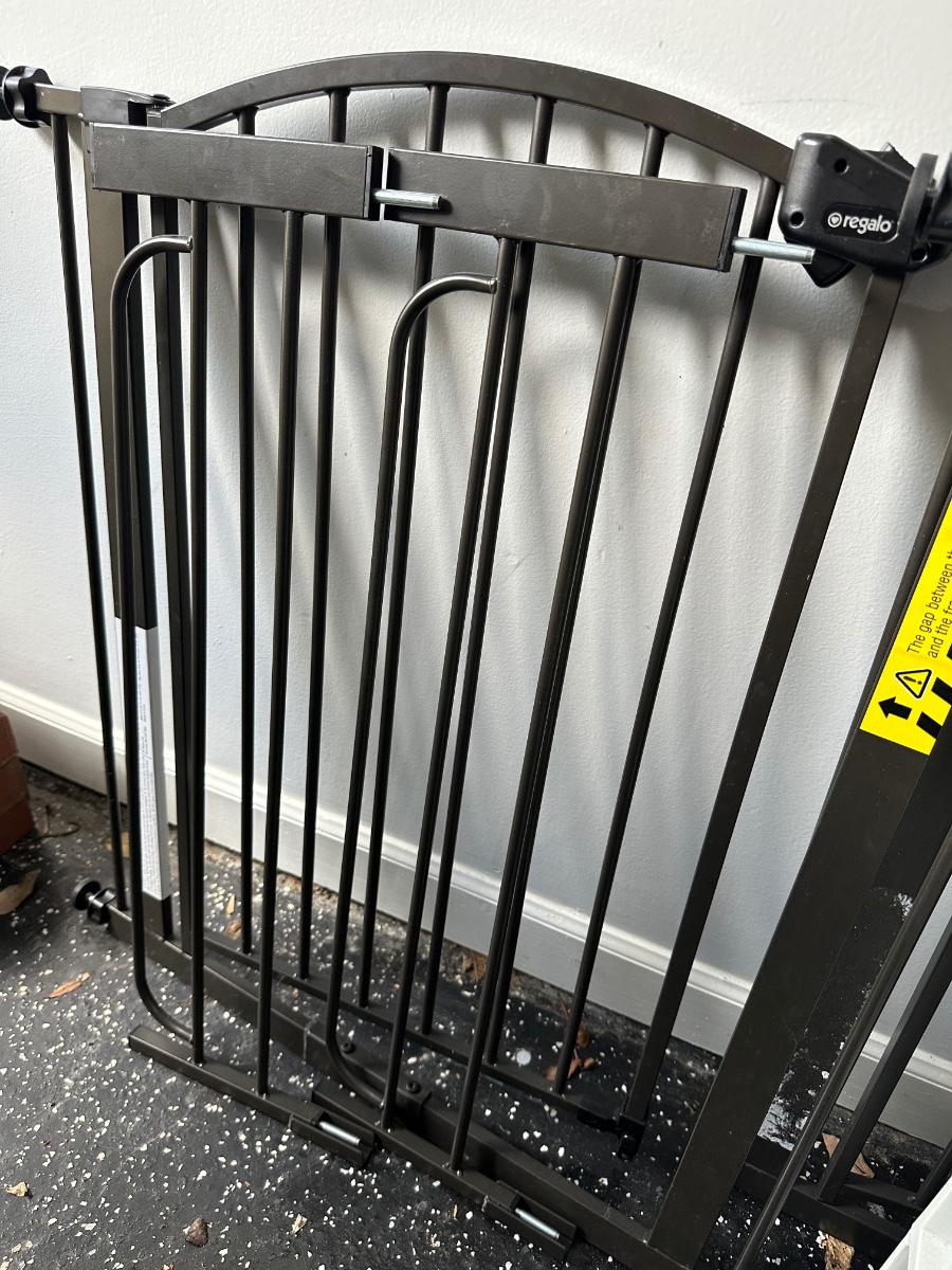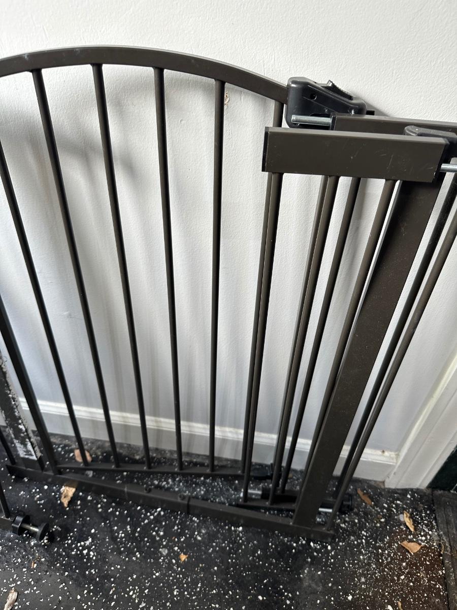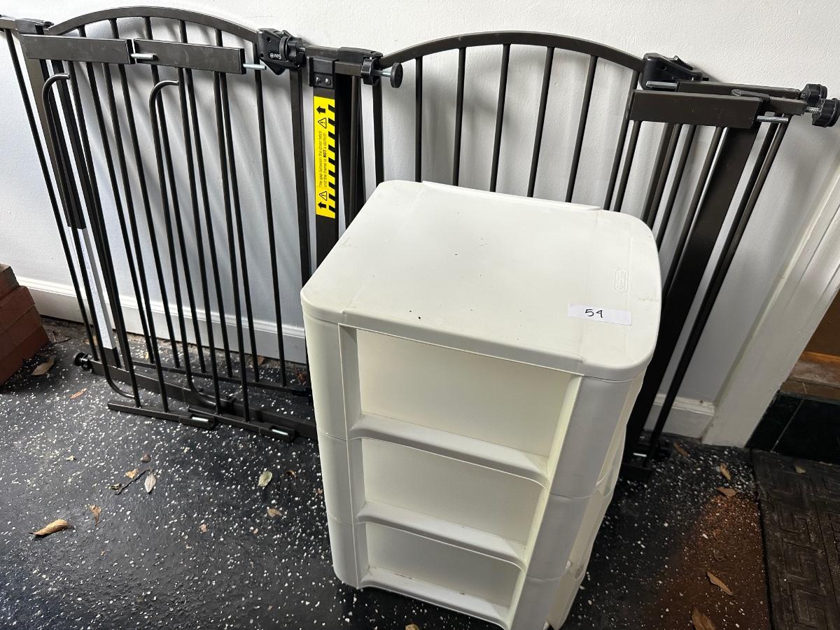 PAIR ACHED TOP BABY GATES( MISSING ONE SCREW IN ADJUSTER) 3 DRAWER ORGANIZER