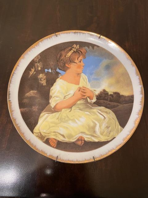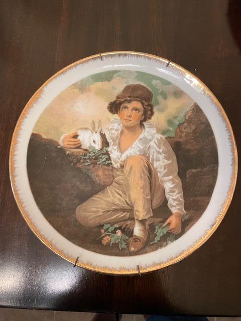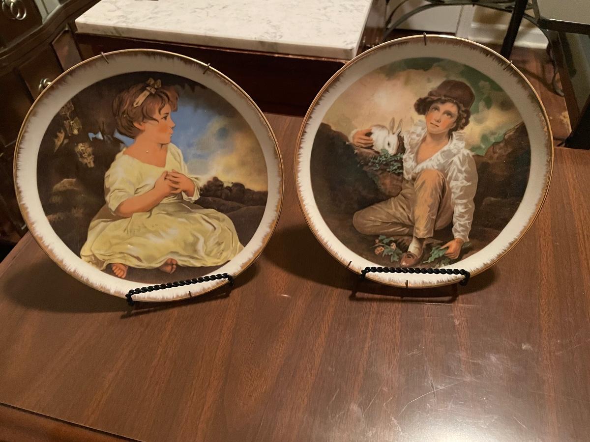 Pair Bavarian collectible plates -- boy w/bunny, girl