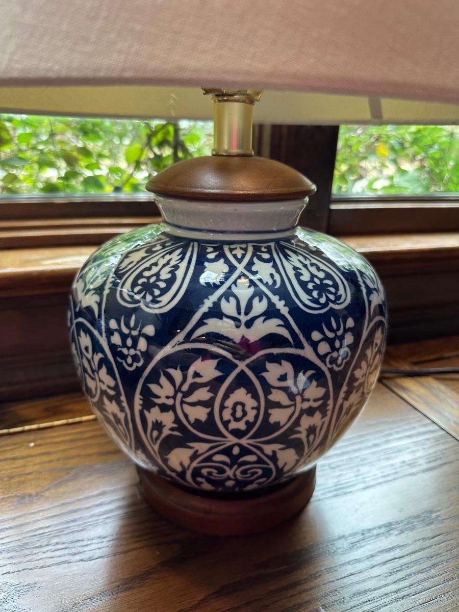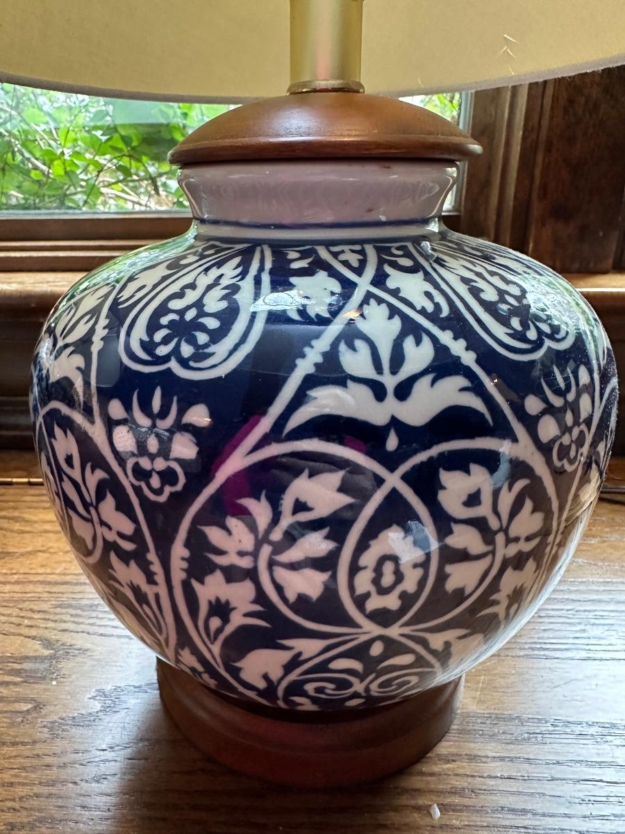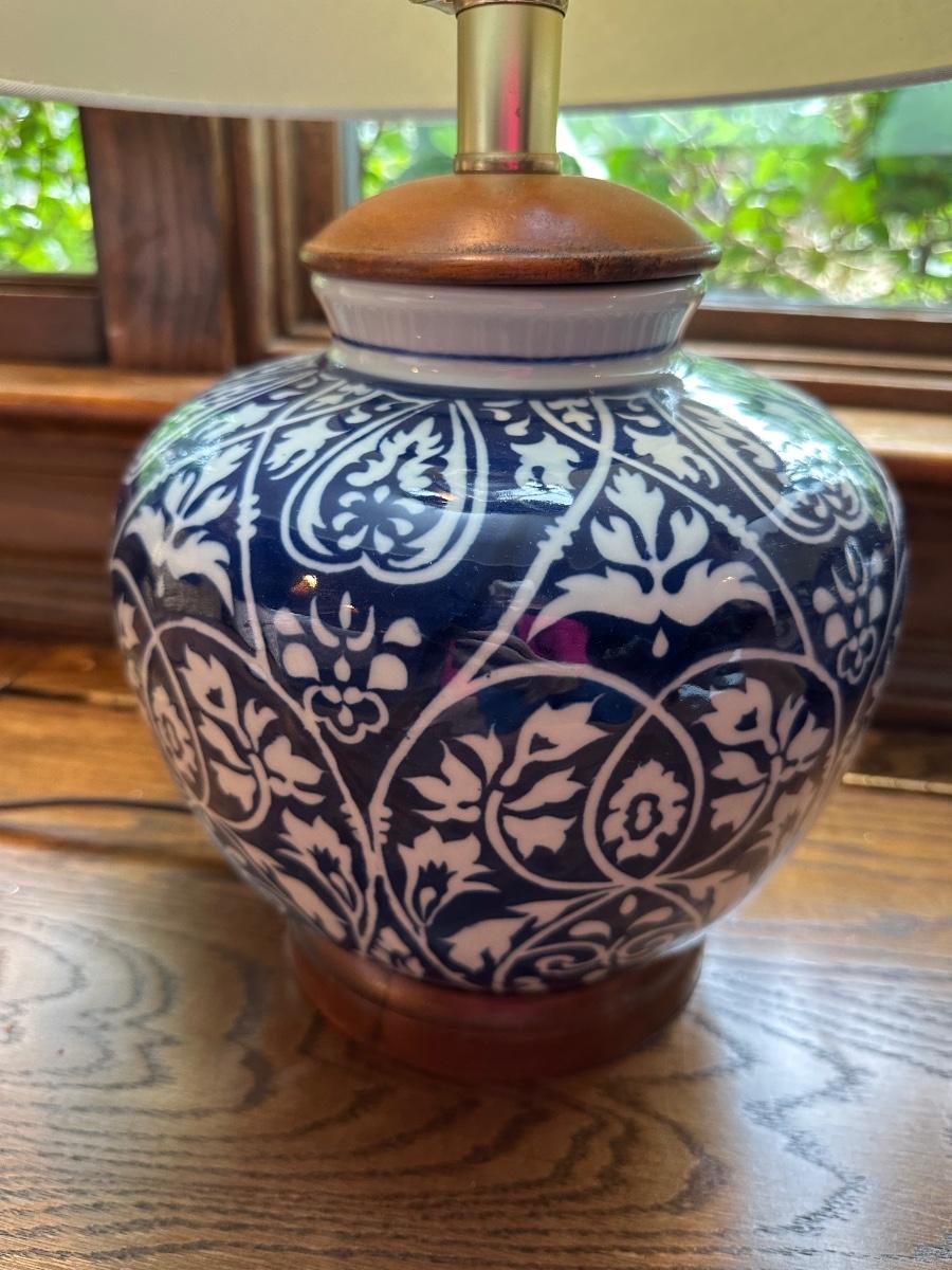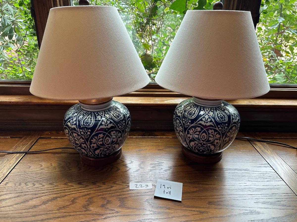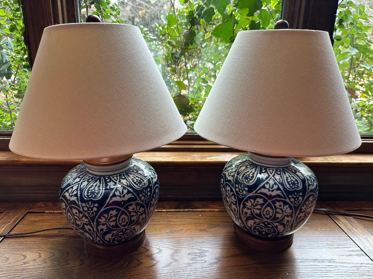 PAIR BLUE WHITE GINGER JAR LAMPS 19" TALL