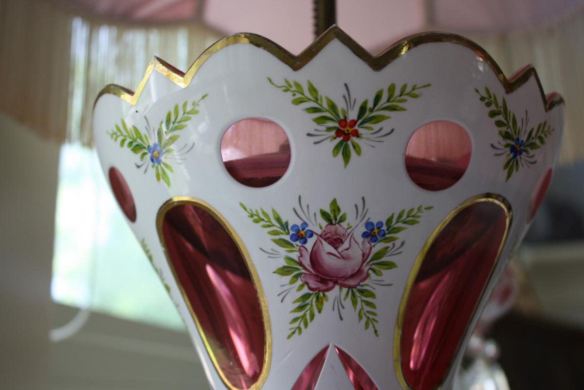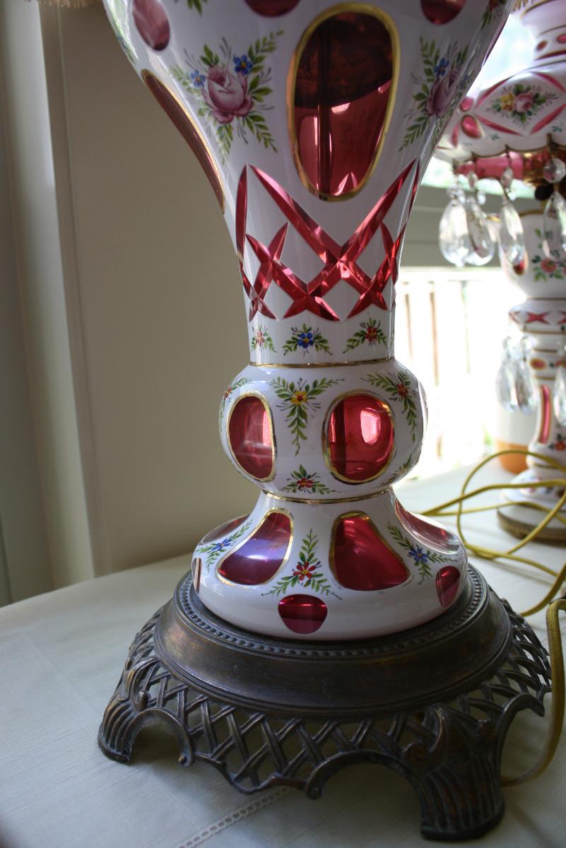PAIR 30 INCH LAMPS, BRASS BASE, BEAUTIFUL GLASS, LOCAL CORVALLIS/ALBANY PICKUP ONLY