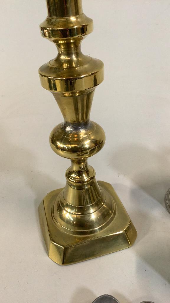 Pair Brass Candlesticks, 8 Pieces Pewter