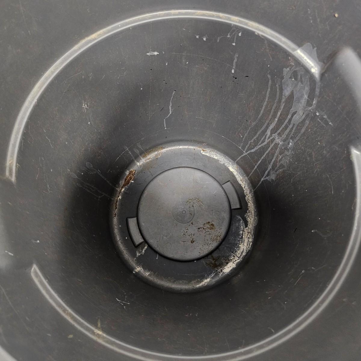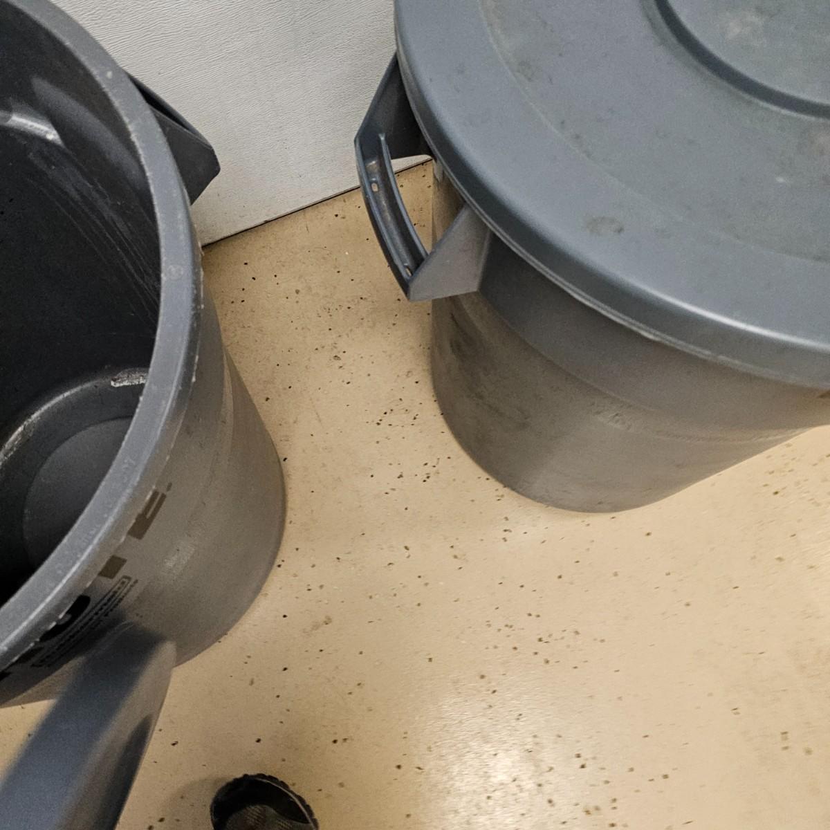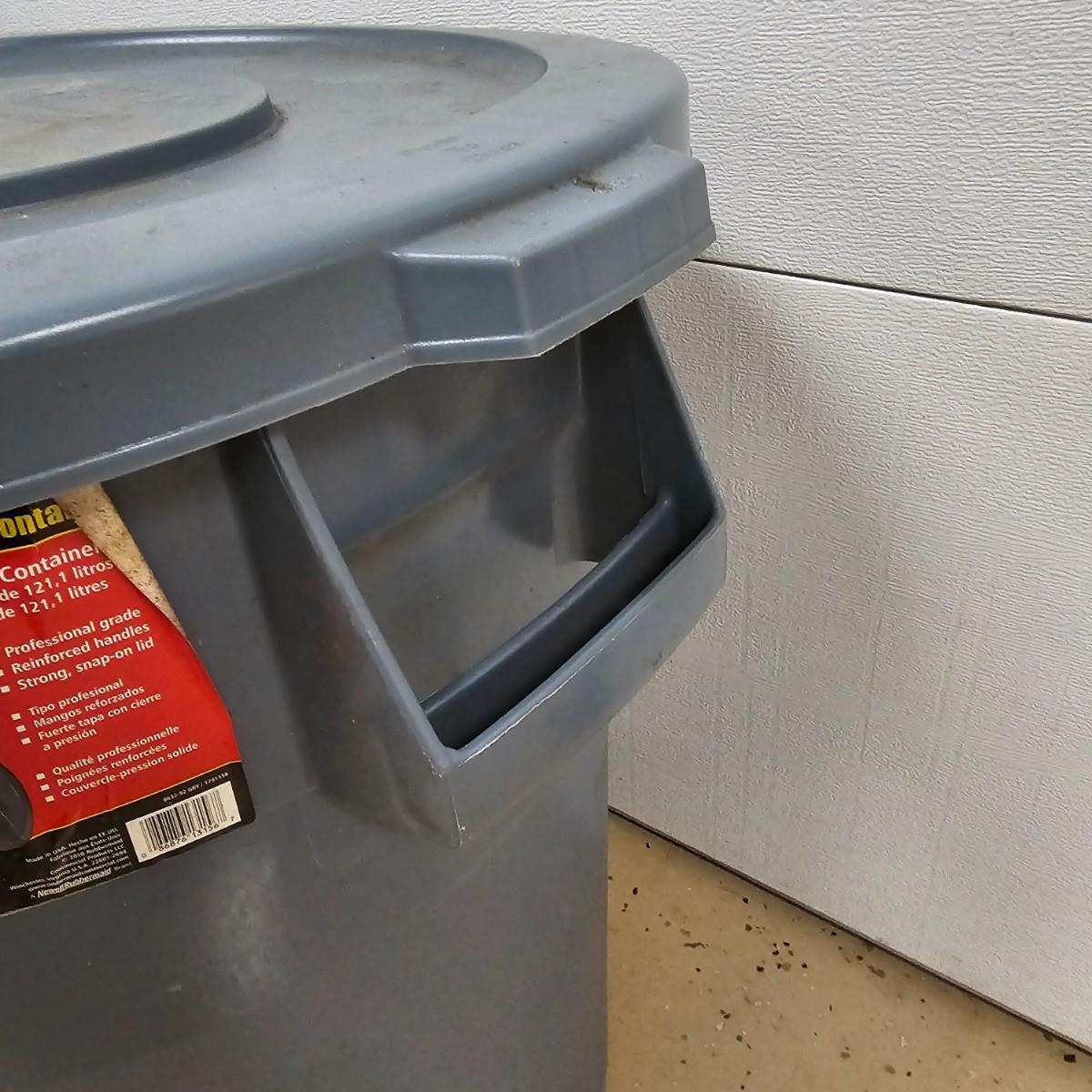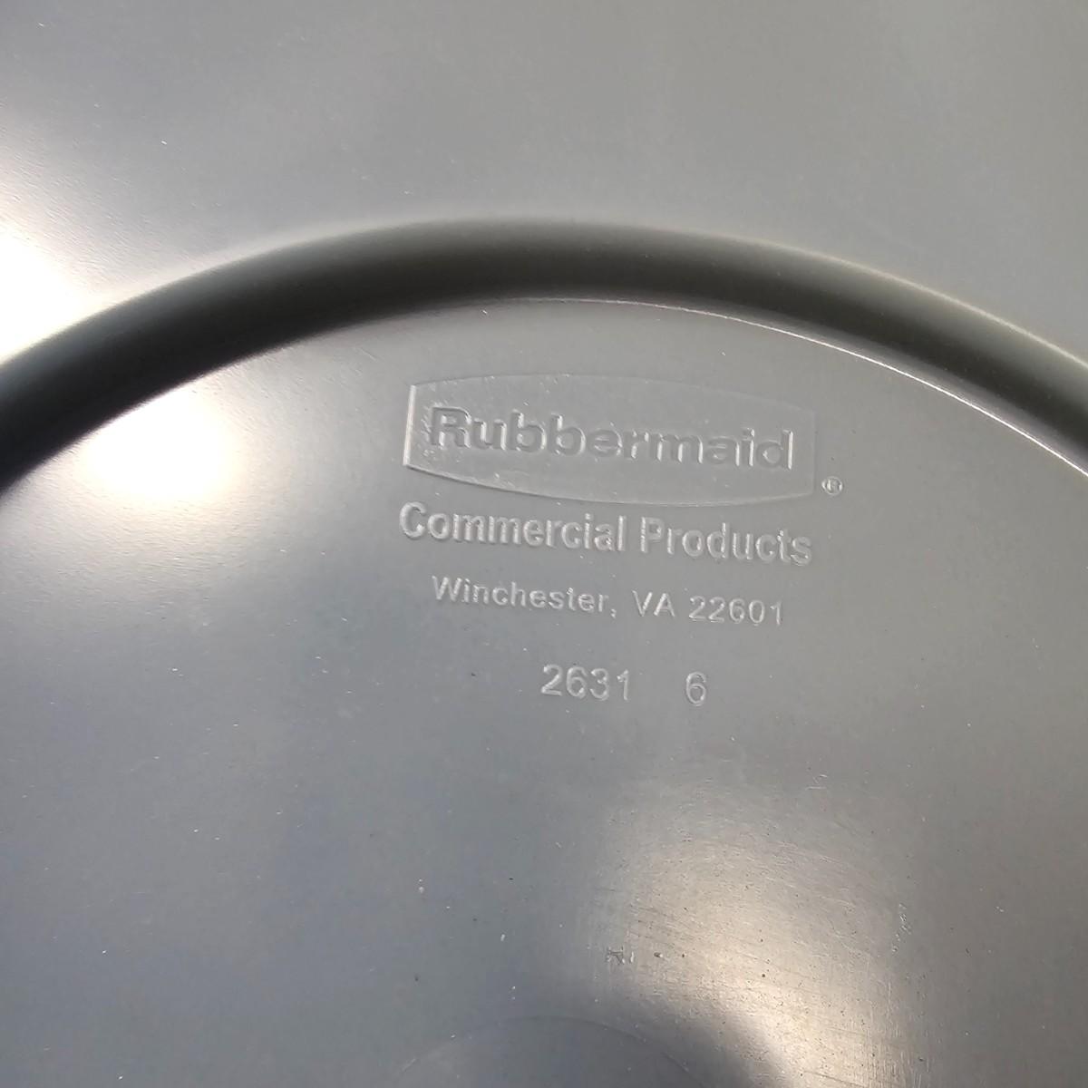 Two dark grey Brute by Rubbermaid trash cans and lids. Cans are used but in good condition. Measure 24" D x 27"H. See photos for details. Local pickup only.