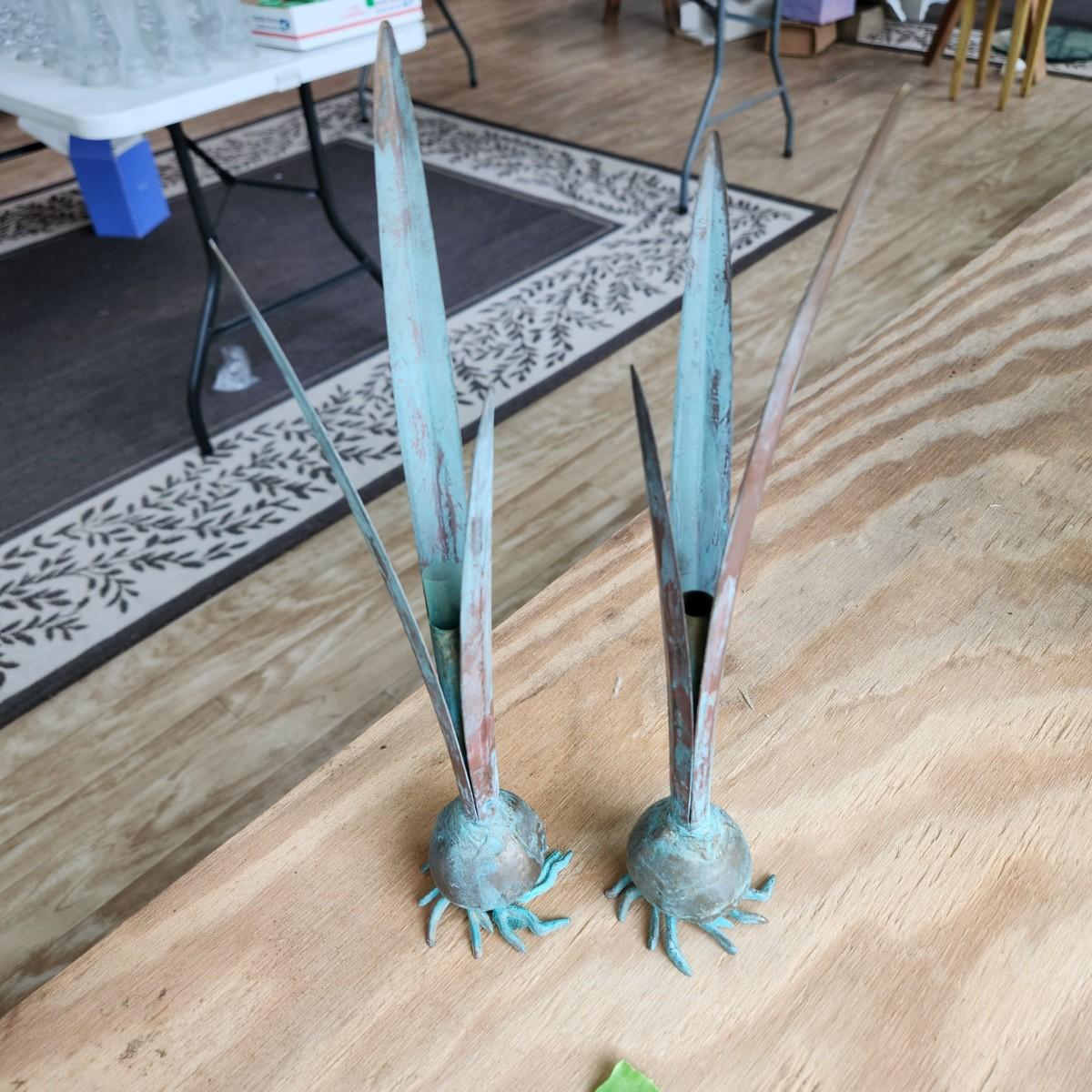 Pair Carnevale Copper Metal Onion Bulbs Bud Case