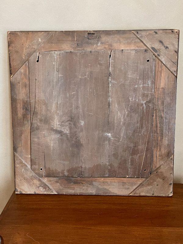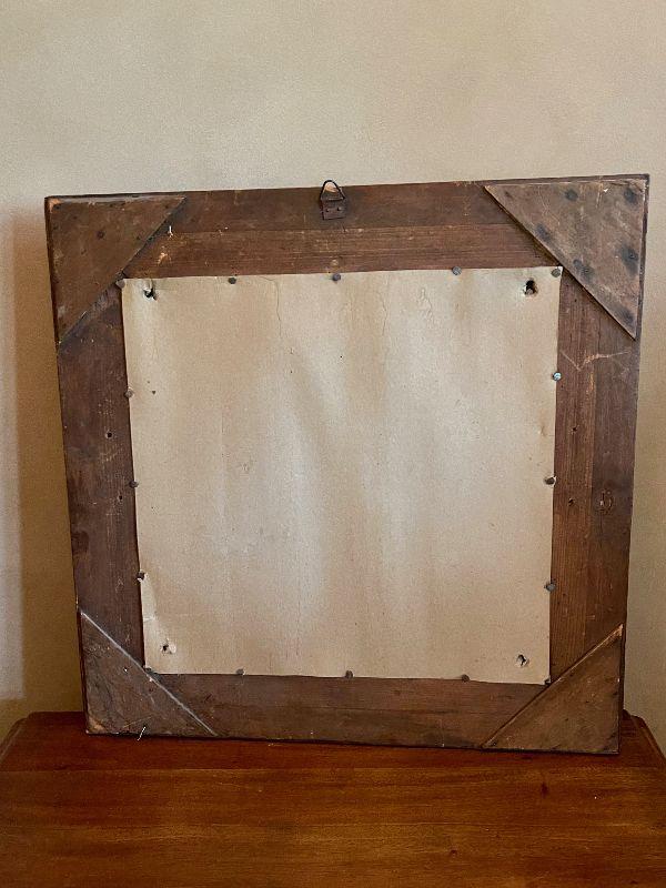 These antique panels were early framed. One piece of the frame moulding is missing part of a side (see pic) but does not detract from the charm.