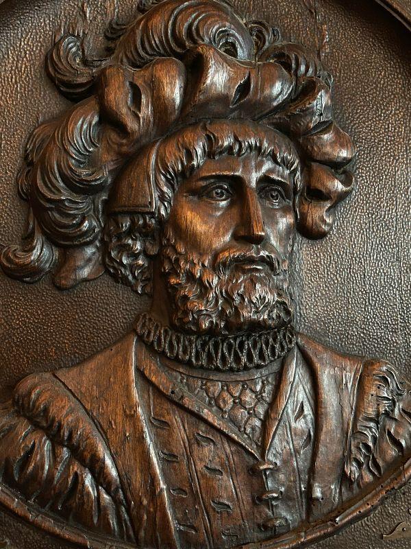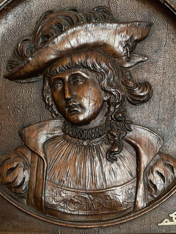 Pair - Charming Carved Deep Relief Portrait Plaques