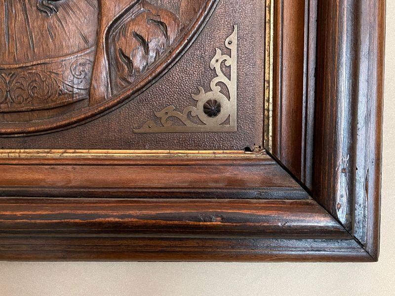 These 19th C Portraits are lovely. Deeply carved Black Forest-like man and woman facing each other.