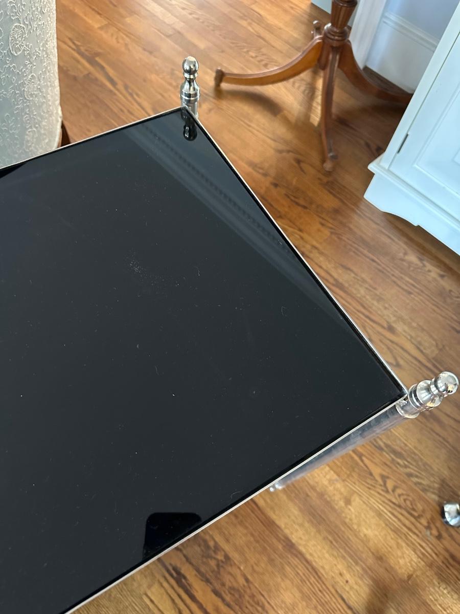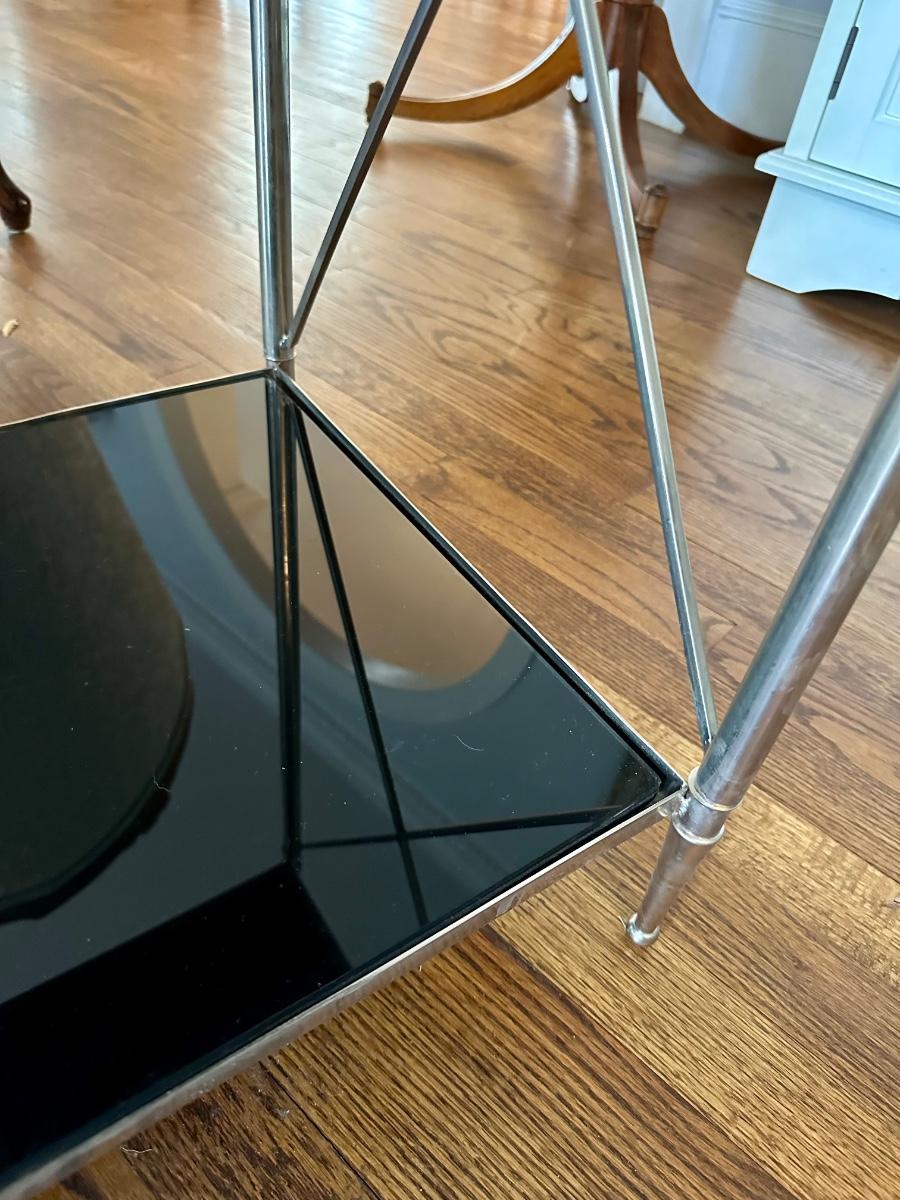 PAIR CHROME 2 TIER CONSOLE TABLES