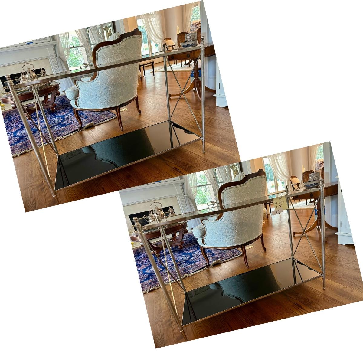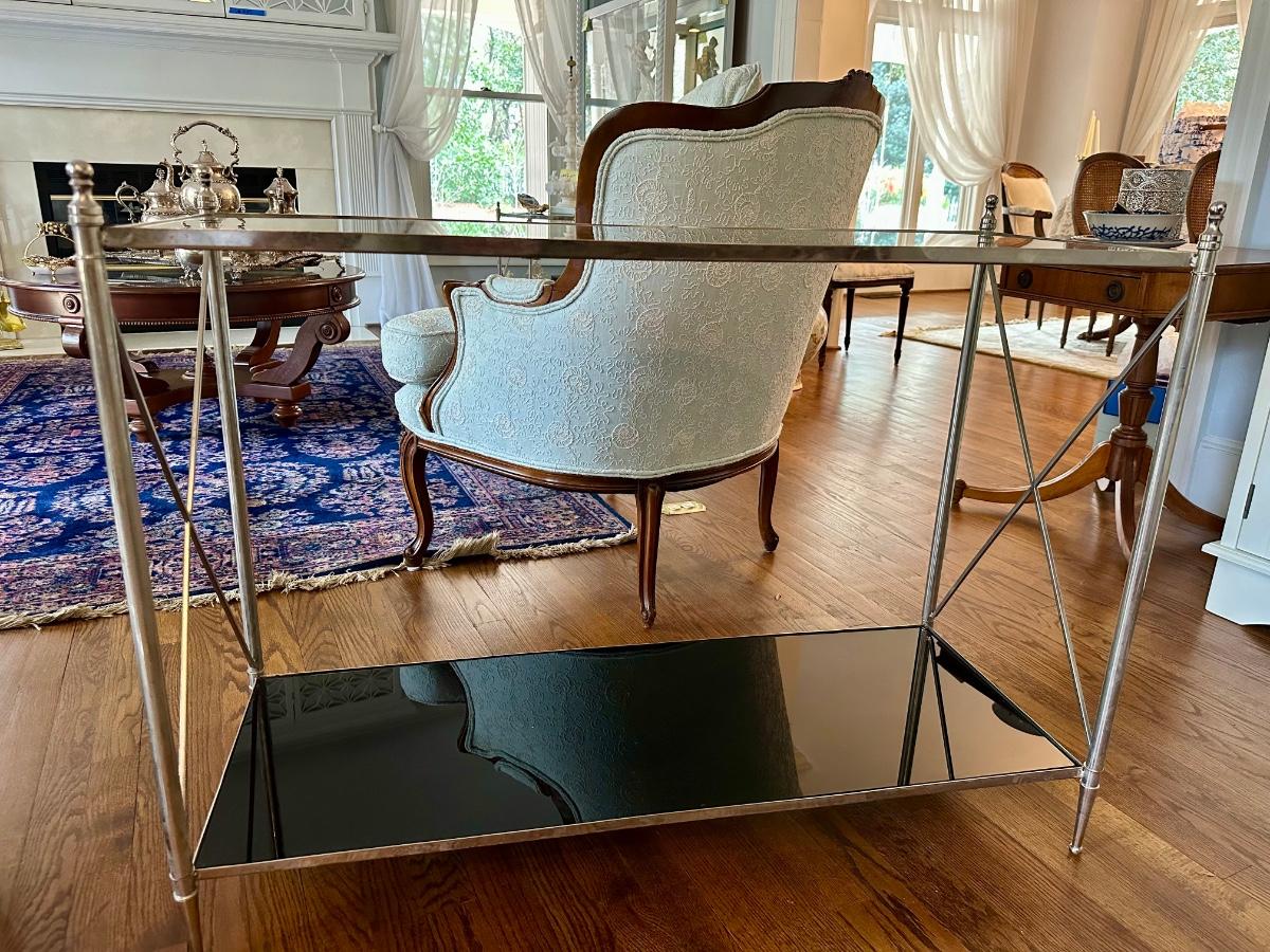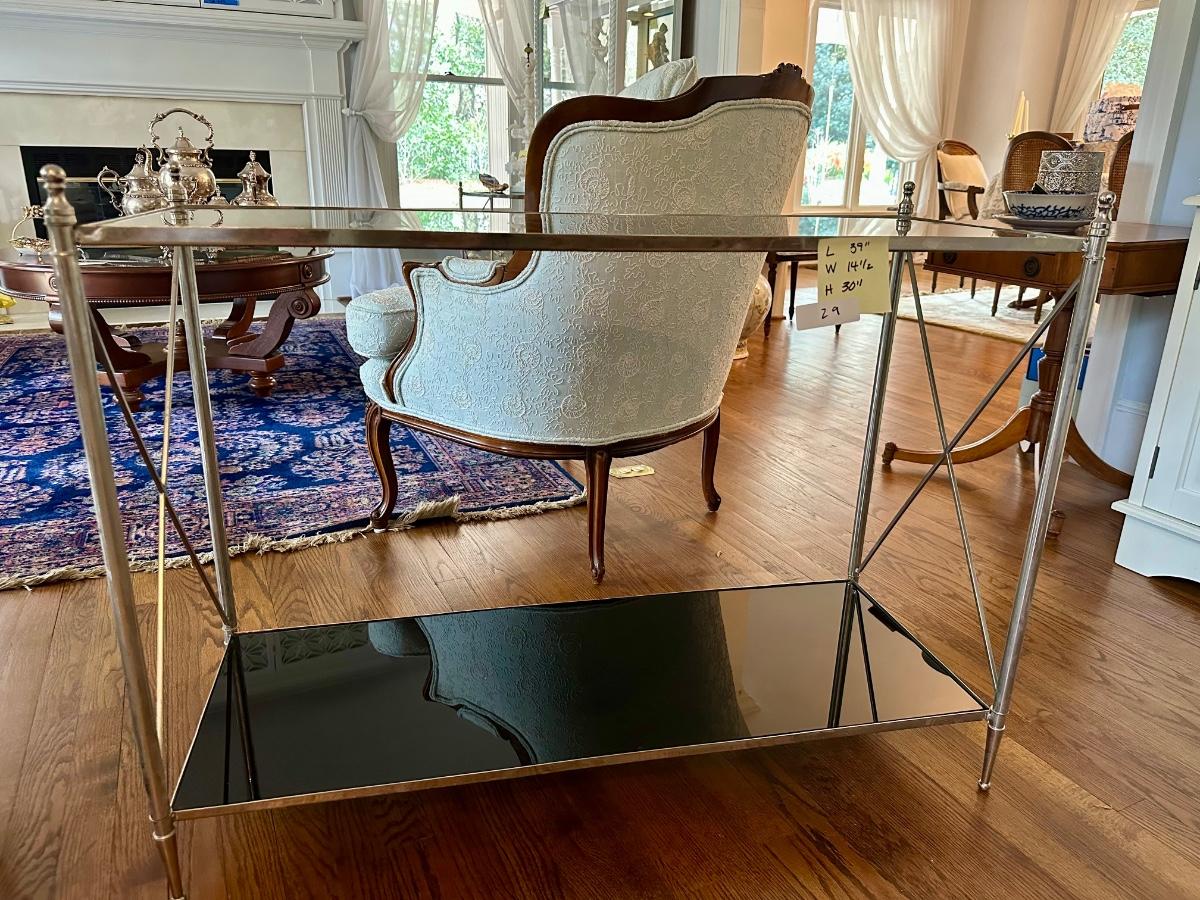 PAIR CHROME 2 TIER CONSOLE TABLES 39X14 1/2X 30