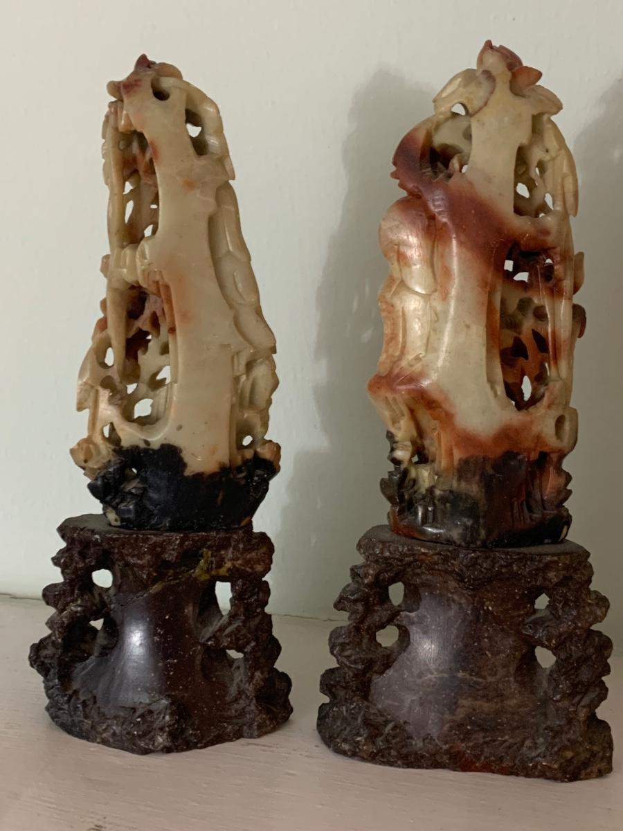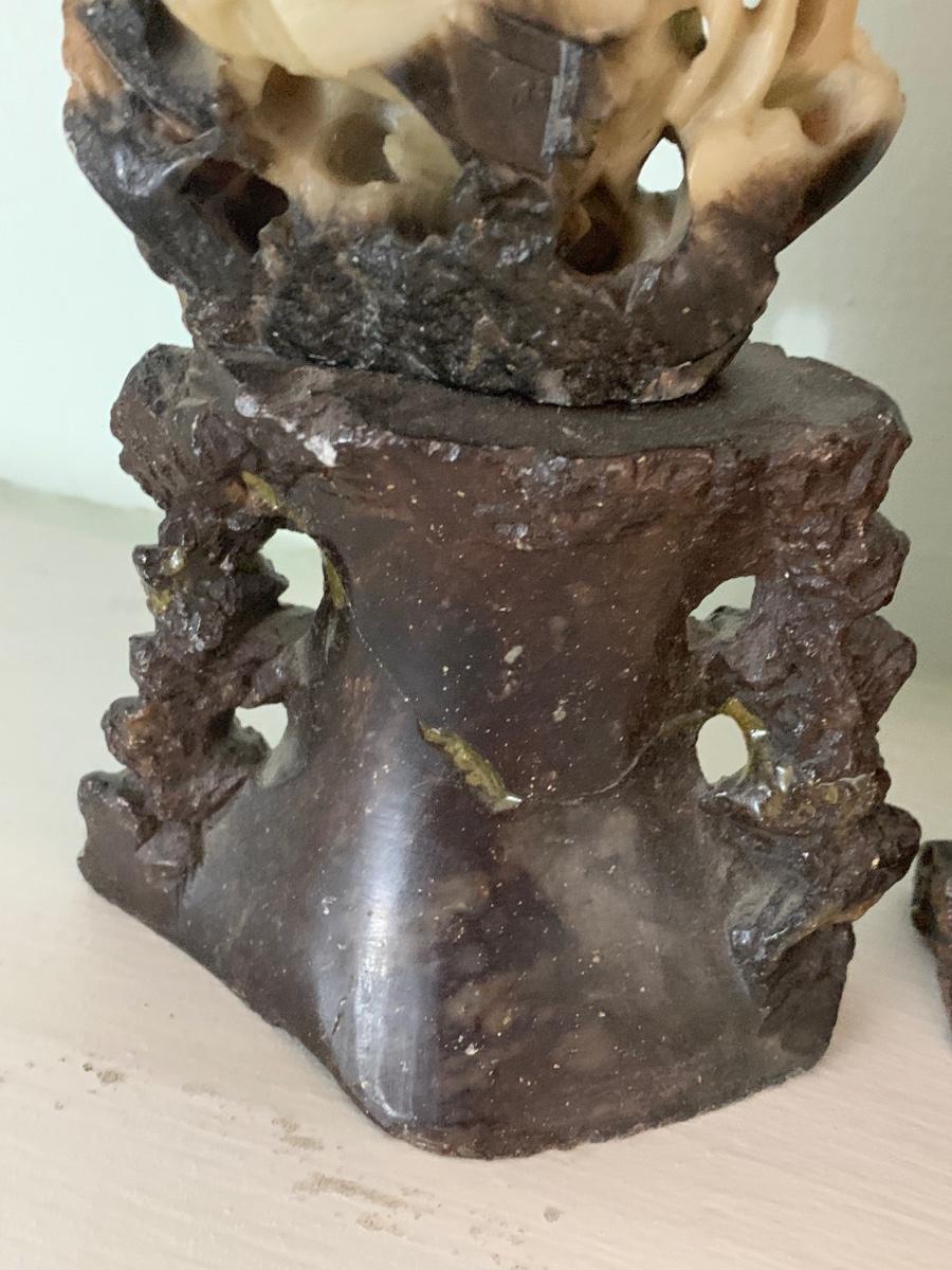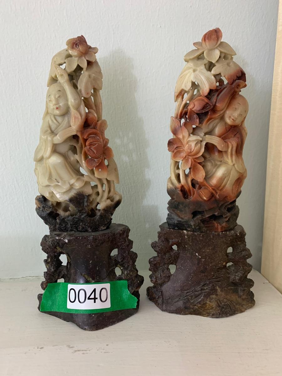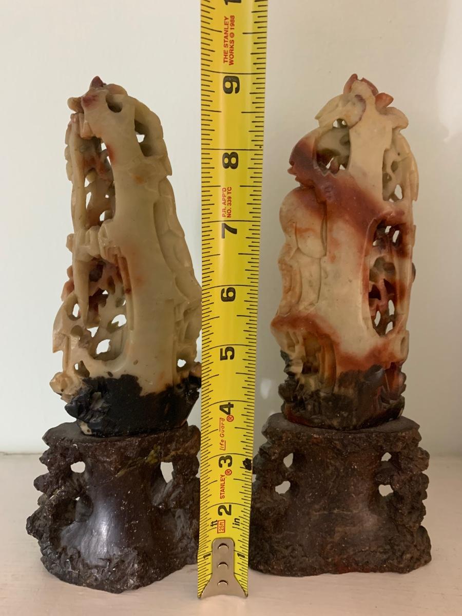 PAIR Early Asian Soap Stone Carvings - One shows repair