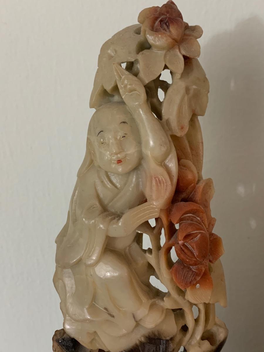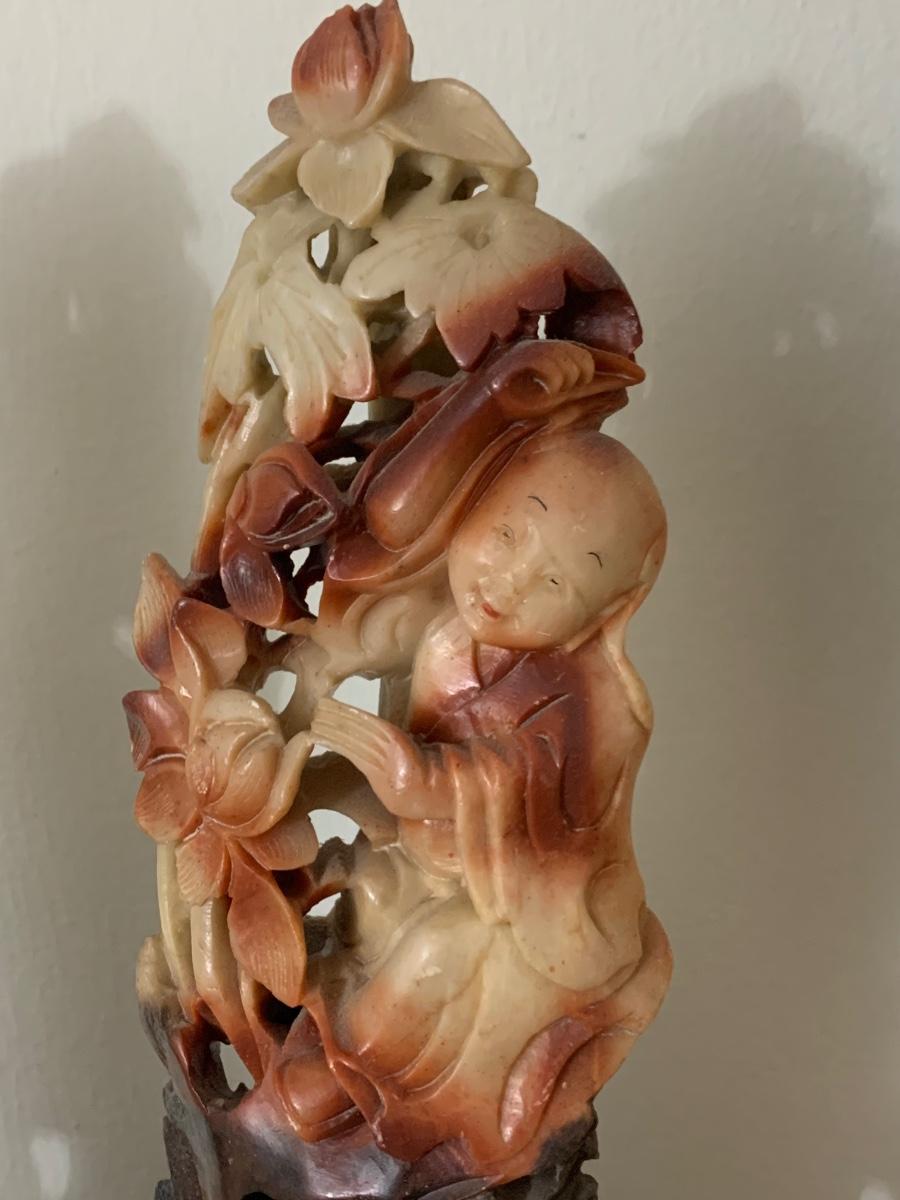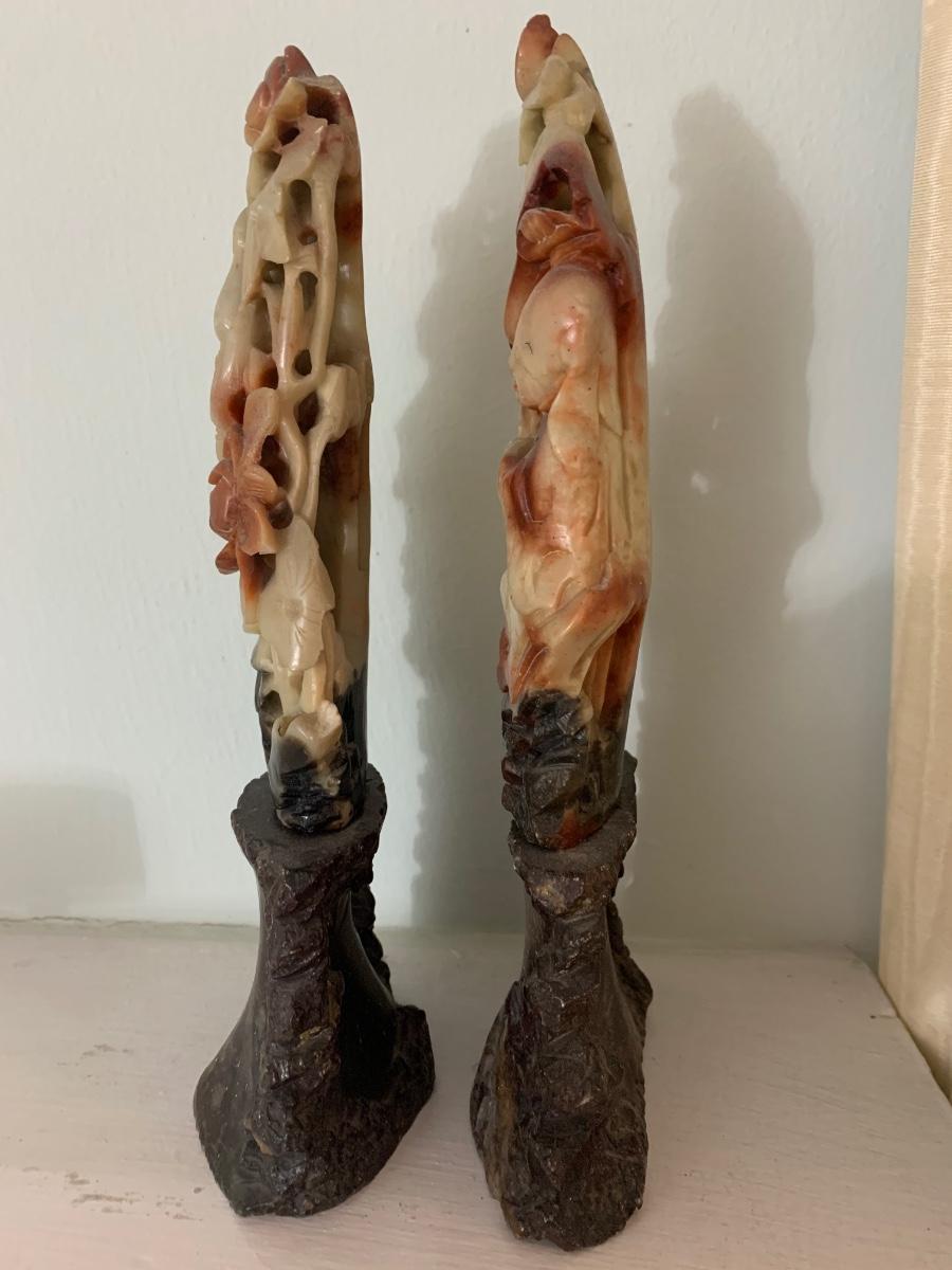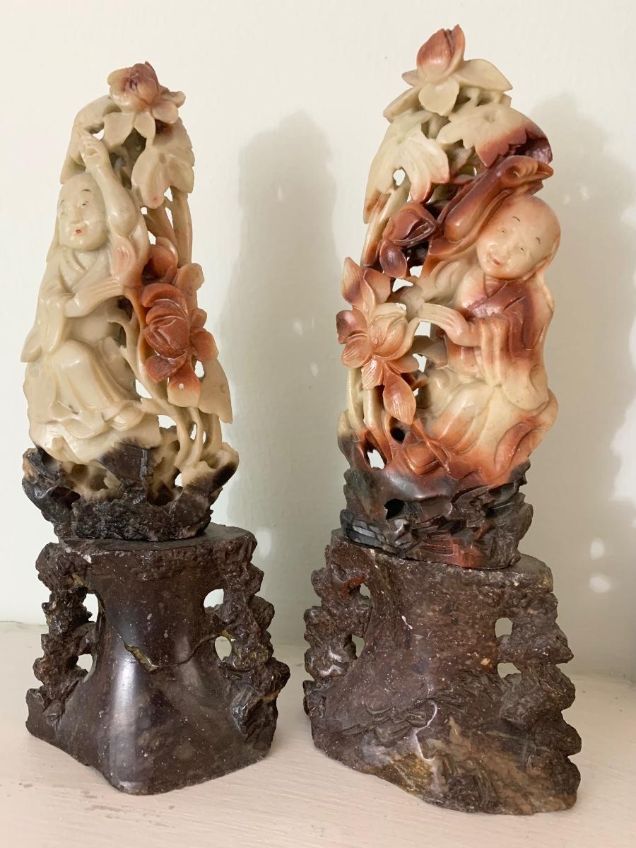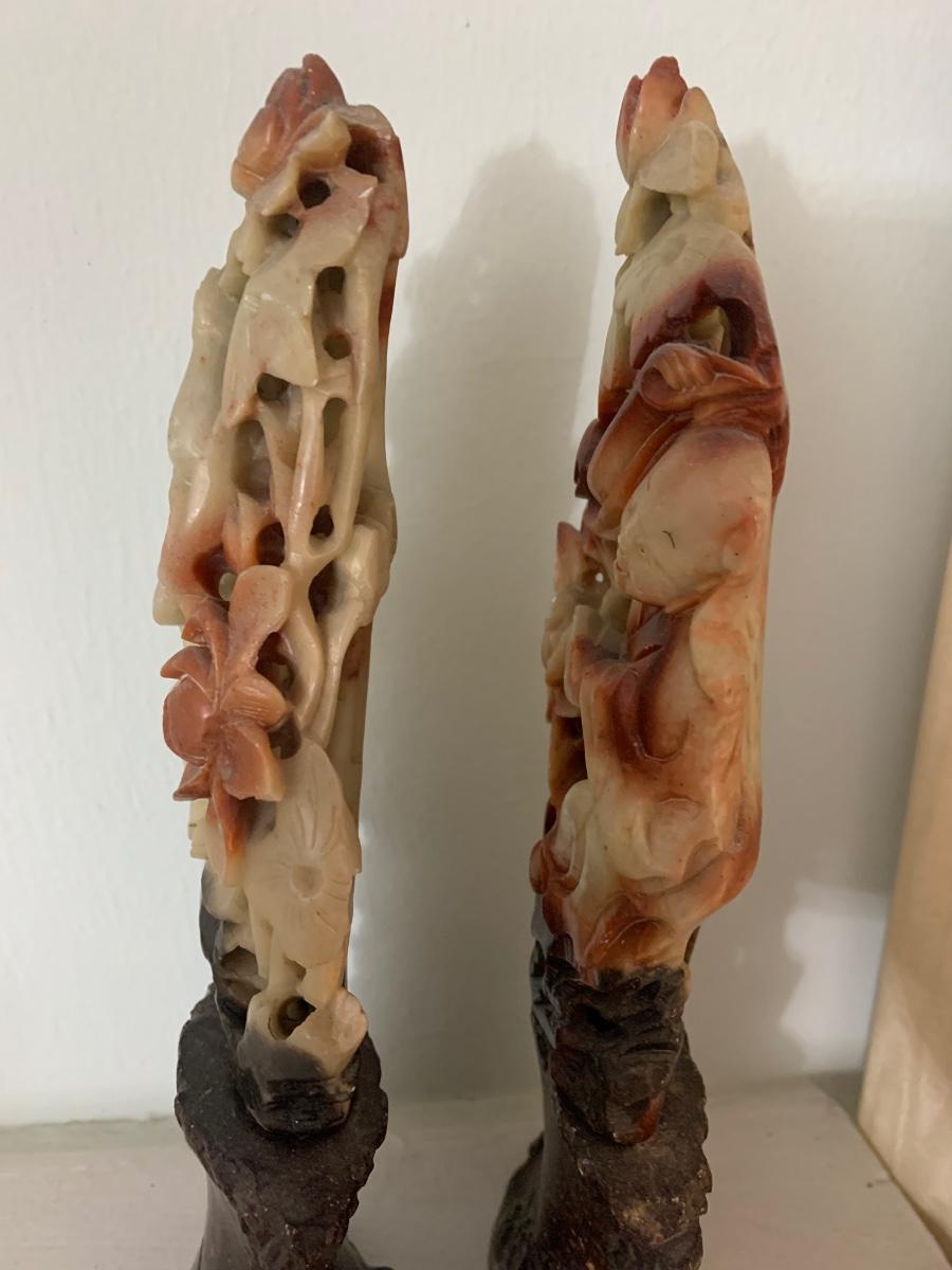 PAIR Early Asian Soap Stone Carvings - One shows repair