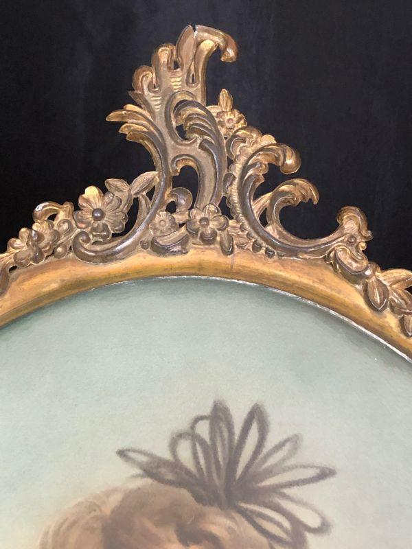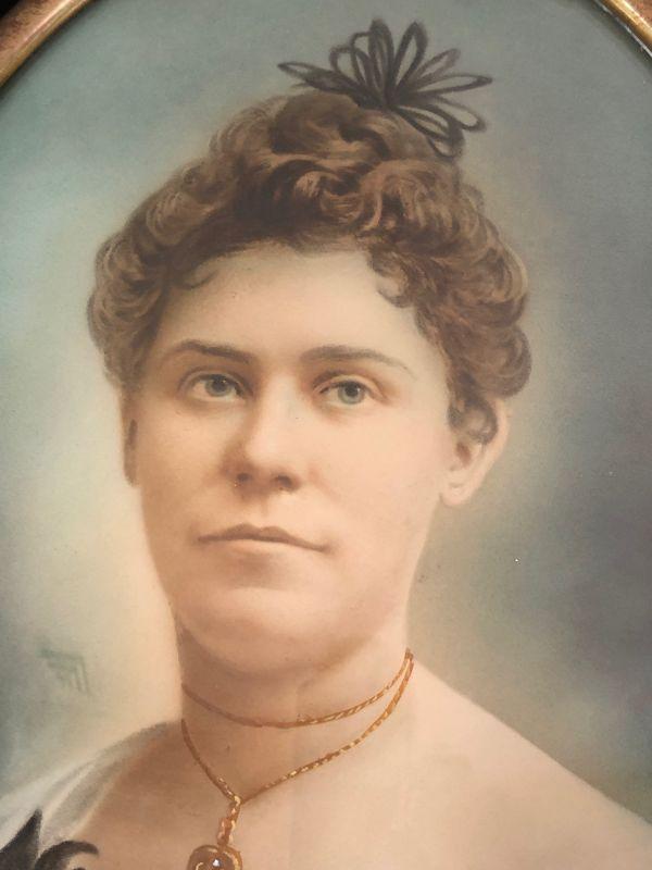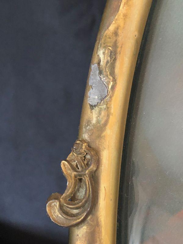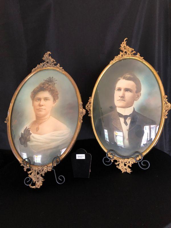 Pair Framed Brass Convex Glass Hand Tinted Portraits Early 20th C. Likely Wedding Portraits Lot # 427
