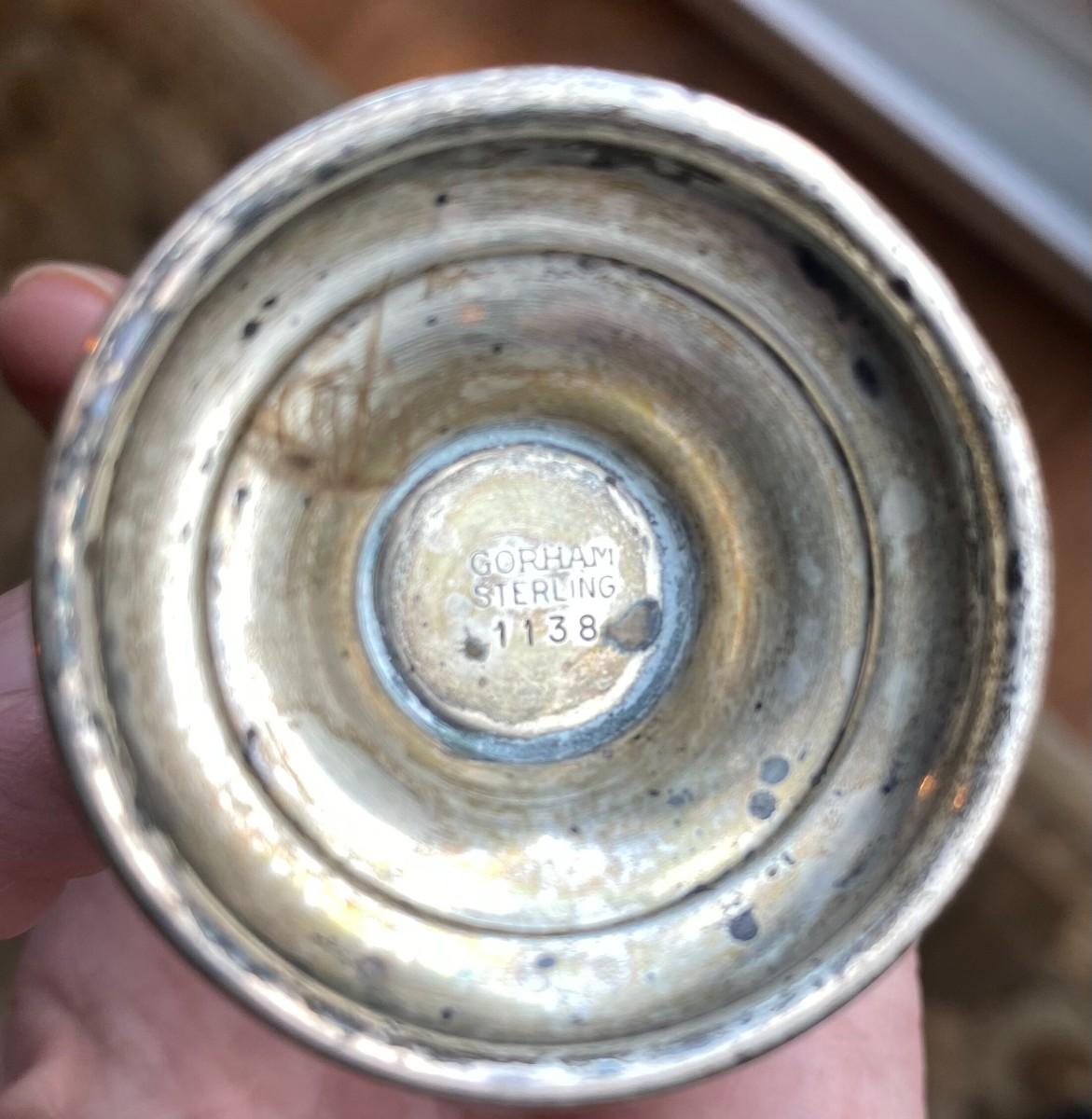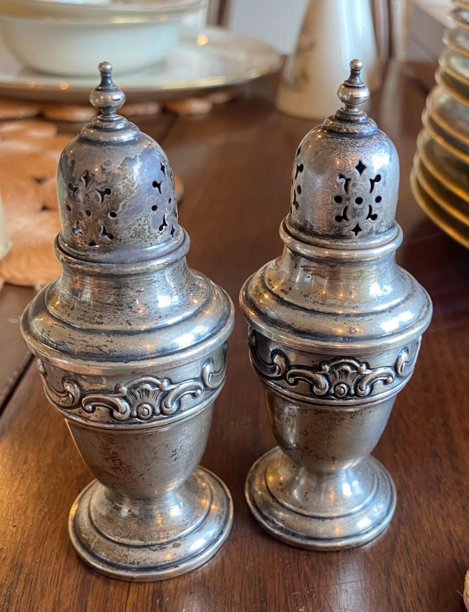 (pair) Gorham Strasbourg Silver Salt & Pepper this is a rare vintage pair, dating to 1940. D: 5" tall x 2" wide