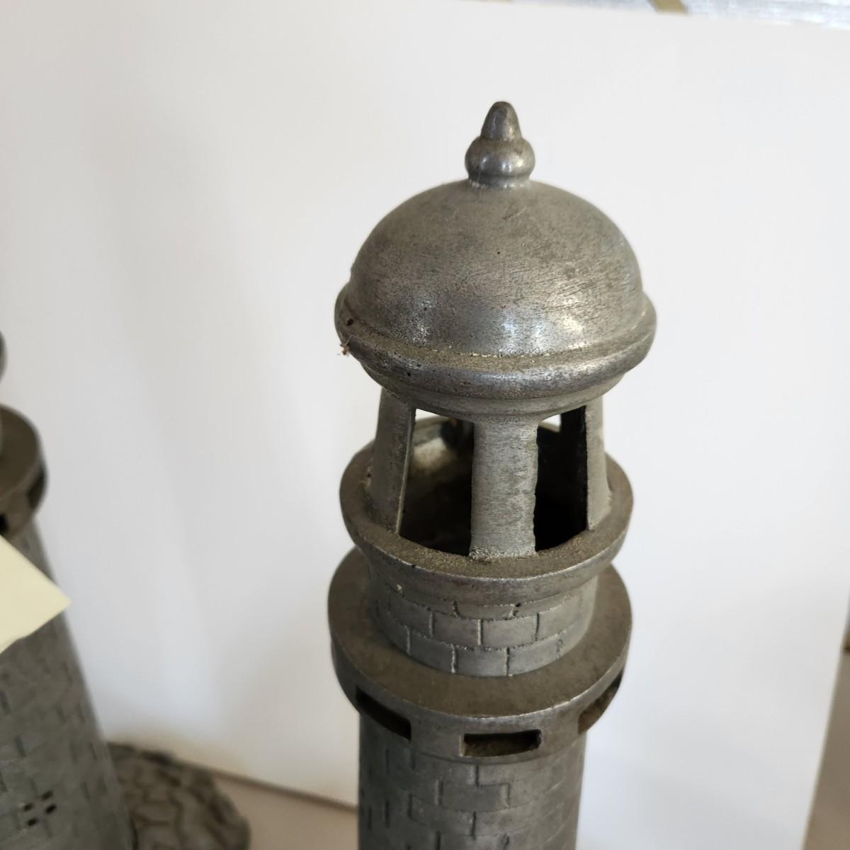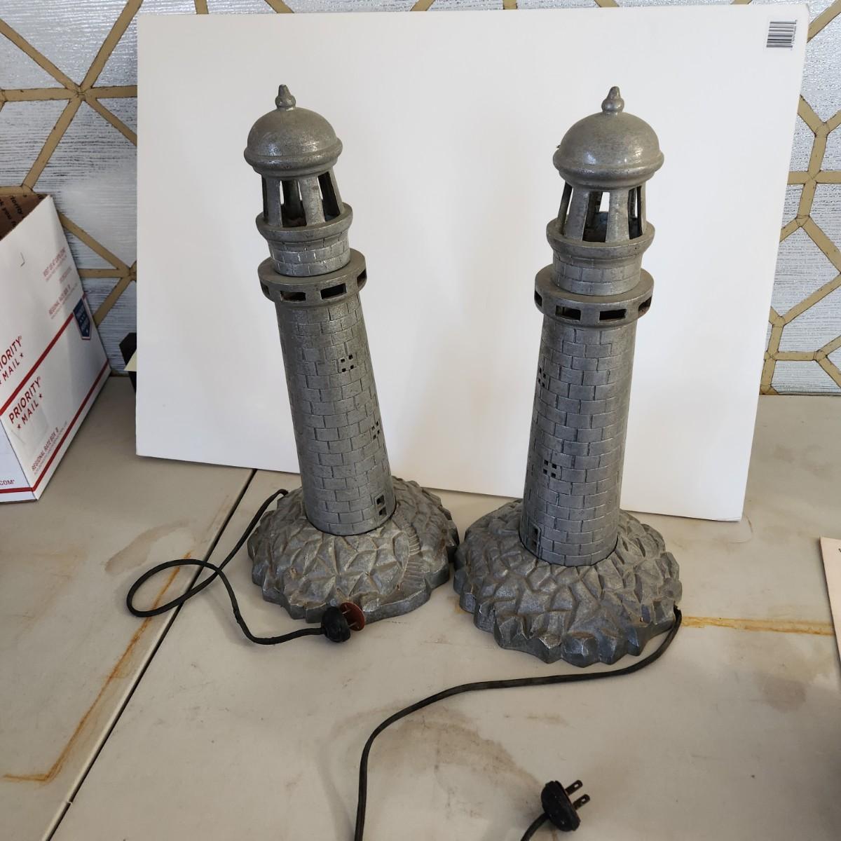Pair Heavy Cast-Metal Maritime Nautical Lighthouse Table Lamps 17" H