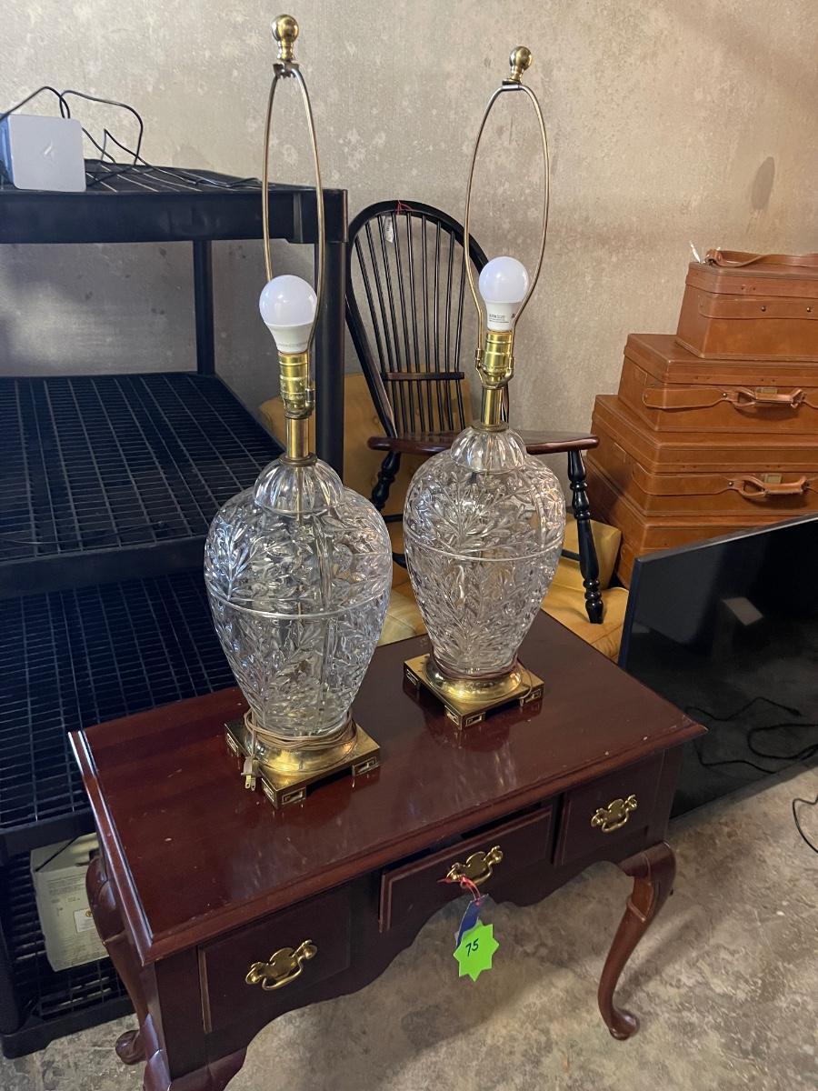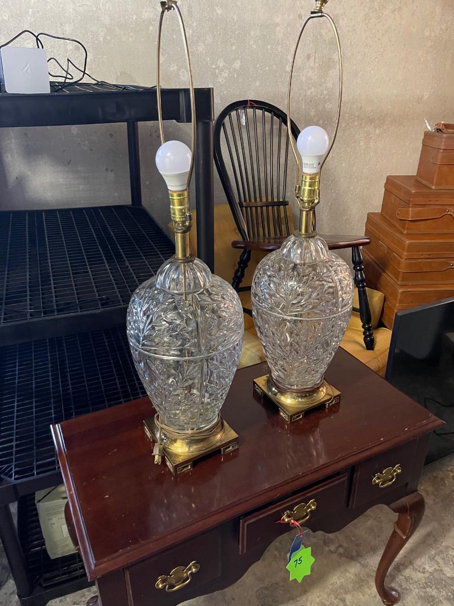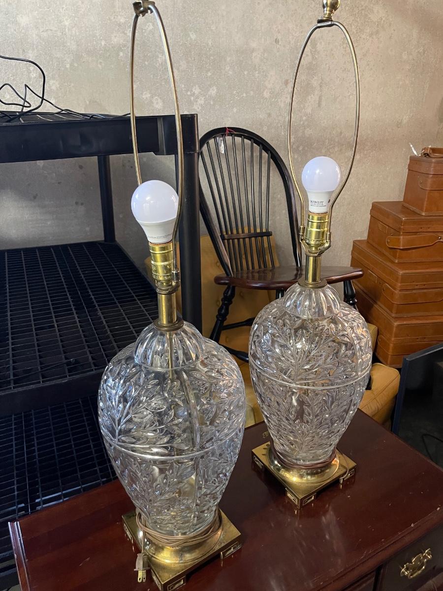 Beautiful pair of heavy lead Crystal on brass lamps. Pick up in Rosewood/Shandon area