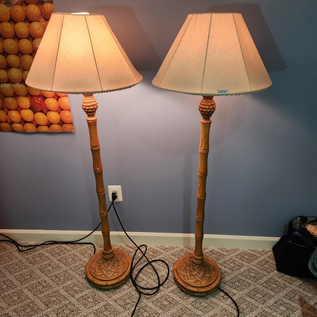 Pair Heavy Pineapple Floor Lamps 3 way Lights 5' tall