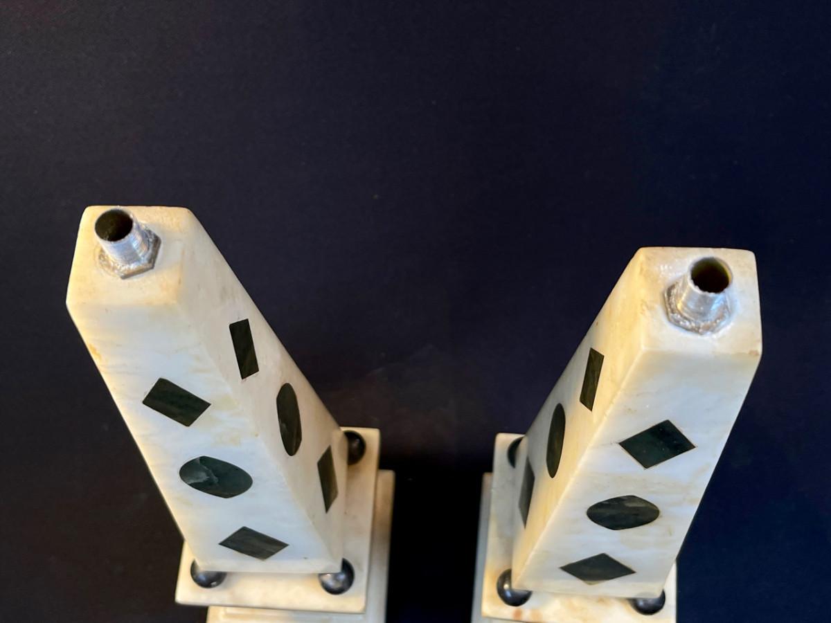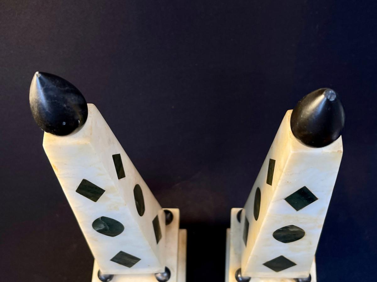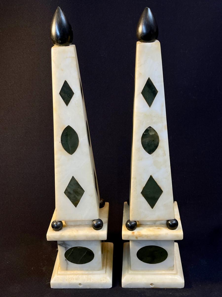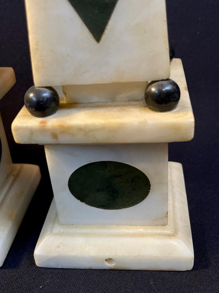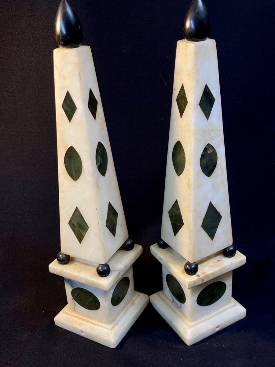 Pair Inlaid Marble White And Black Obelisks Lamp Bases