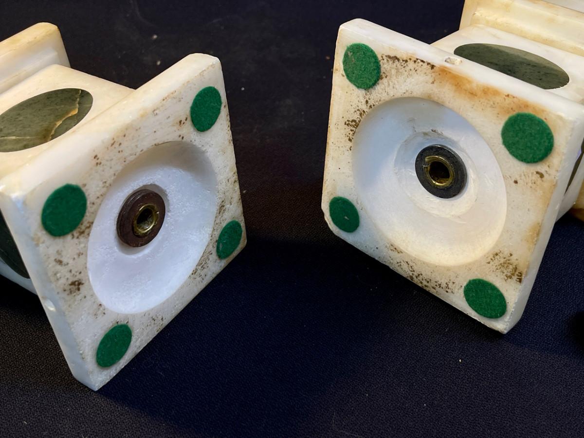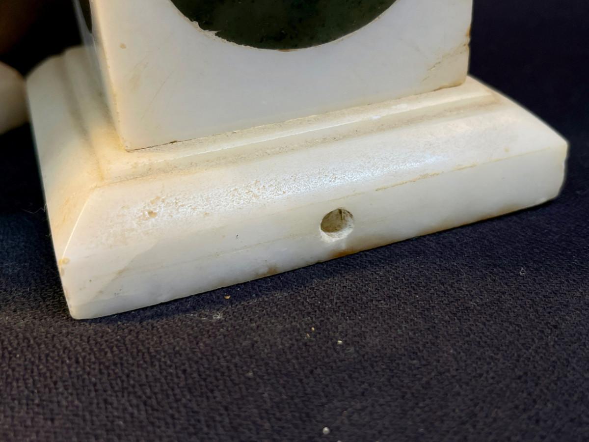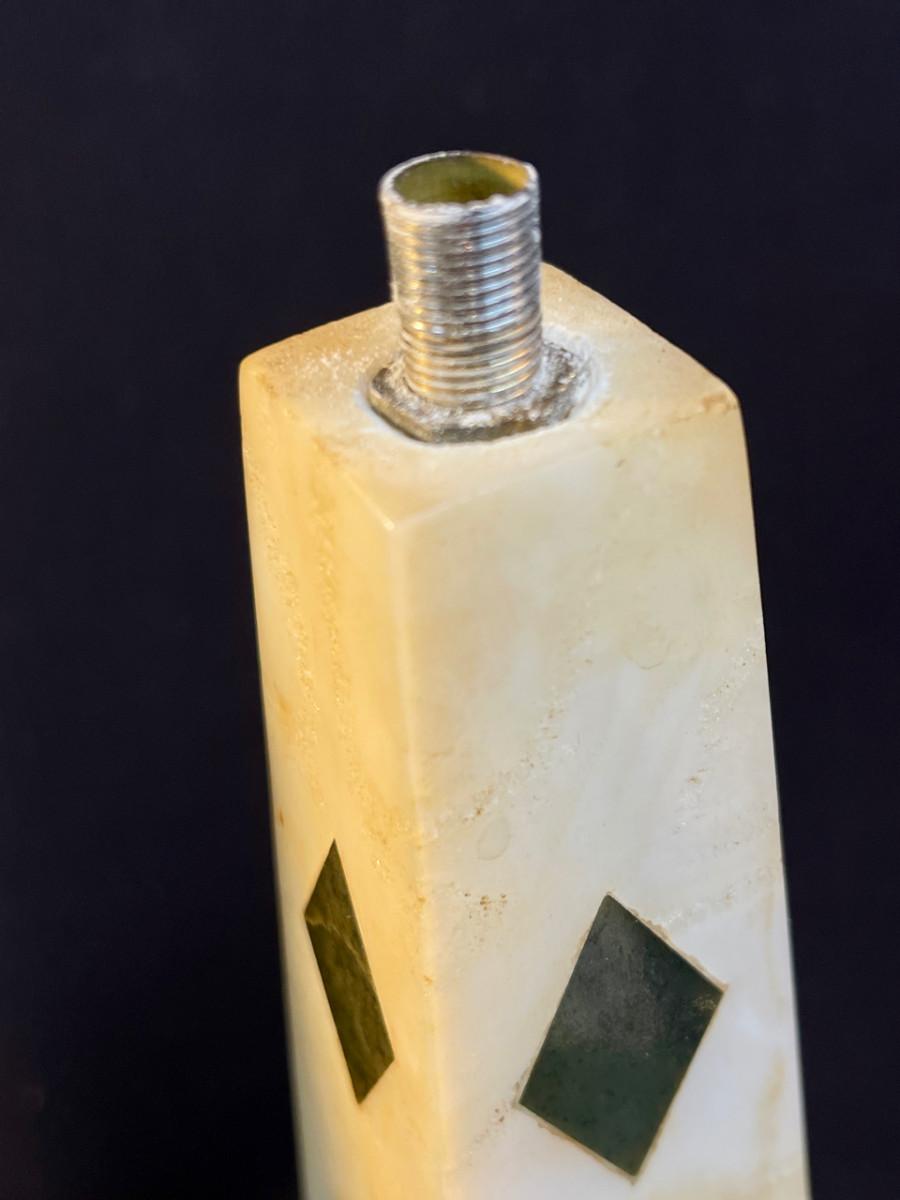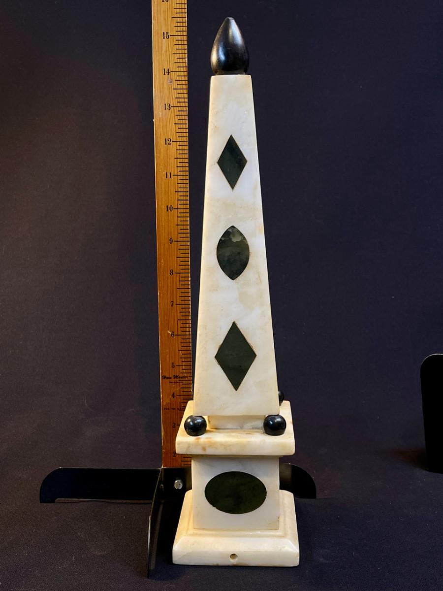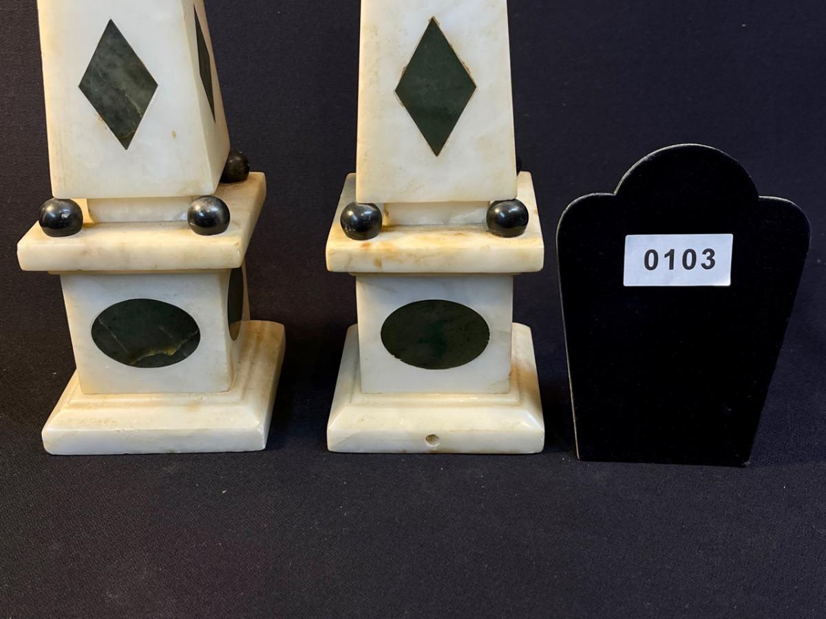 Pair Inlaid Marble White And Black Obelisks Lamp Bases