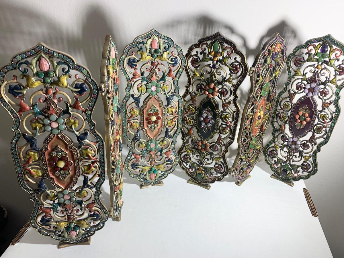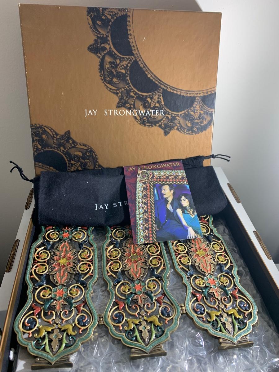 PAIR Jay Strongwater Siddhartha Chinoiserie Tapestry Folding Screen - Orginal Boxes