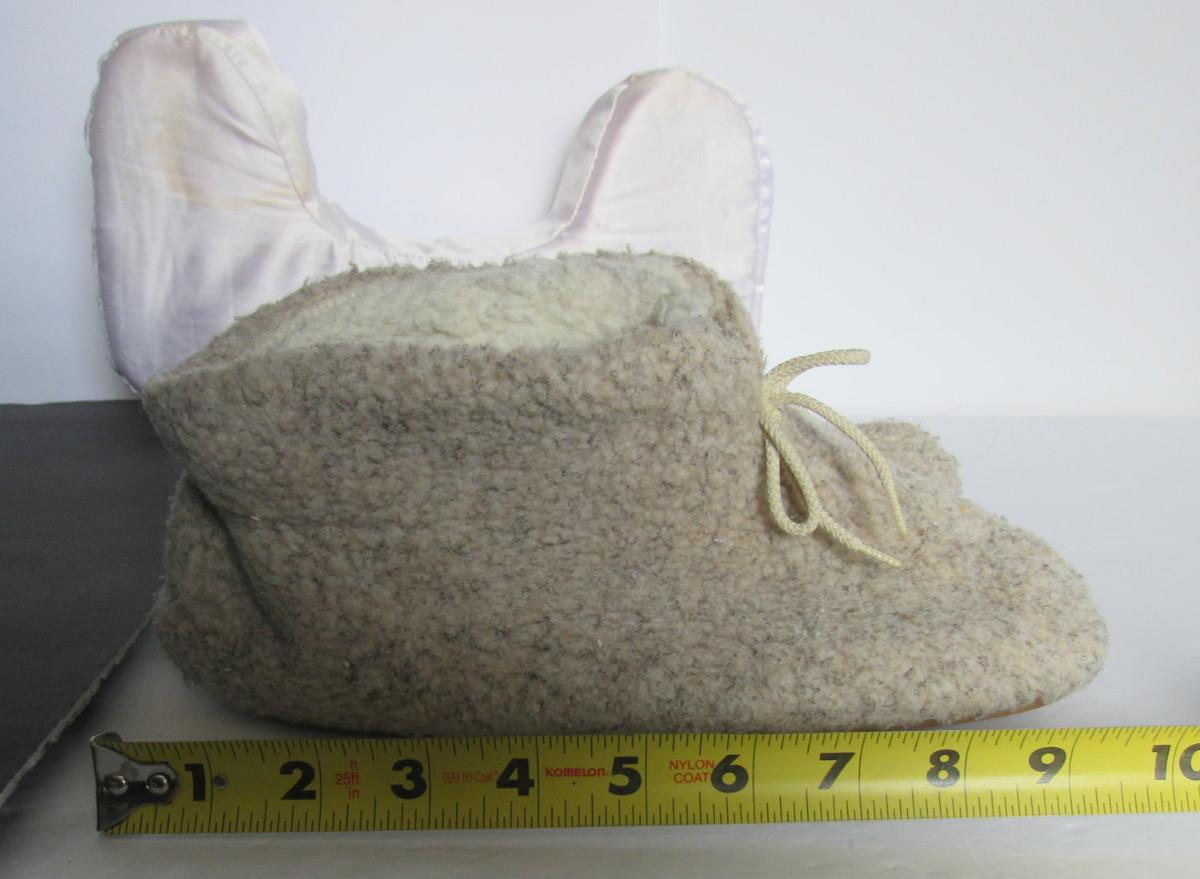 The booties seem to be in good shape but need washing. Size 8-9. The neck pillow is sturdy but the zip off cover is stained and needs to be bleached or replaced. Shipping is available at cost plus $5.00 per box handling and supply fee. See our terms. All sales final.