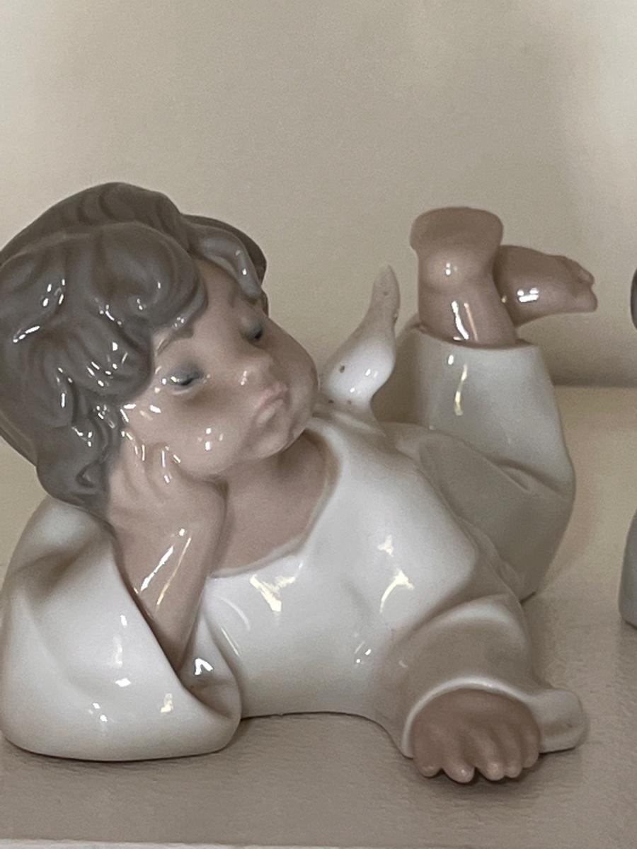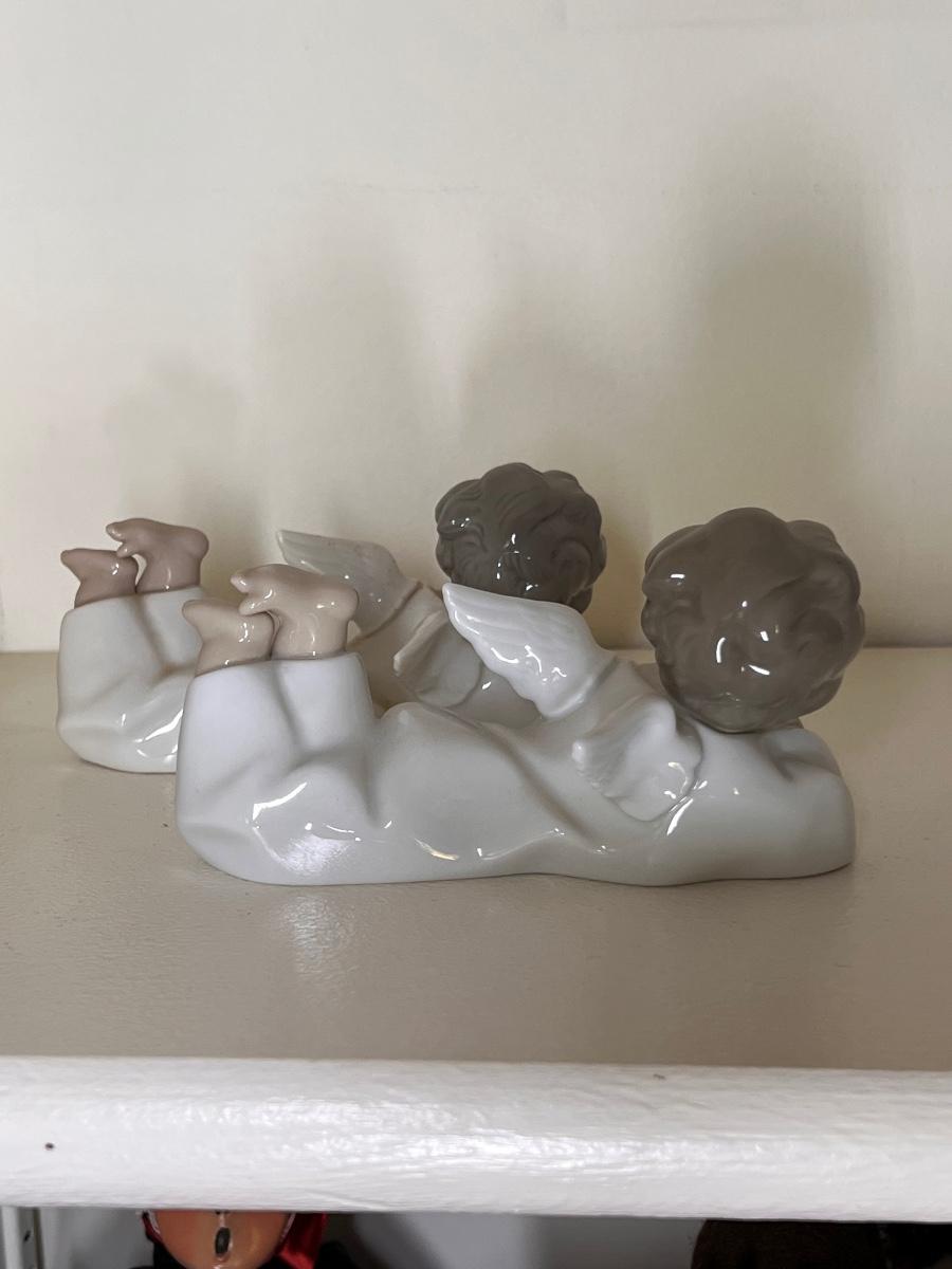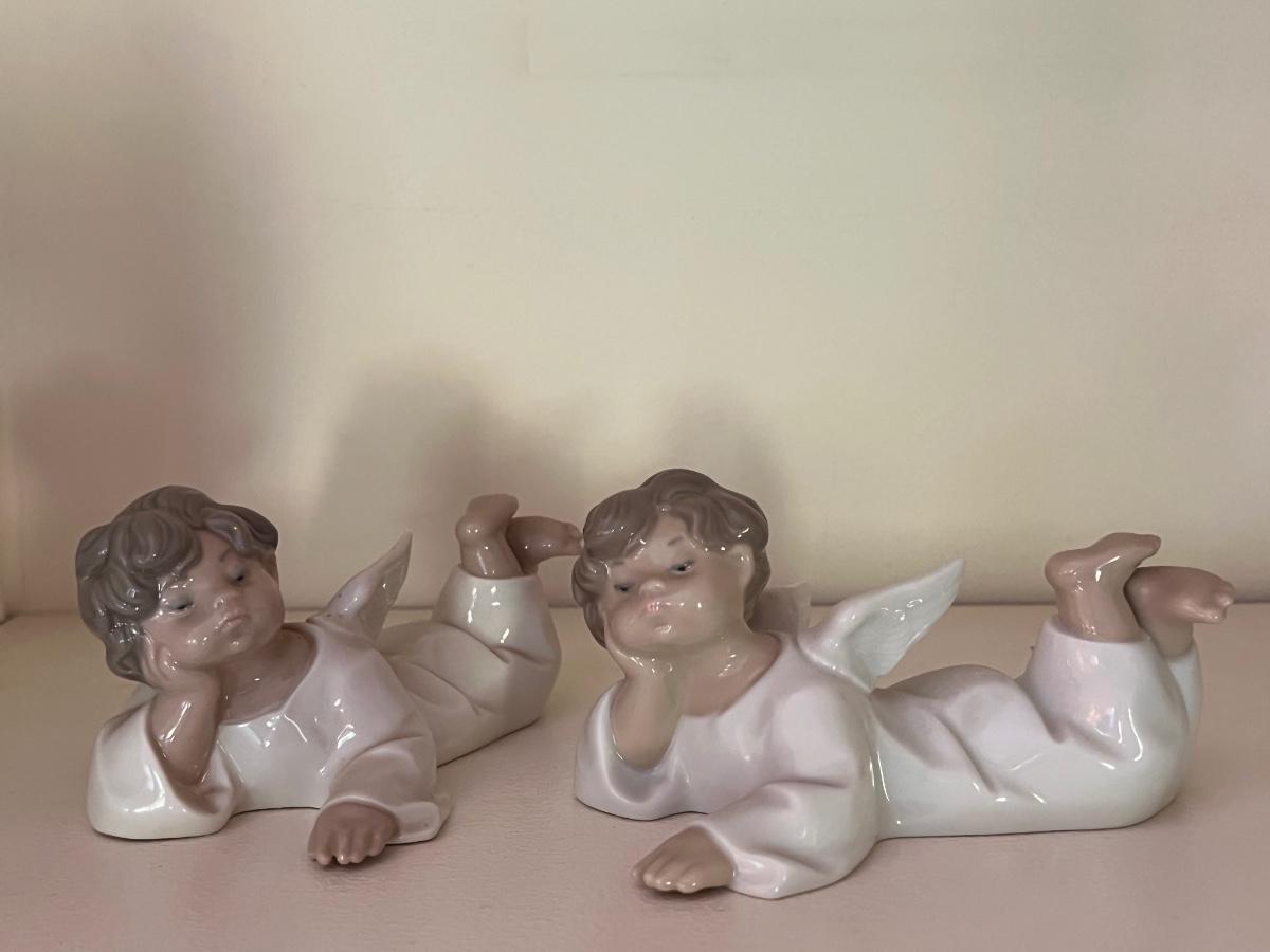 Pair Lladro Angels Lying Down, Christmas, holiday