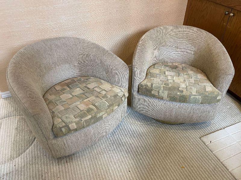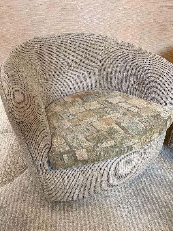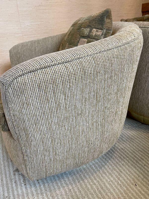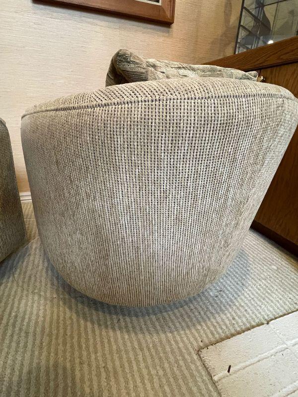 (Pair) Milo Baughman for Thayer Coggin “Roxy-O” Barrel Swivel Chairs