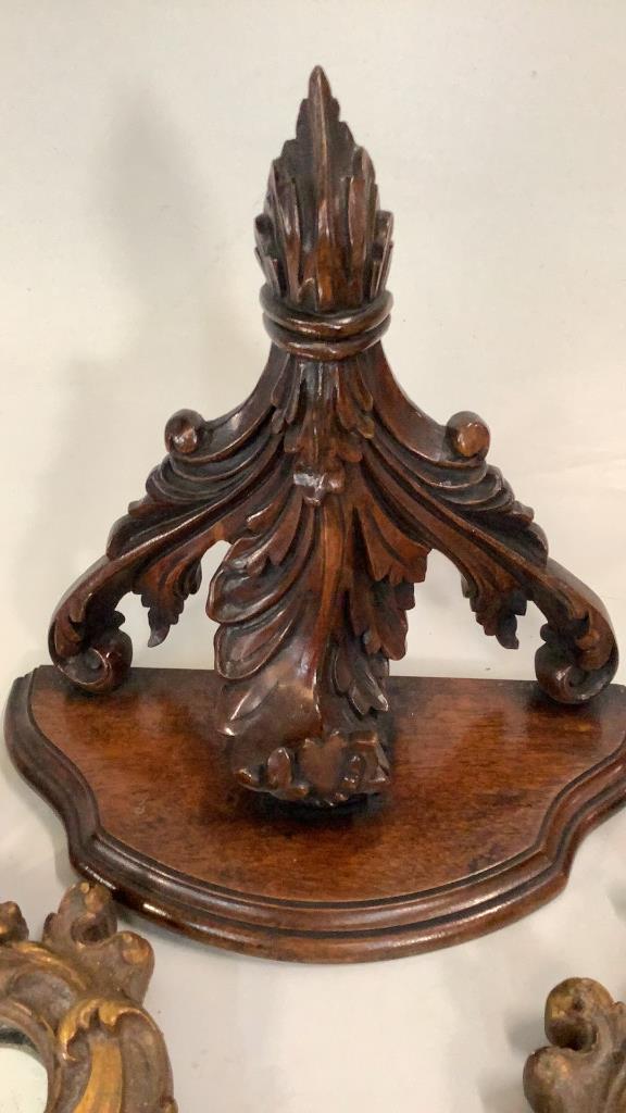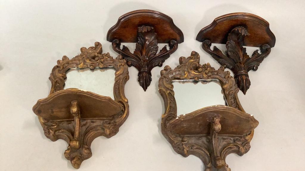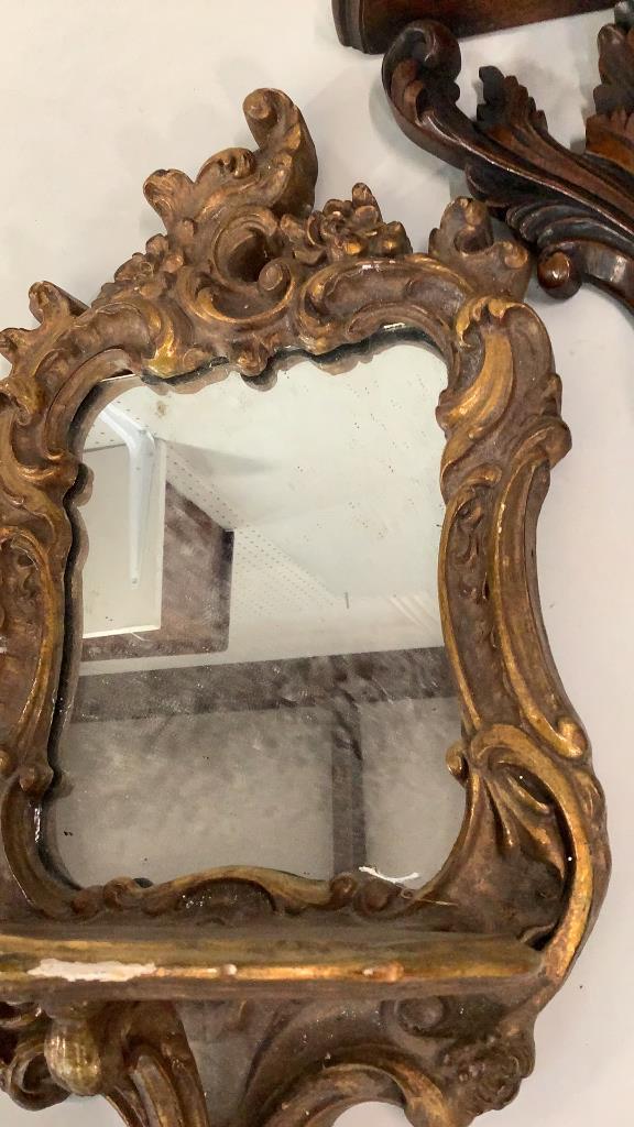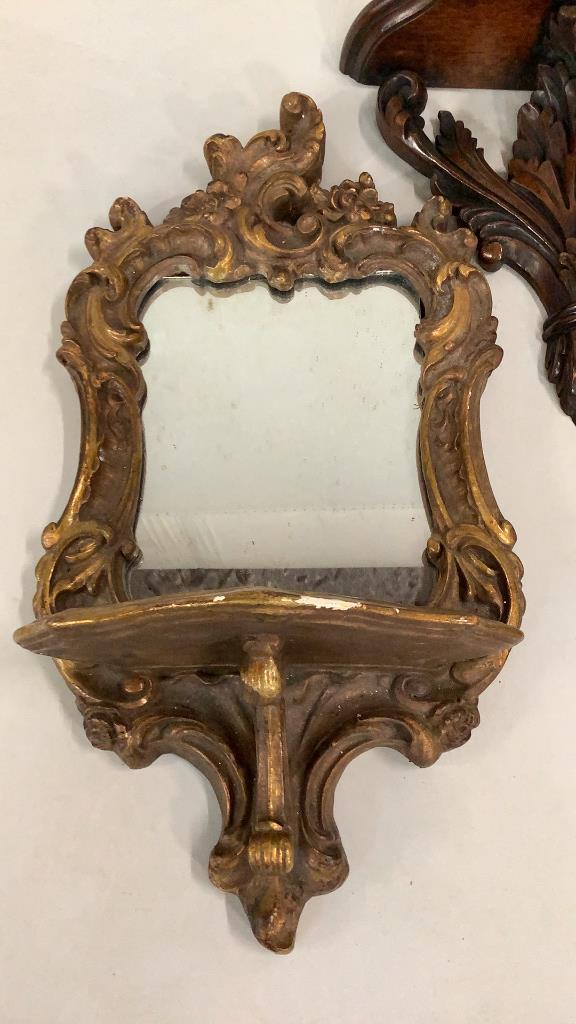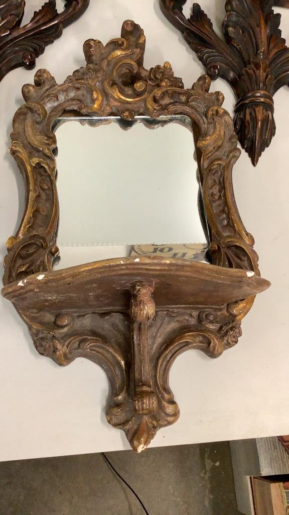 18 x 10 inch mirrored plaster wall brackets, gilted, with French design, pair carved wood brackets..12 x 13 inchesÂ….with Acanthus leaf supportsÂ…* some gilt loss to plaster Line Item # 41,9