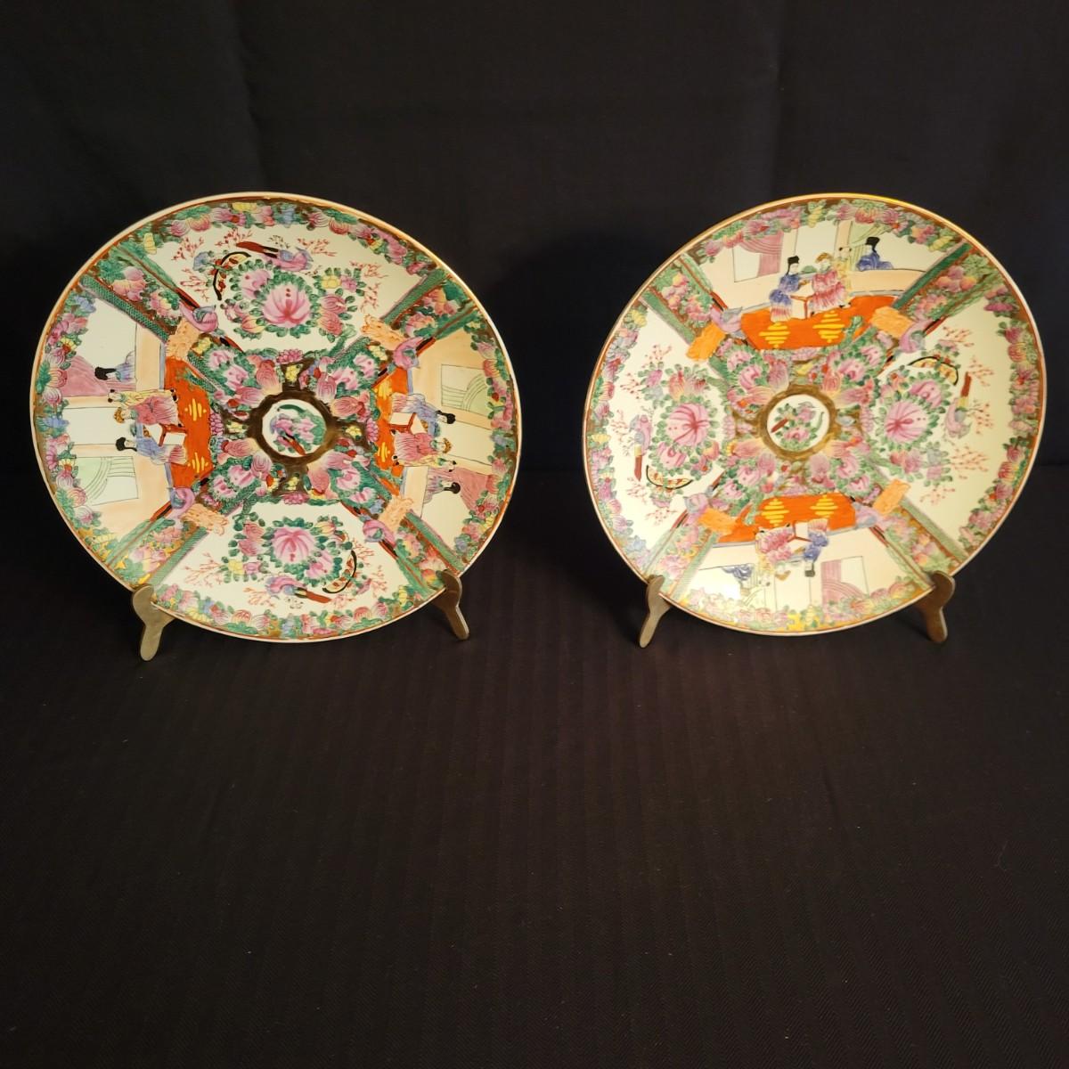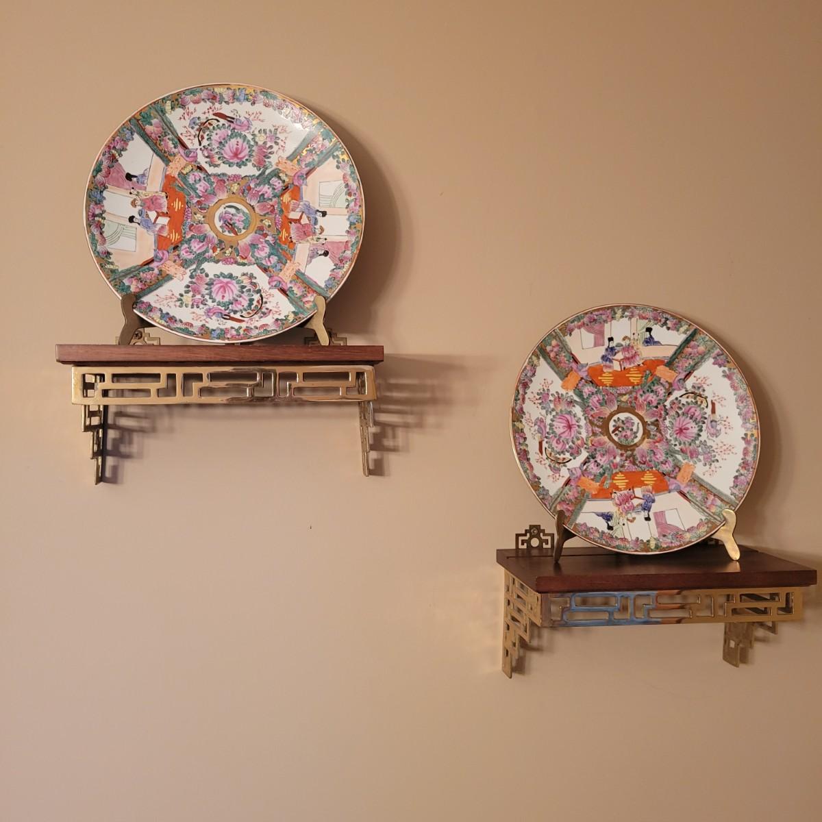 Pair of Asian Decorative Plates, Shelves and Plate Easels (DR-DW)