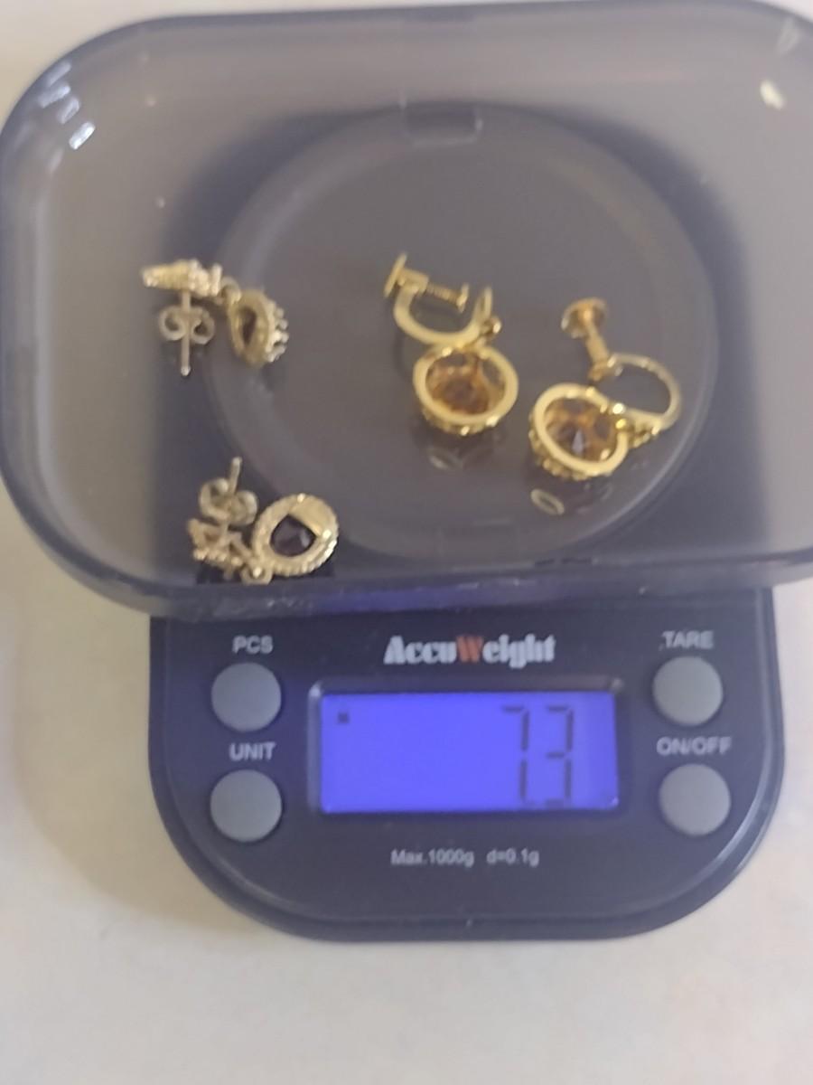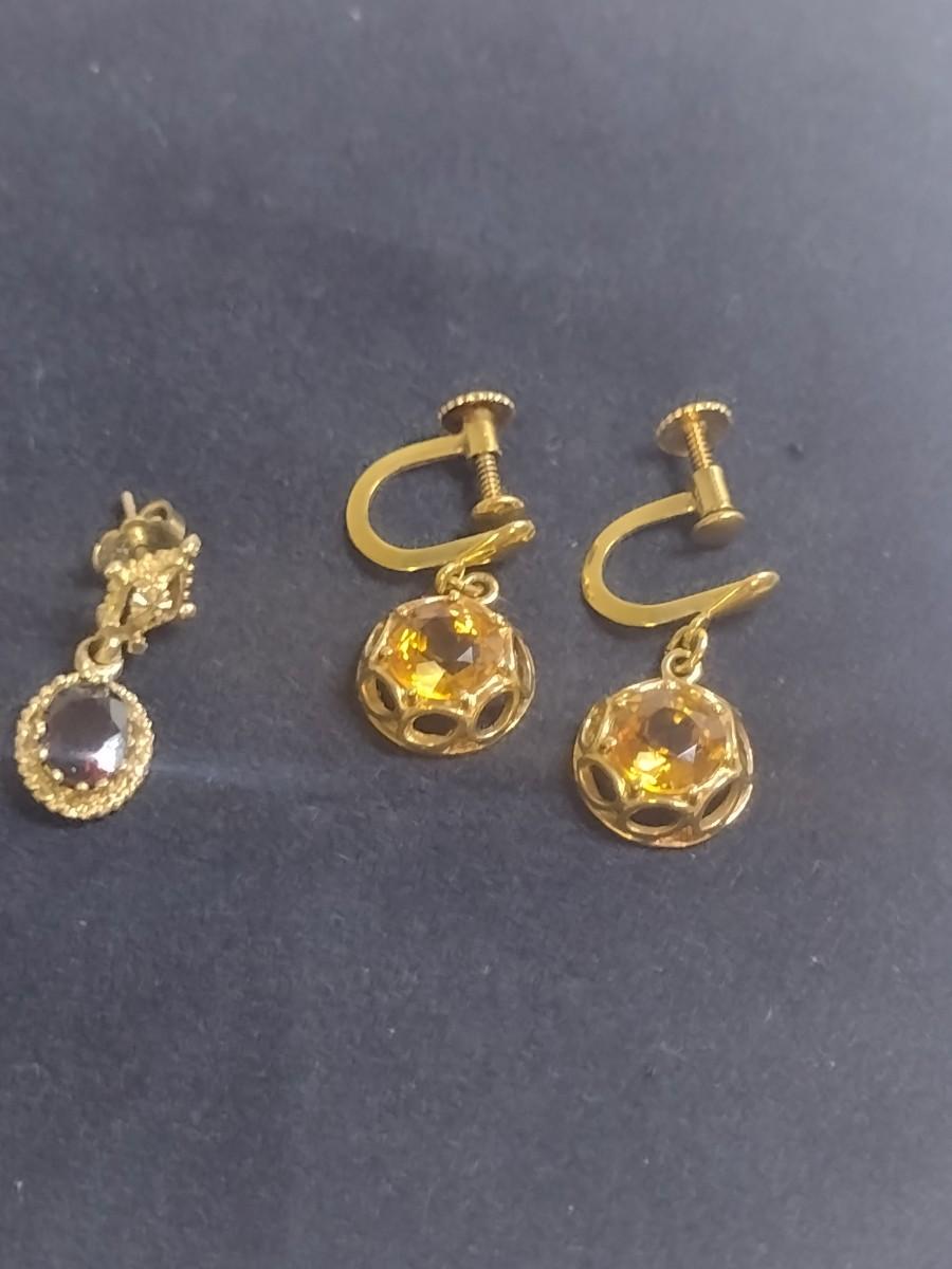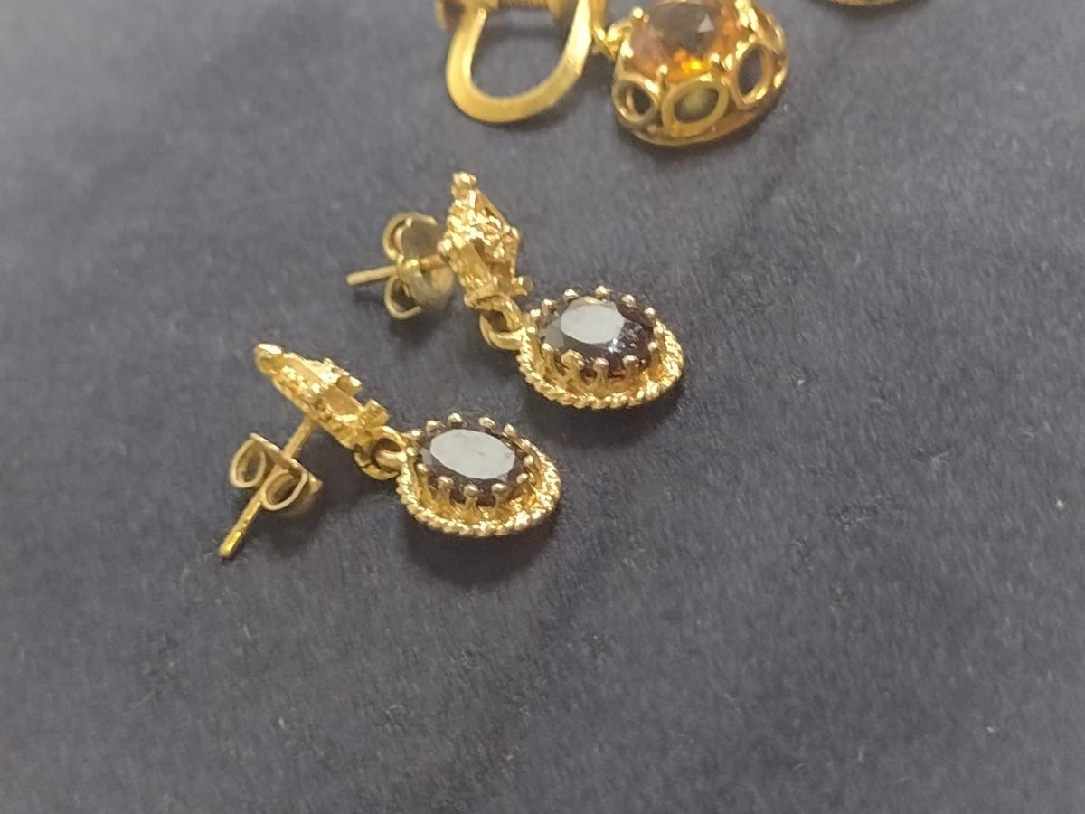 Pair of 14K Yellow Gold Gemstone Earrings 7.3 grams (#7). Possible garnet and citrine stones. A 6.75% NC sales tax will be added to the jewelry invoice amount at the end of the sale. Coins are exempt from state sales tax.