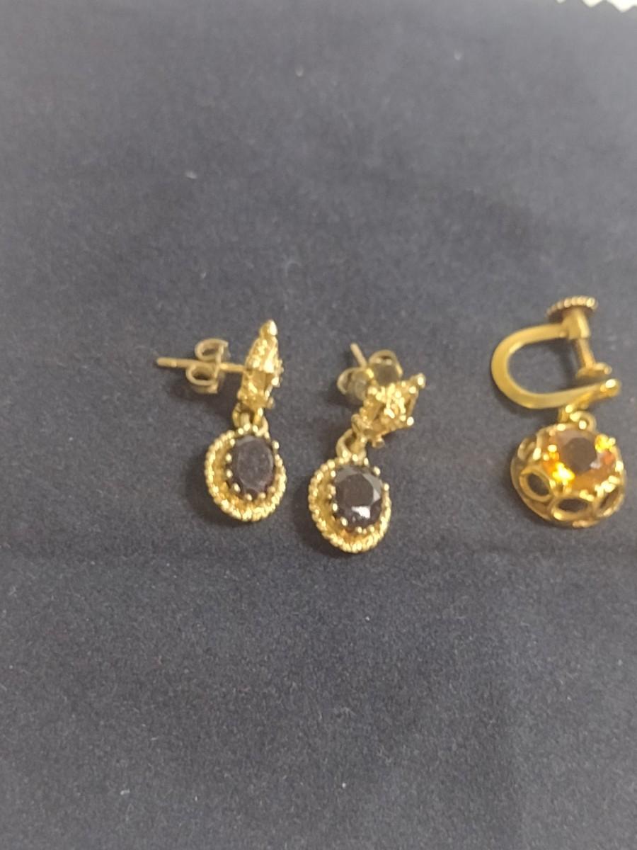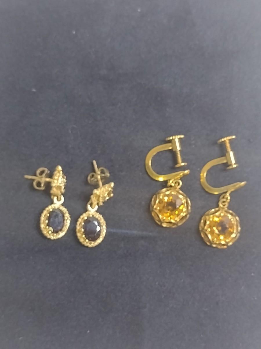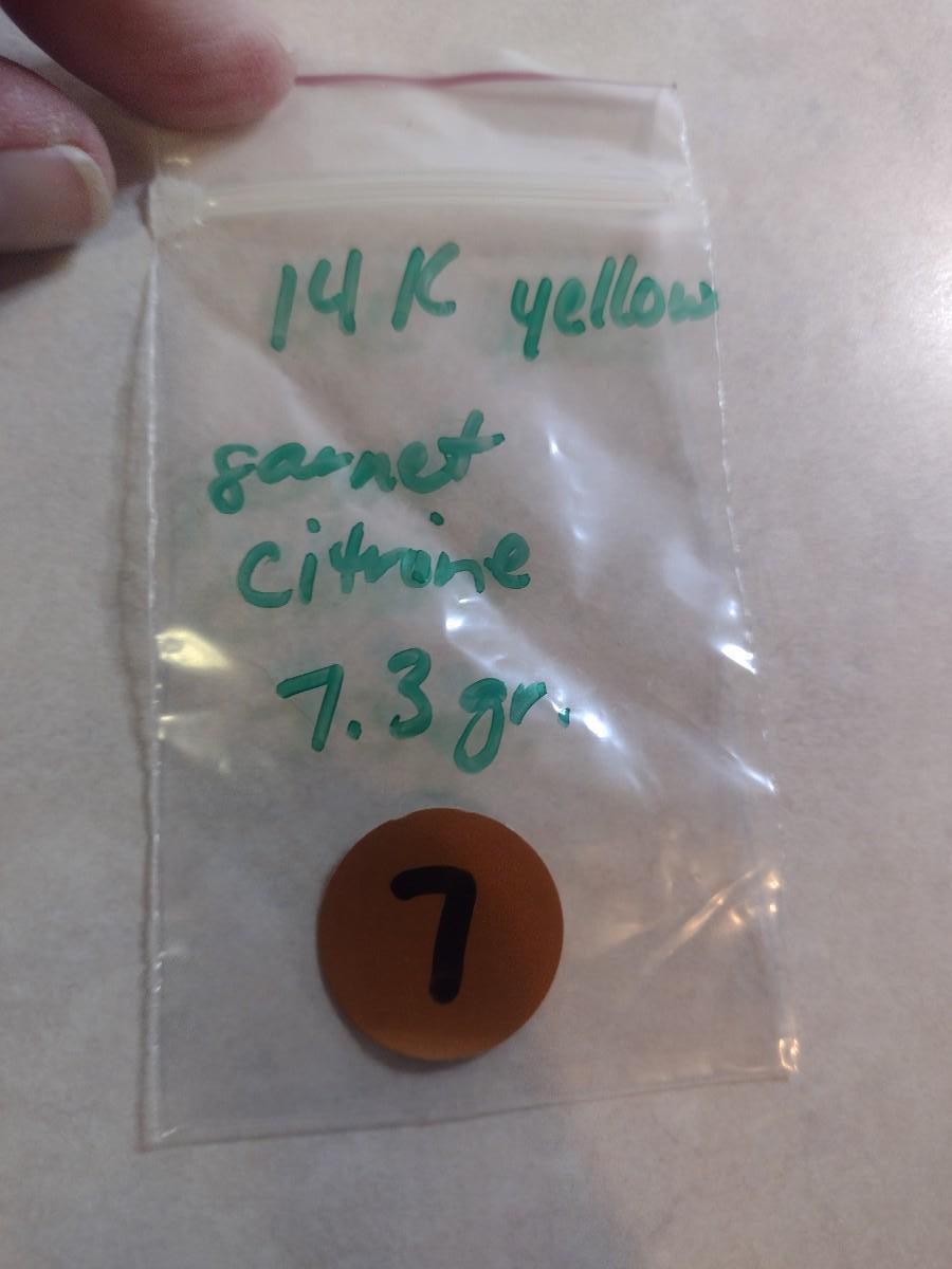 Pair of 14K Yellow Gold Gemstone Earrings 7.3 grams (#7). Possible garnet and citrine stones. A 6.75% NC sales tax will be added to the jewelry invoice amount at the end of the sale. Coins are exempt from state sales tax.