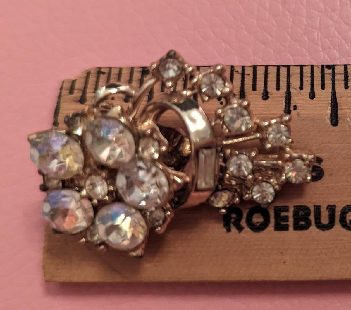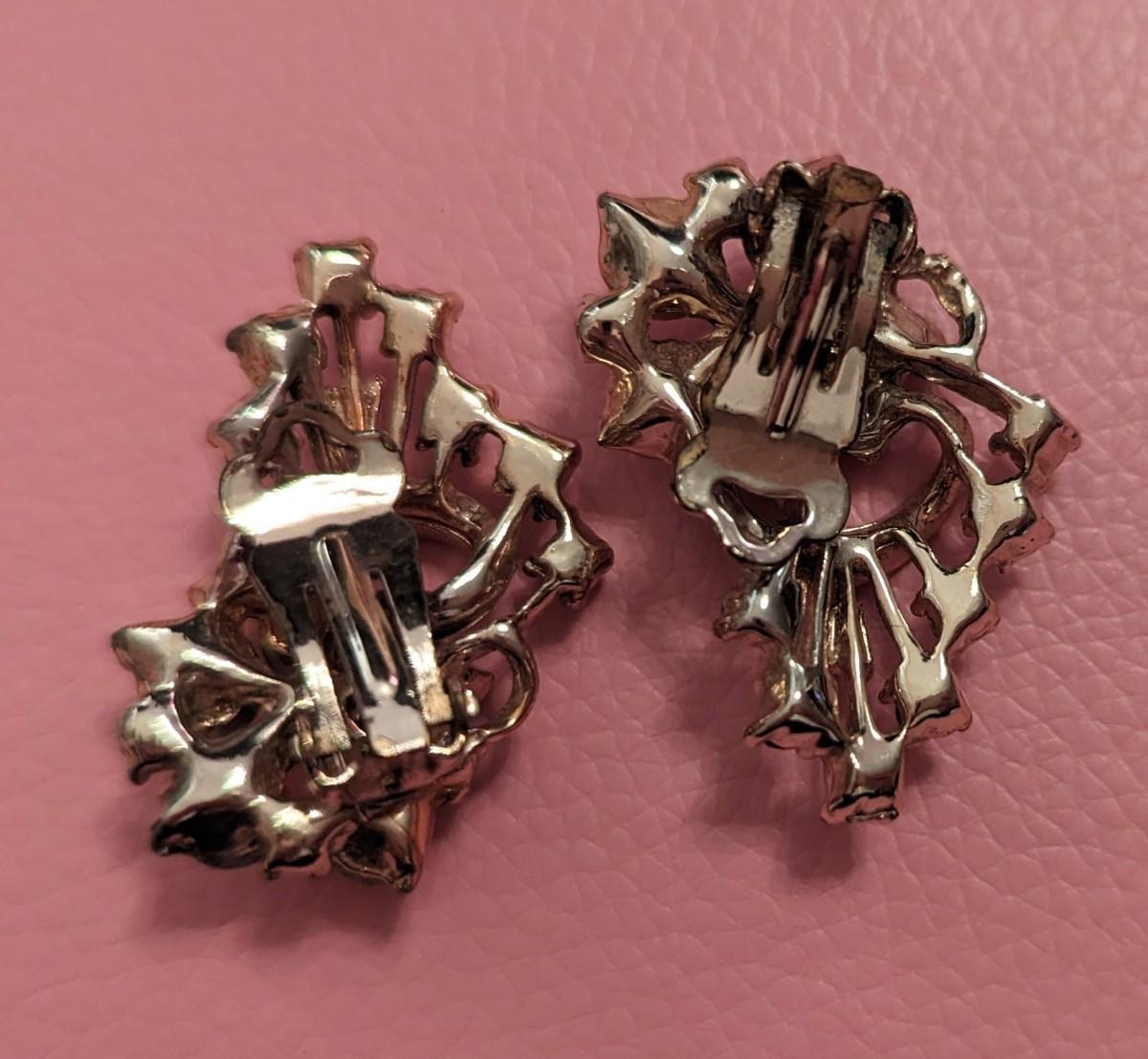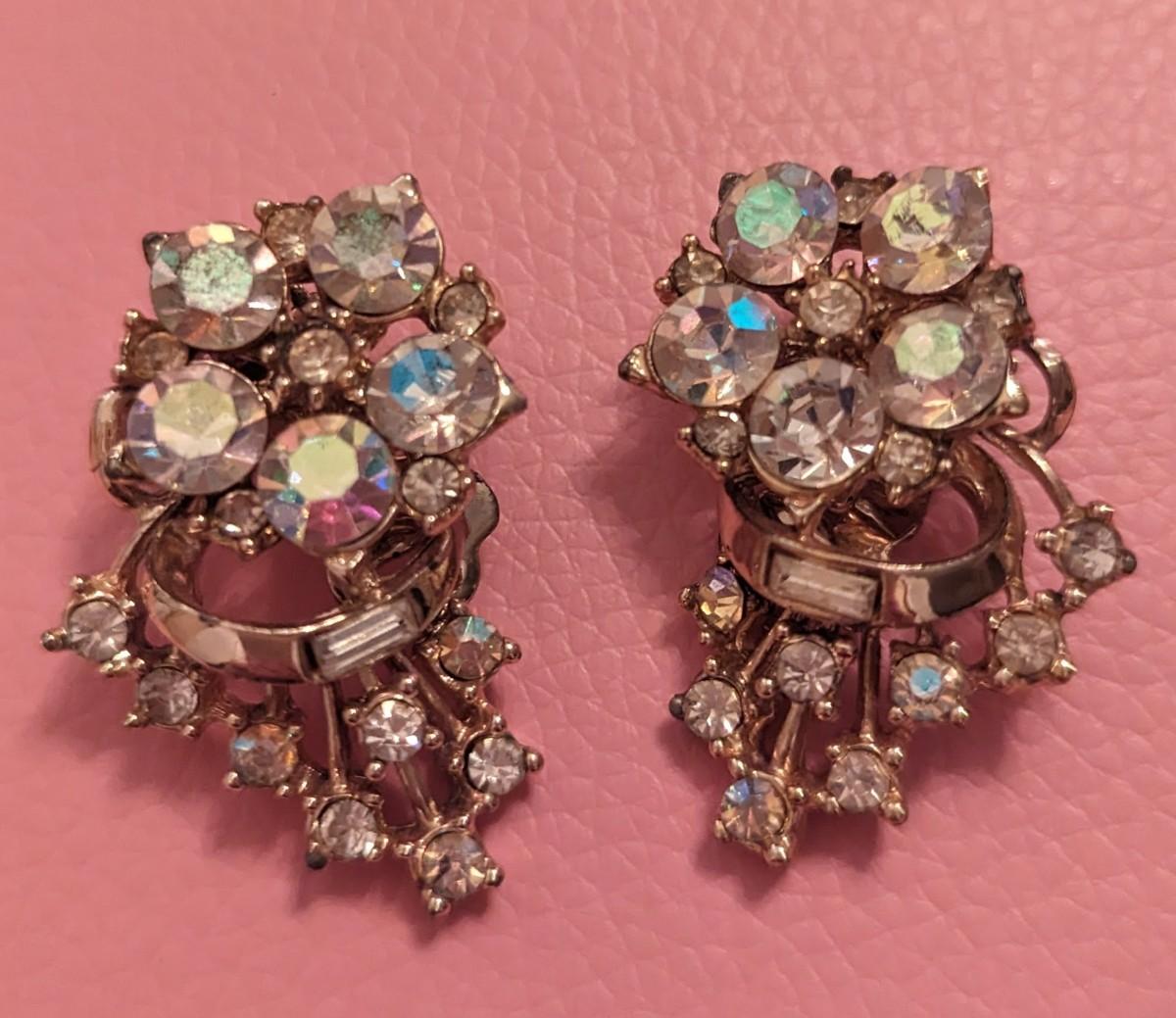 Pair of 1950-1960's MCM Rhinestone clip earrings Aurora Borealis stones Costume Jewelry