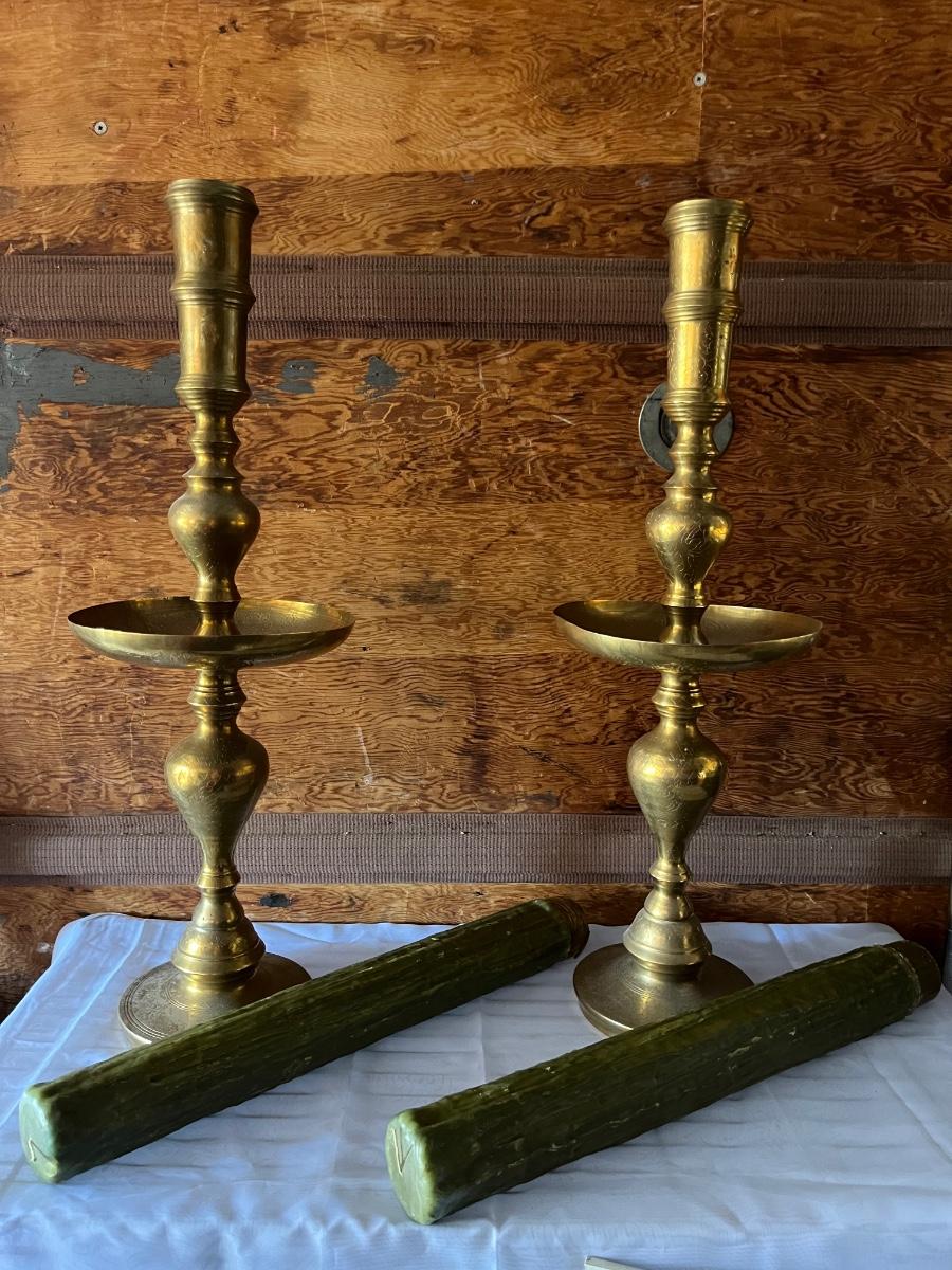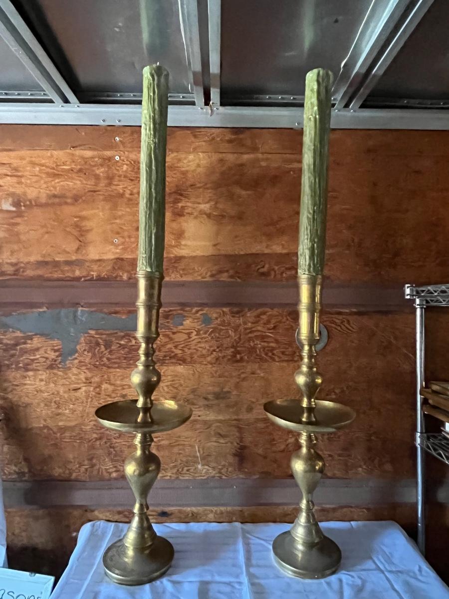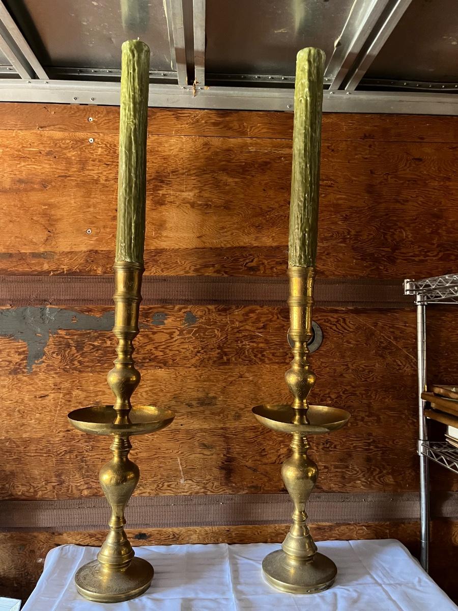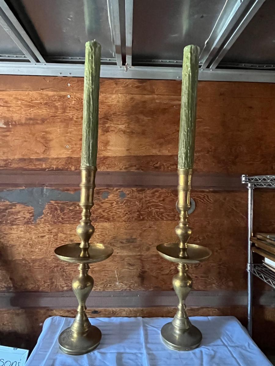 Pair of 2 29” Vintage Brass Altar Candlesticks with 22” candles