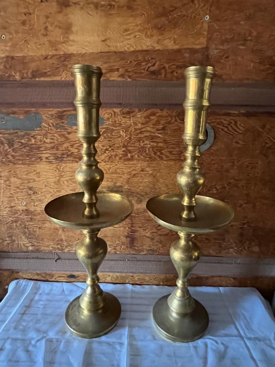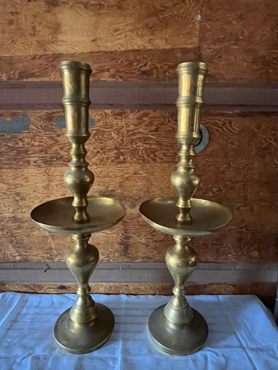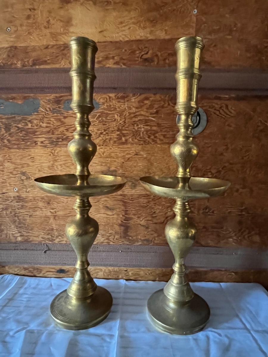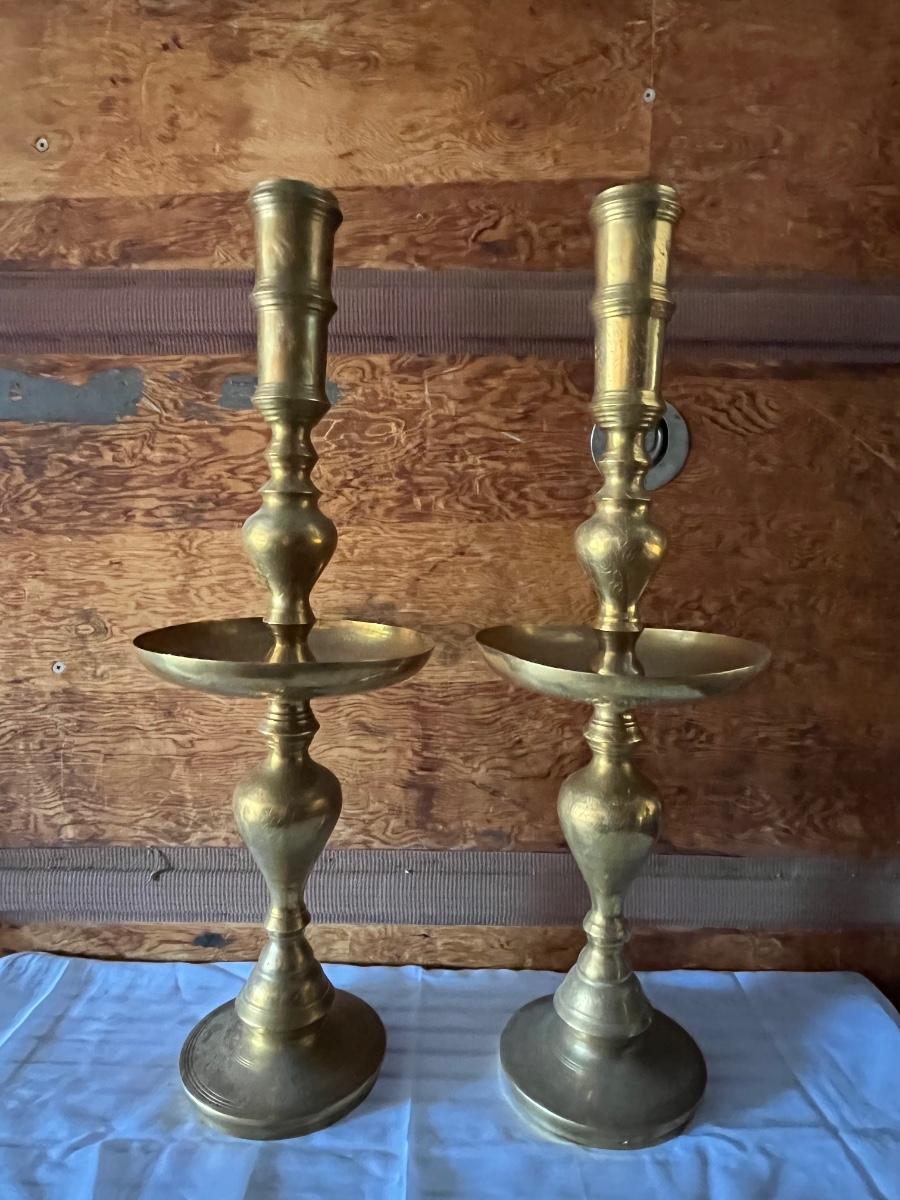 Pair of 2 29” Vintage Brass Altar Candlesticks with 22” candles