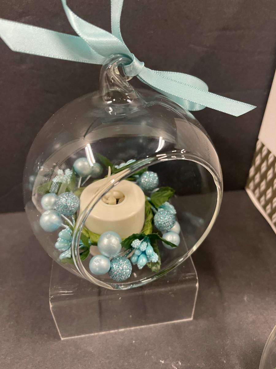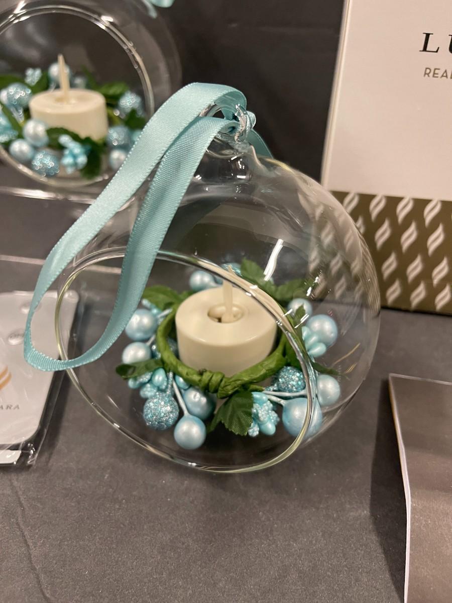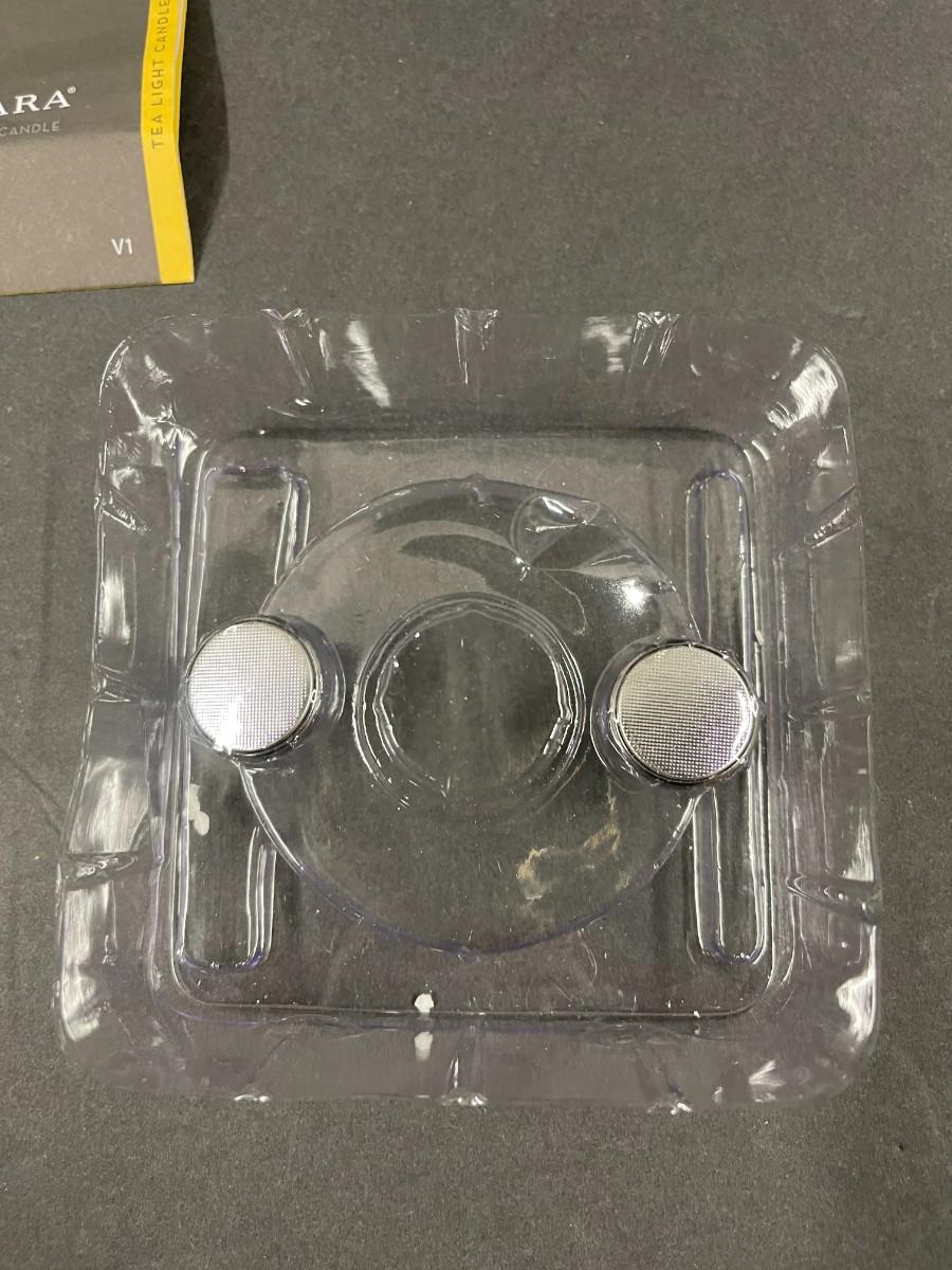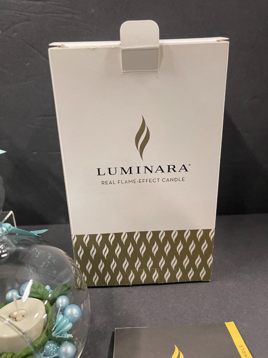 Luminara Gold Berry ornament candles with real flame effect. One is in original box with new batteries and remote. The other does not have new batteries. Remote control will operate both.