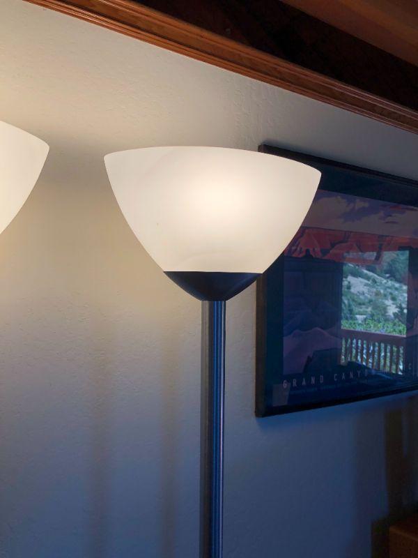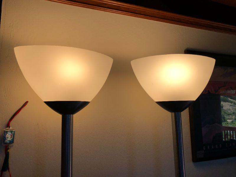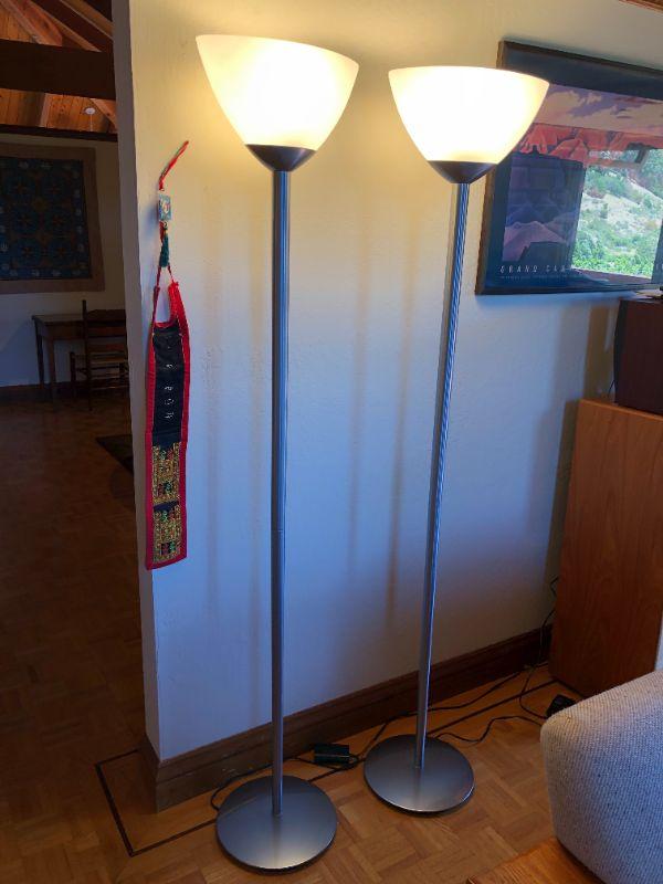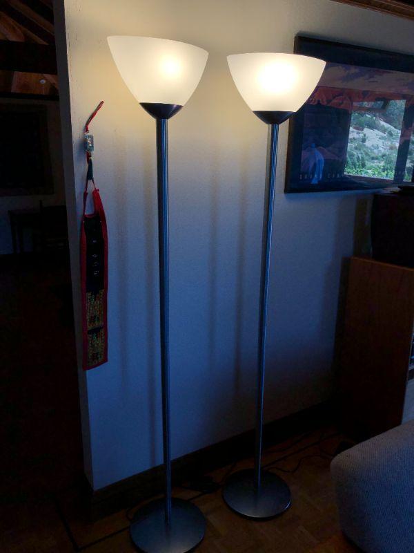 Pair of 2 Modern Silver Tone Floor Lamps with Foot Switch