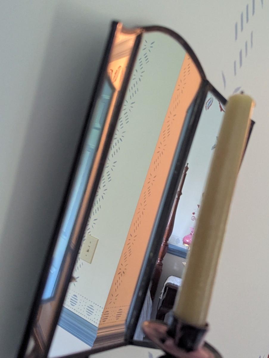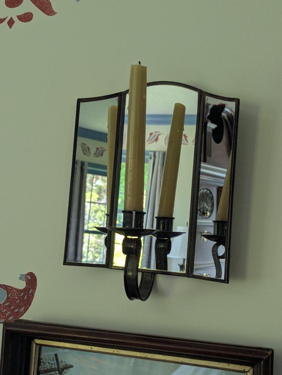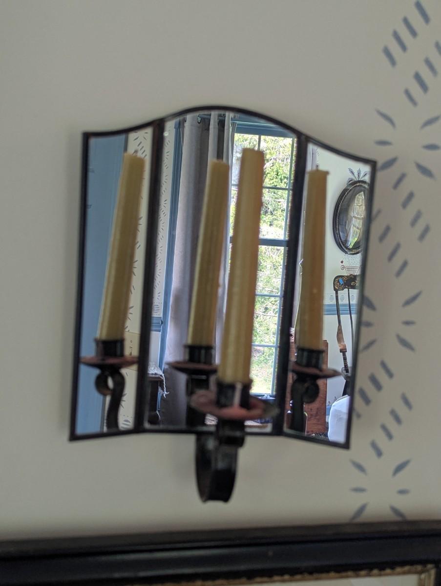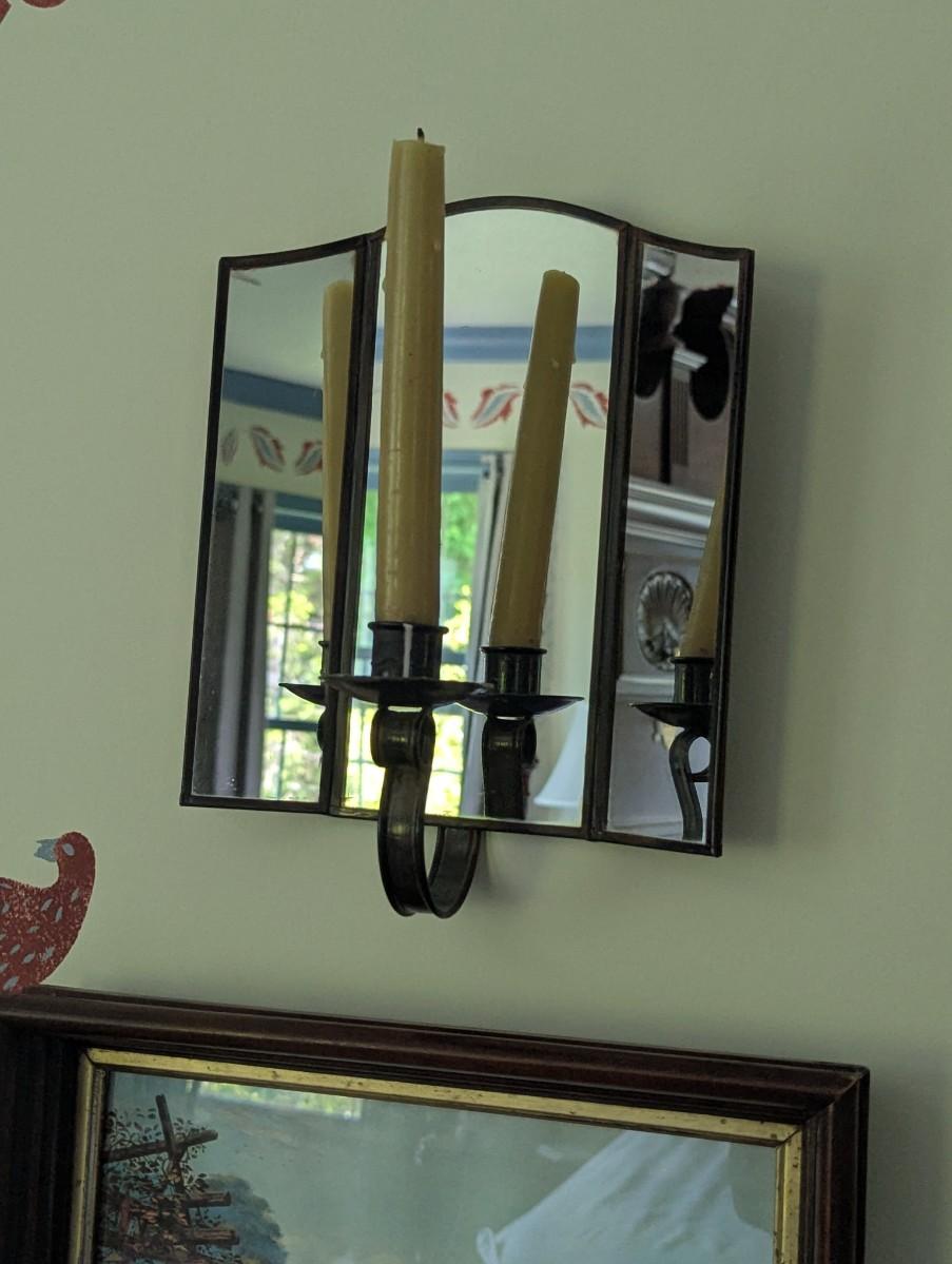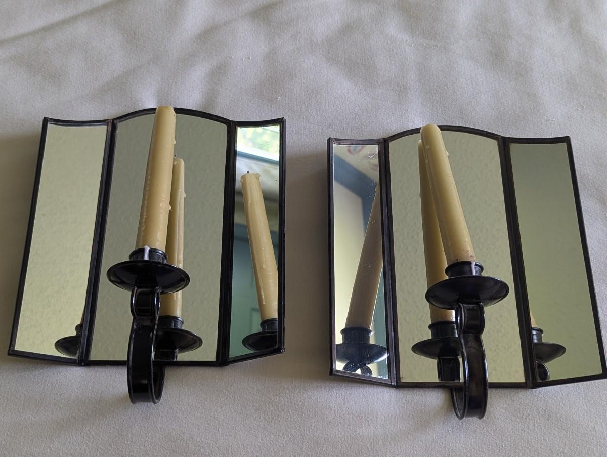 Pair Of Vintage Wall Sconces 3 Mirror Panels Candle Holder Reflector