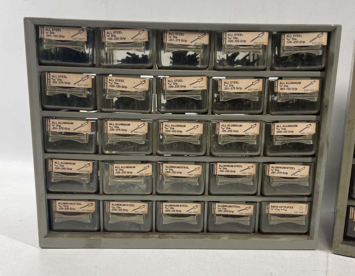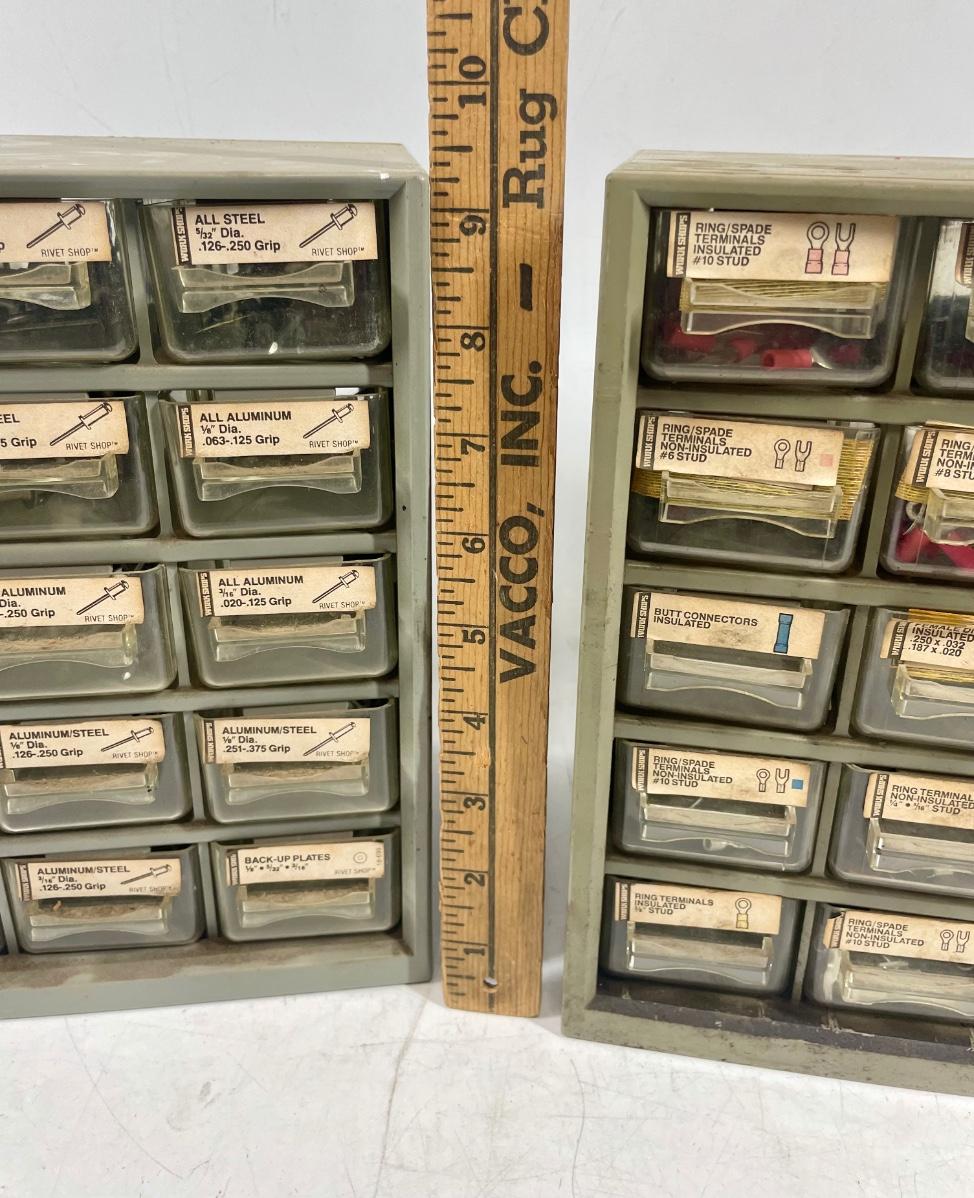 Each measures approx 9” x 12”. Both are full of hardware. See photos for examples of what’s included.
