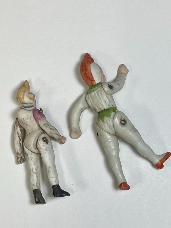 Pair of 3" Bisque Antique Jointed Dollhouse Clown Dolls YD#020-1220-00712