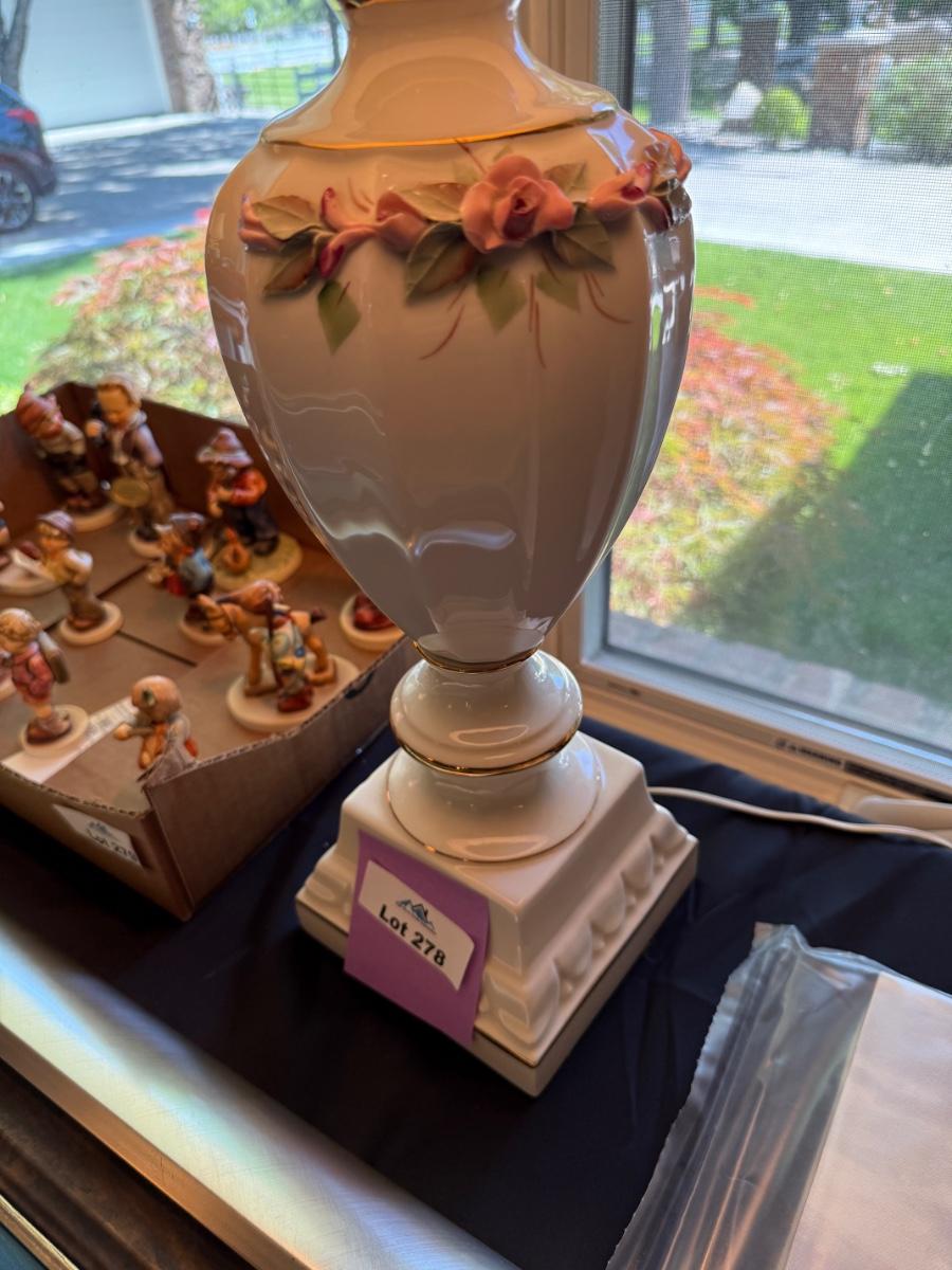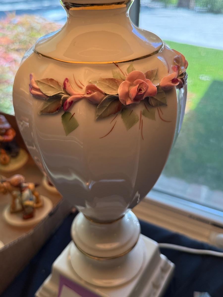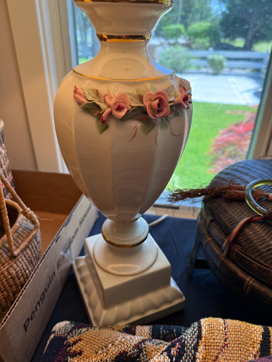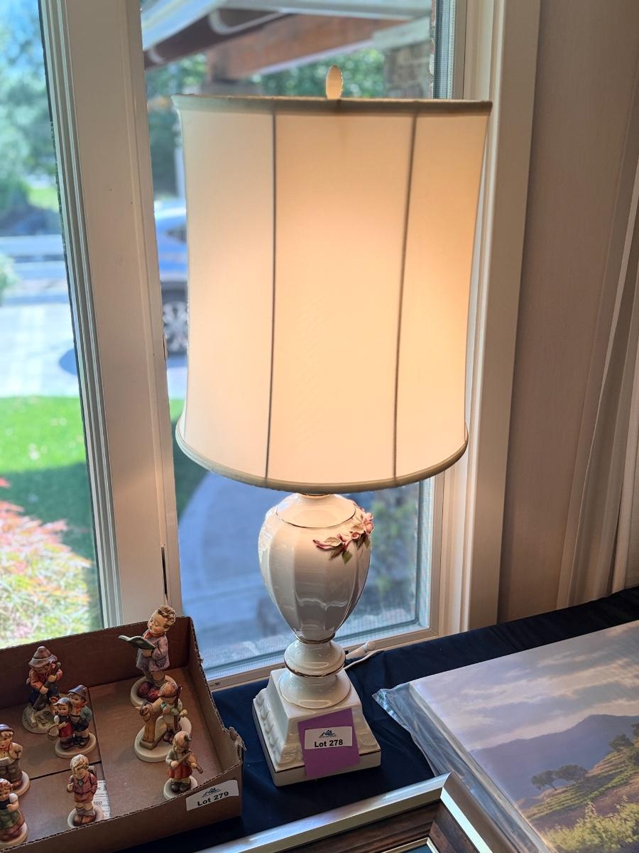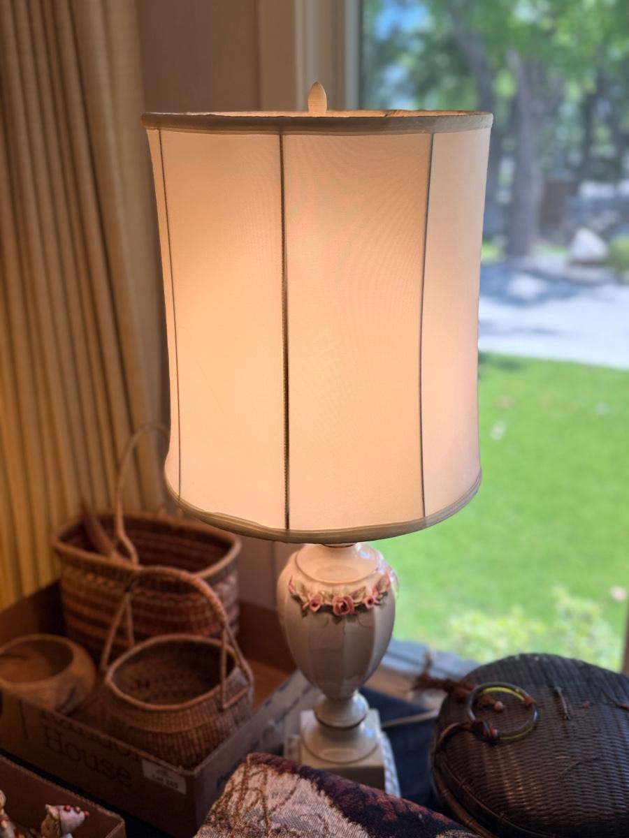2 working 34”t white & floral Table Lamps as shown