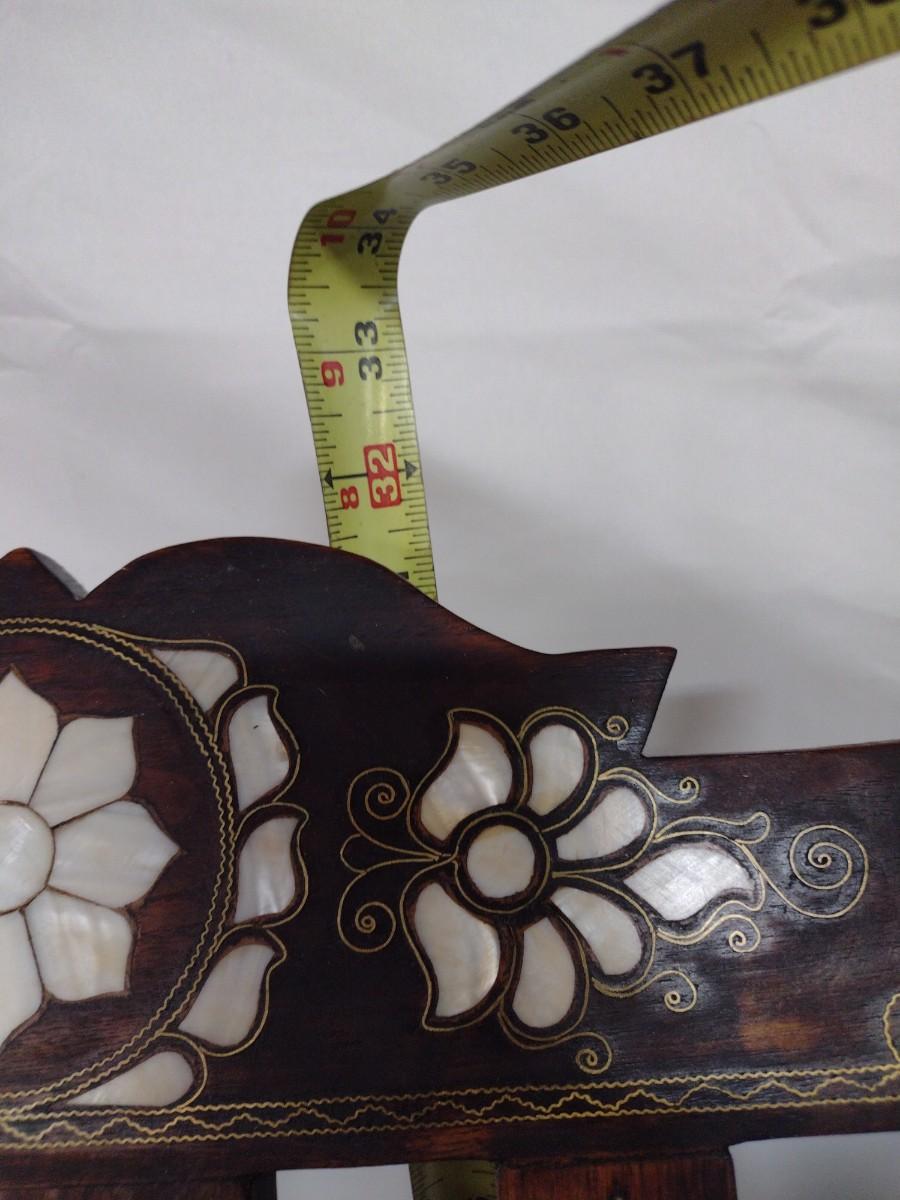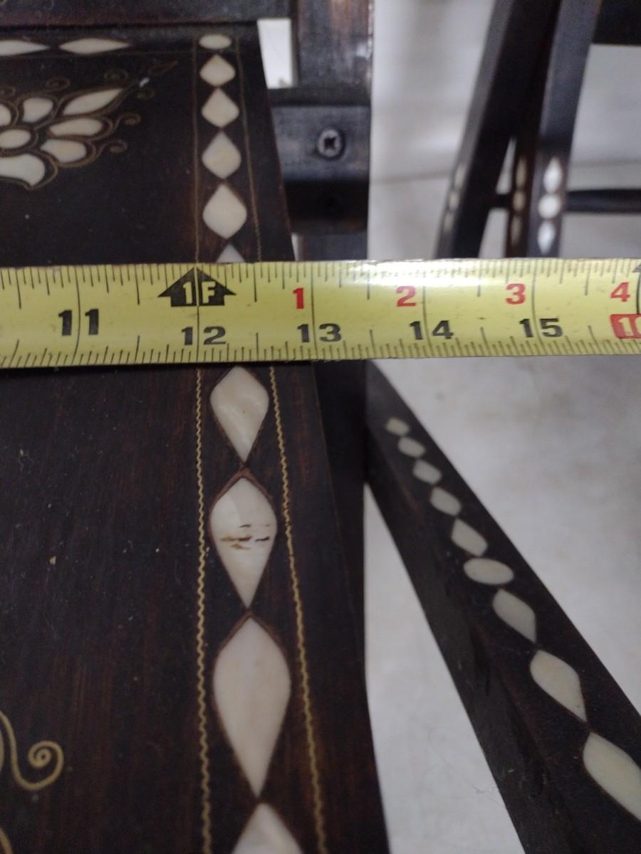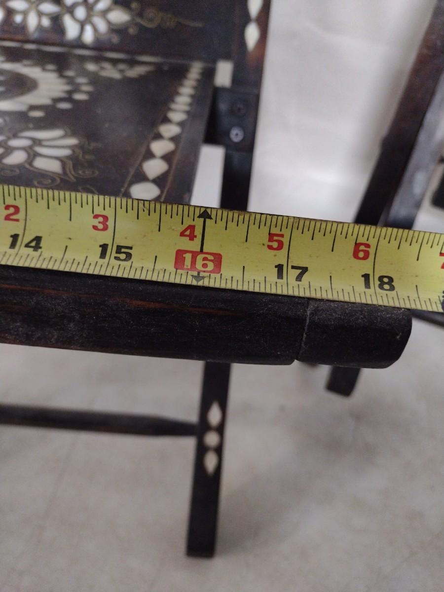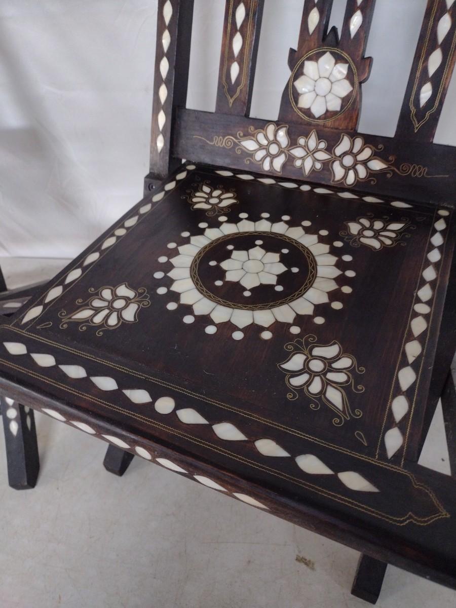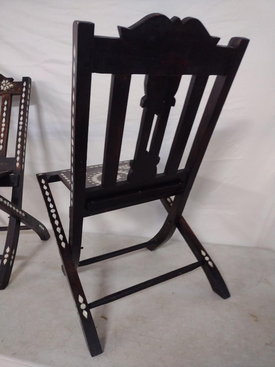 Pair of Egyptian Mahogany Finish Mother of Pearl Inlay Folding Chairs Lotus Flower Theme Design Accents
