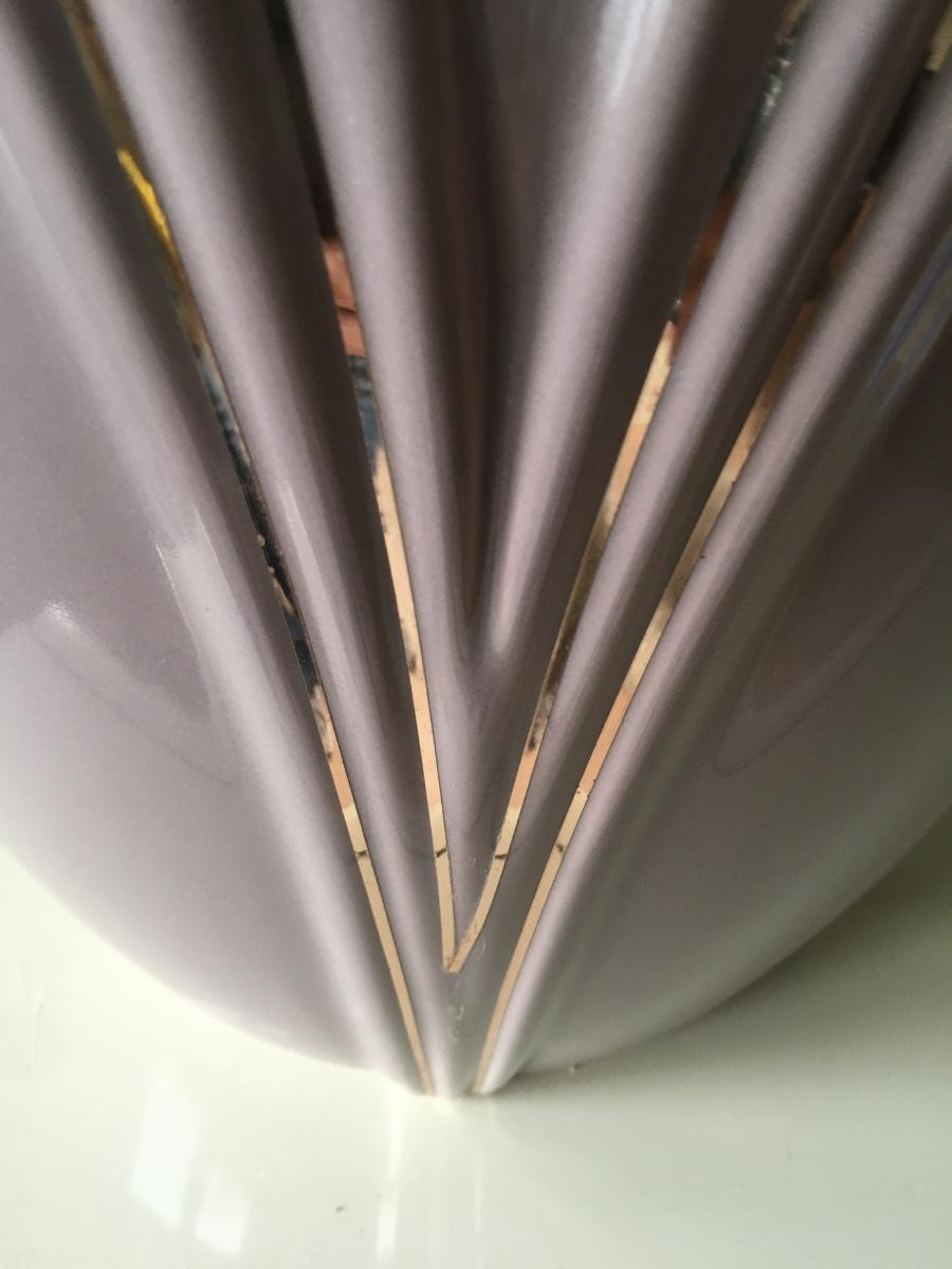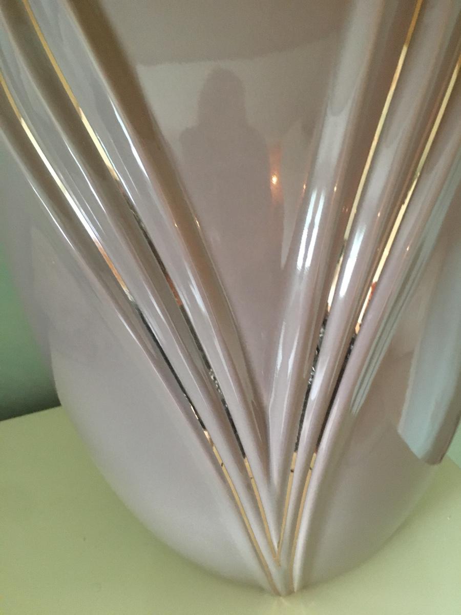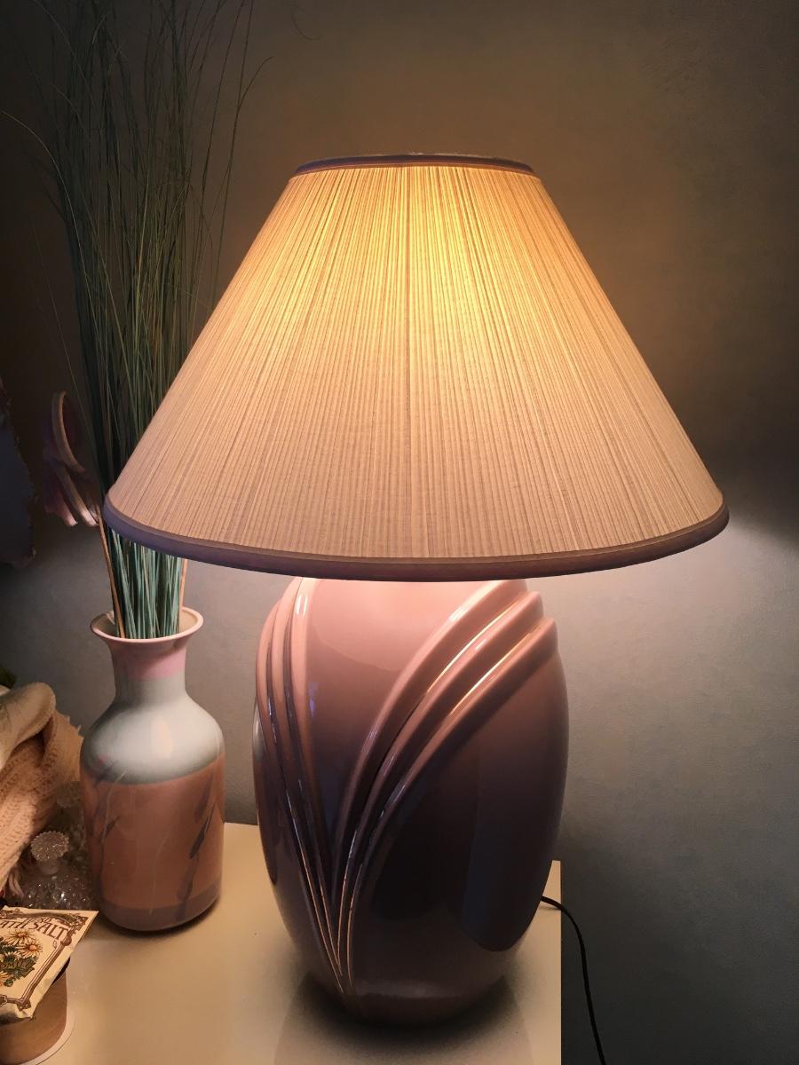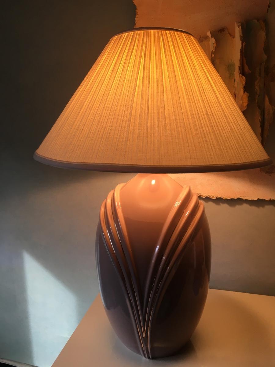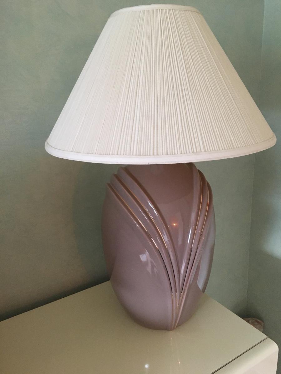 set of Harris ceramic lamps with brass accents. Lamps are in excellent condition.